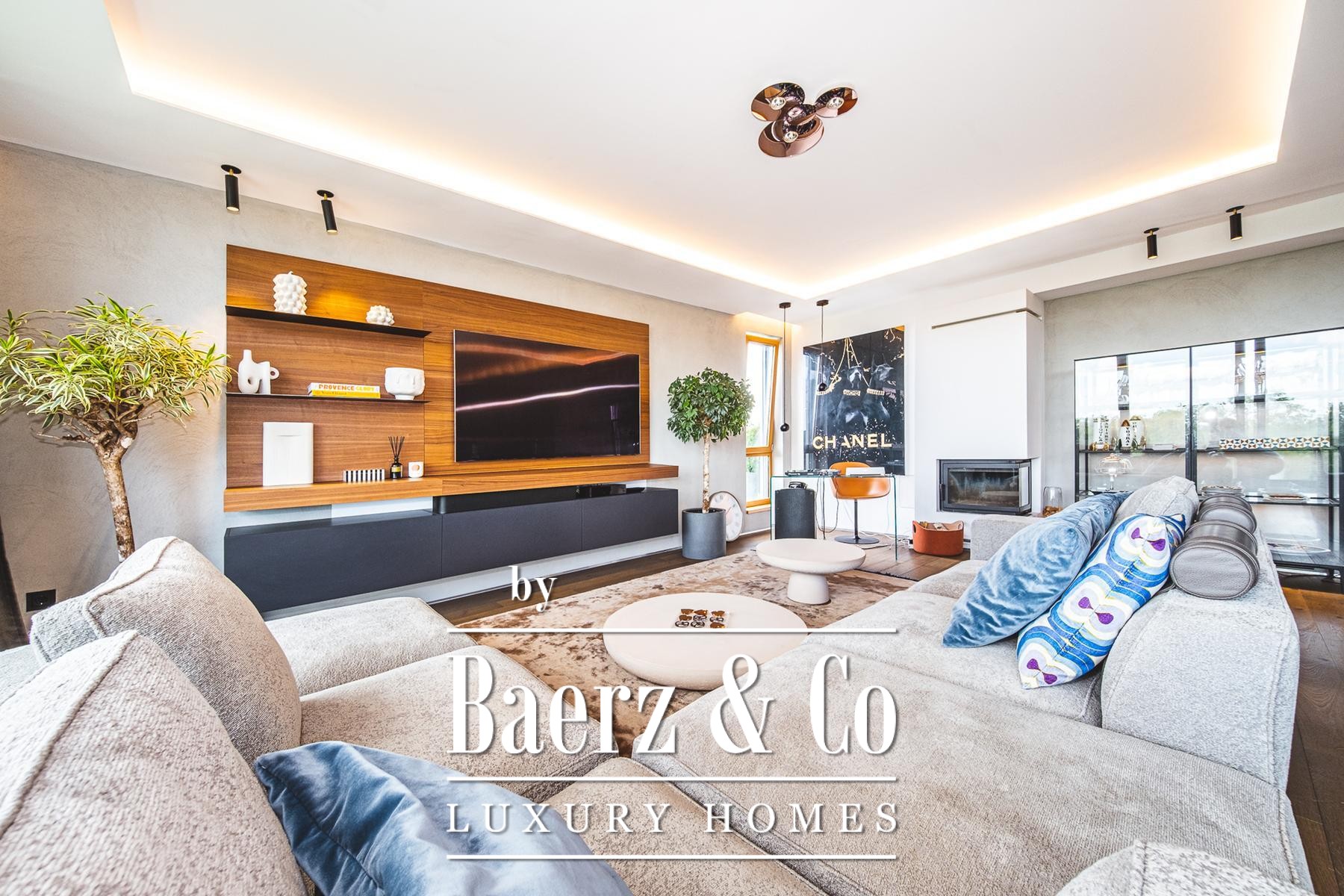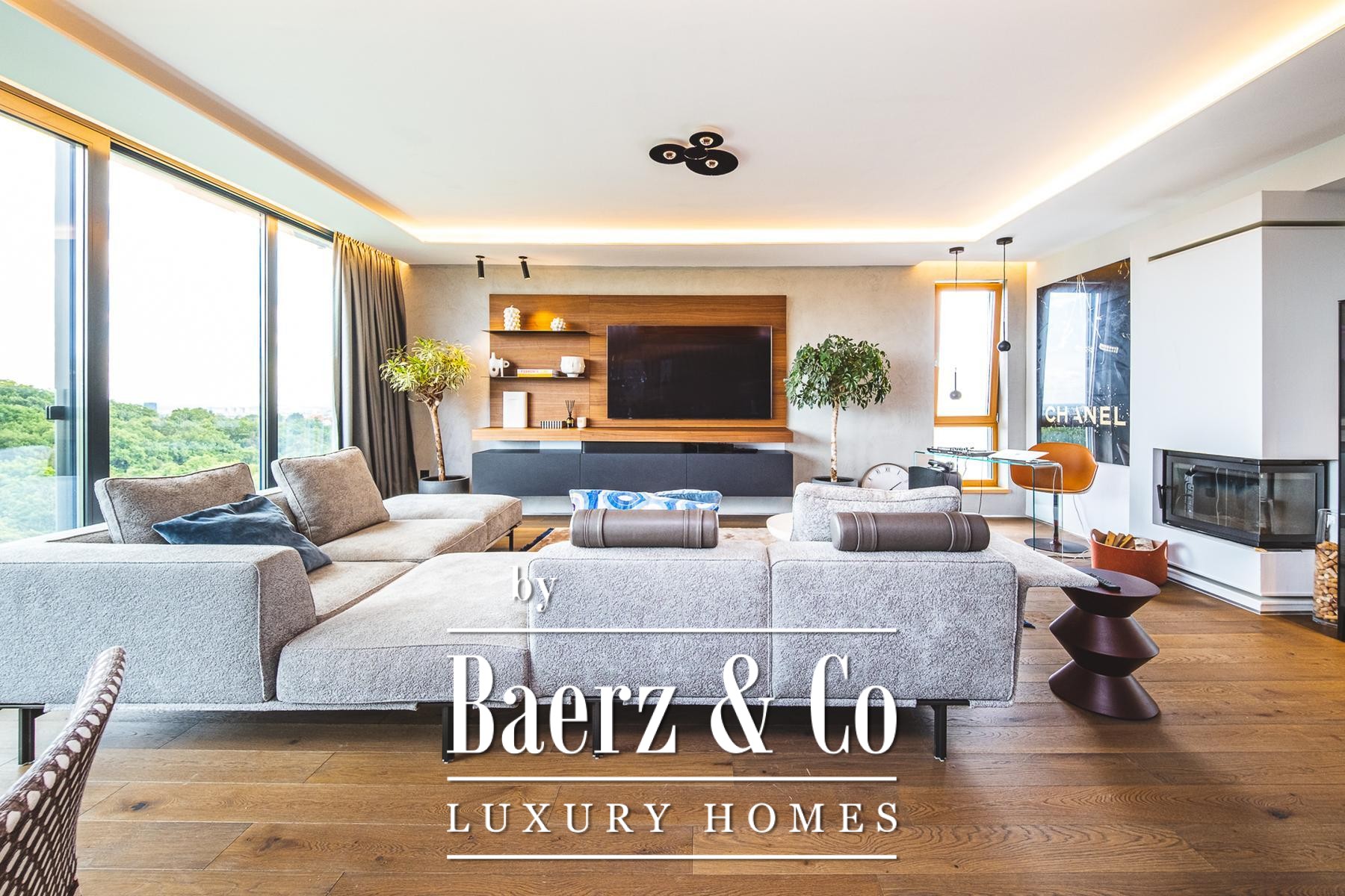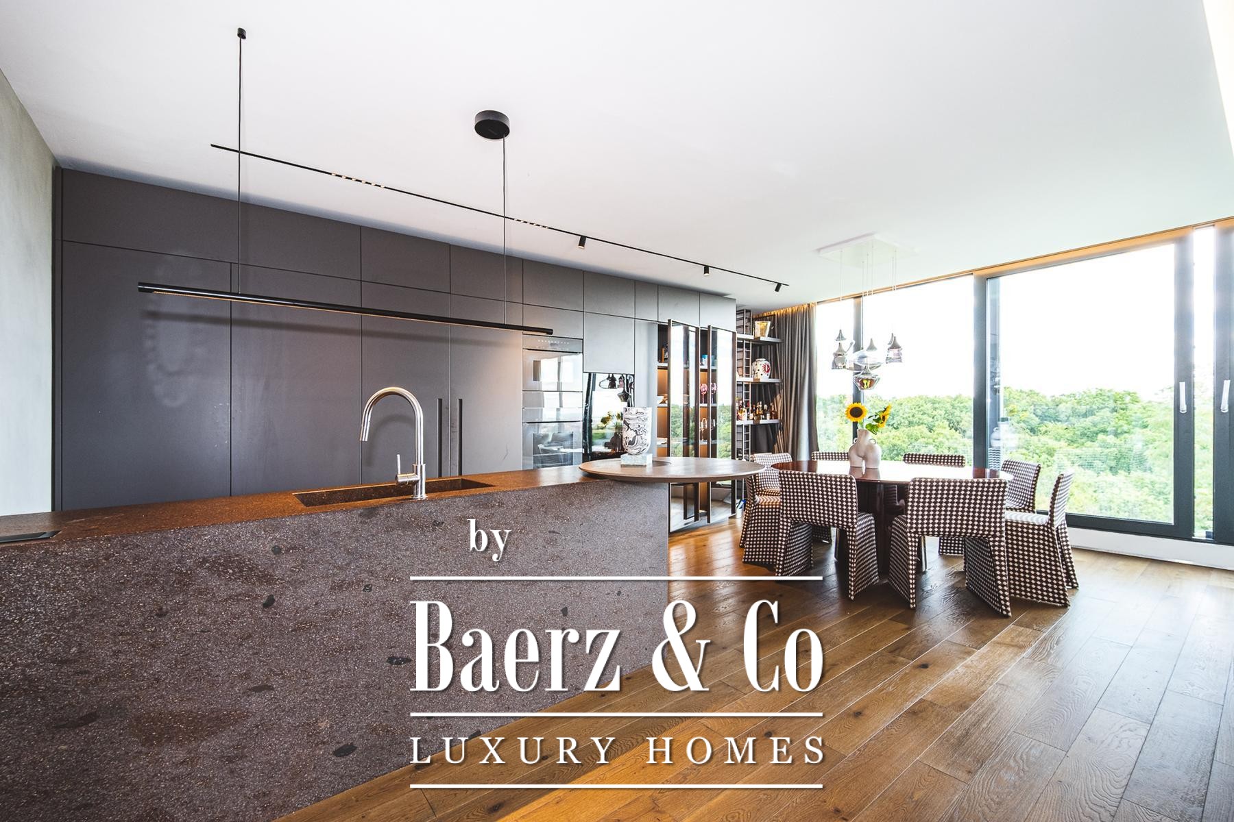 master bathroom, Molteni living room furniture, The Cut kitchen (Italy) with Miele appliances and a Liebherr wine refrigerator, designer chandeliers and a walk-in closet of Italian design, parquet and first-class ceramics from Italy.The special feature of the apartment is a luxurious terrace of 70 m2 equipped with top-quality Talenti garden furniture, a large dining table for 12 people, an outdoor kitchen, an electrically adjustable sail-shaped awning that covers the entire area, a jacuzzi for four people and a spectacular view that provides a complete atmosphere of privacy and enjoyment.Location: