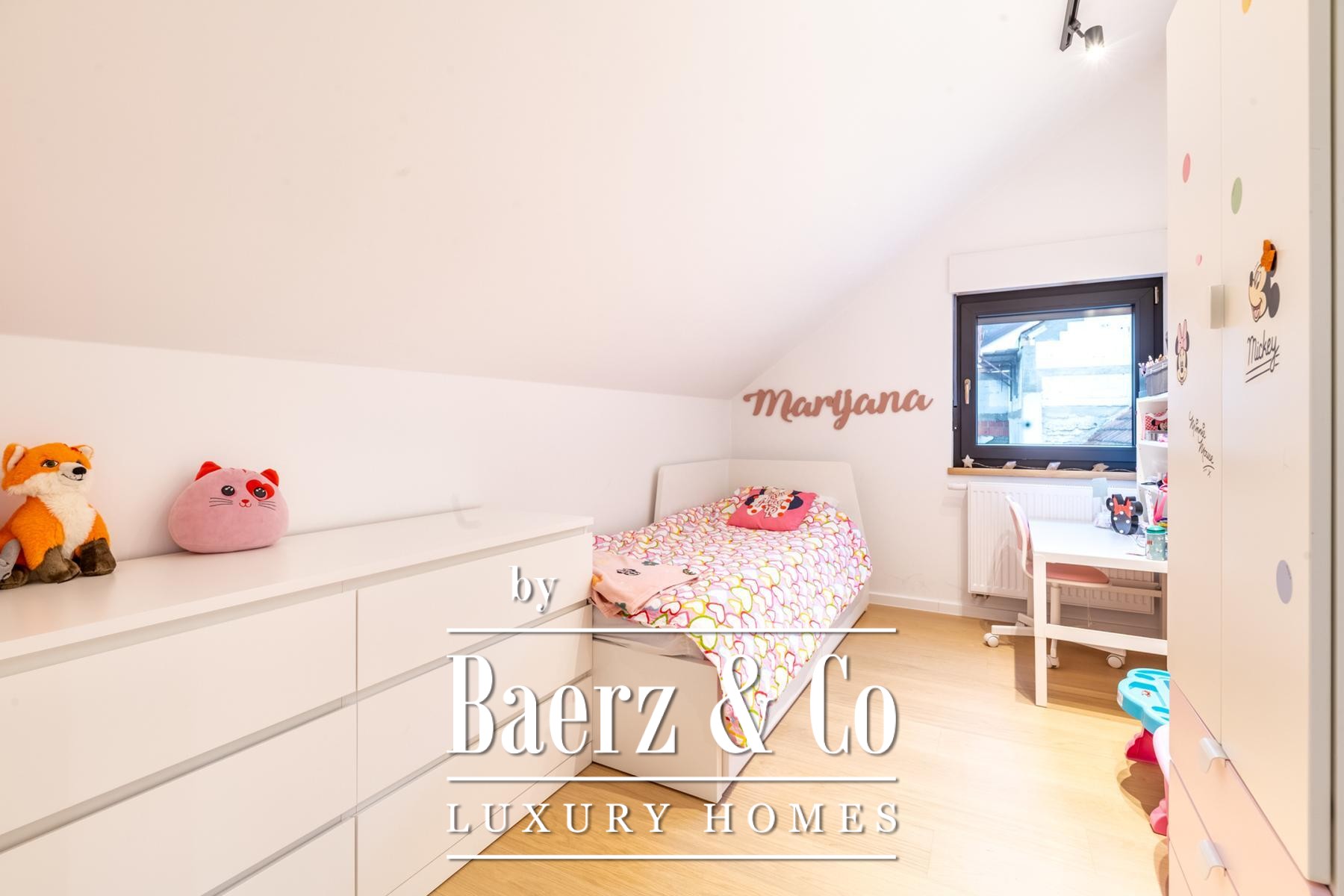Quality materials define every space: large-format Bjelin oak parquet, aluminum joinery with triple glazing, underfloor heating by Danfloss, and advanced security by Dierre and Hikvision. The house stands on a 385 m² plot, with a private yard and parking for four cars. Positioned just minutes from kindergartens, schools, parks, shops, and public transport, the property resonates with a quiet authority—offering urban comfort, contemporary engineering, and enduring design. For those seeking a luxury house for sale in Črnomerec, this address balances discretion and connectivity.