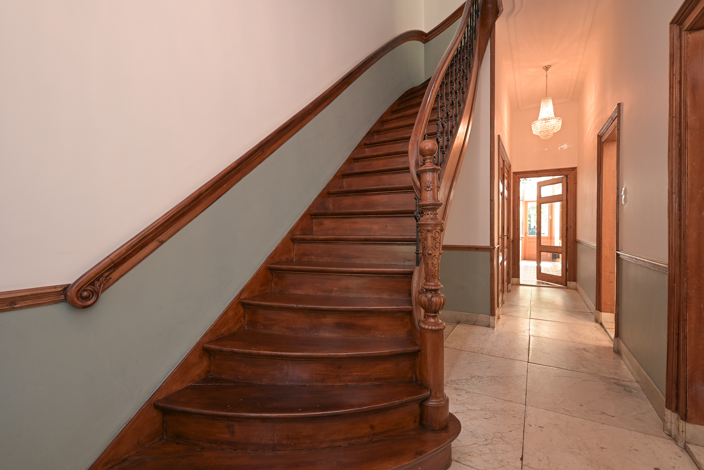 A beautiful staircase with under-stairs storage space ascends to the 1st floor (surface area ca. 90m2, ceiling height ca. 3.24 meters)