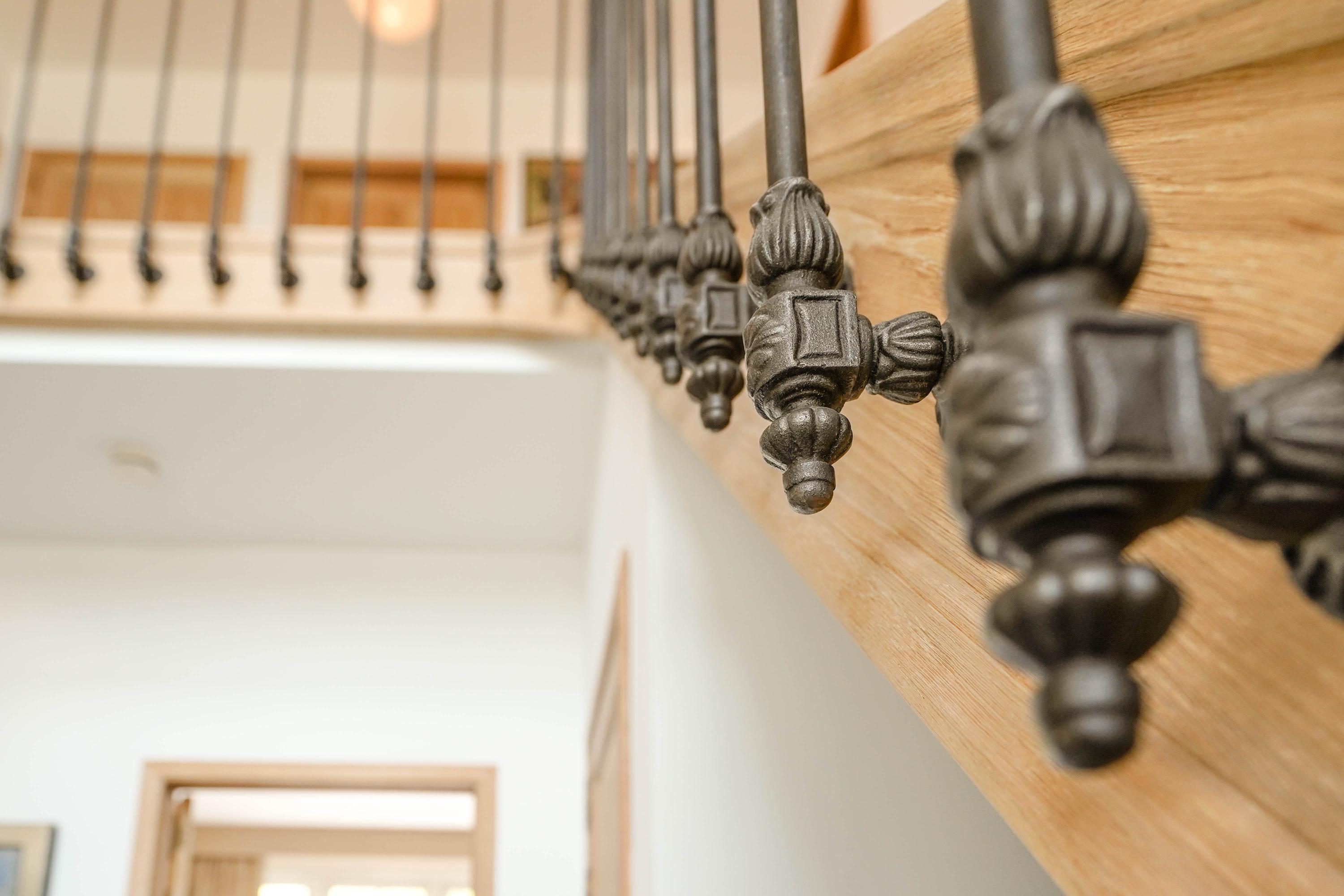 De entreehal maakt direct indruk met een fraai gesculptureerde, eiken trappartij. Vanaf de begane grond loopt een massief eiken leuning in één ononderbroken stuk door tot en met de bovenste etage, gedragen door 87 gepatineerde, gietijzeren zijbalusters. Een meesterwerk van de befaamde Belgische trappenmaker Luc Steels. Hij vervaardigde ook de eiken paneeldeuren en sponningen in het hele huis. In de hal bevinden zich het toilet en de meterkast. Het lichtvenster in het dak boven in de vide zorgt samen met de grote glaspui voor optimaal daglicht op alle etages.