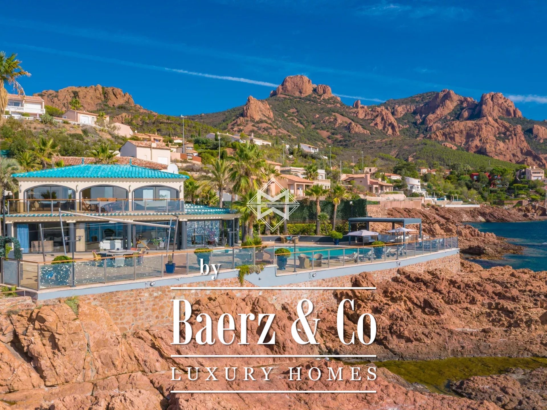 Waterfront villa Agay finds its singular expression along the Corniche d'Or, between Cannes and Saint-Raphaël, within an exclusive estate where privacy is intrinsic. This modern property, enveloped by the sculpted red rocks of Anthéor, is designed for those who value seclusion, direct access to the sea, and a lifestyle shaped by panoramic horizon lines.