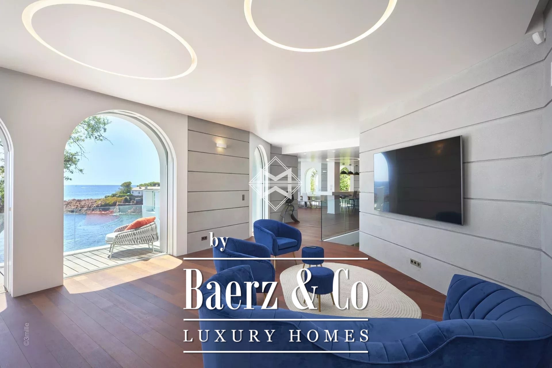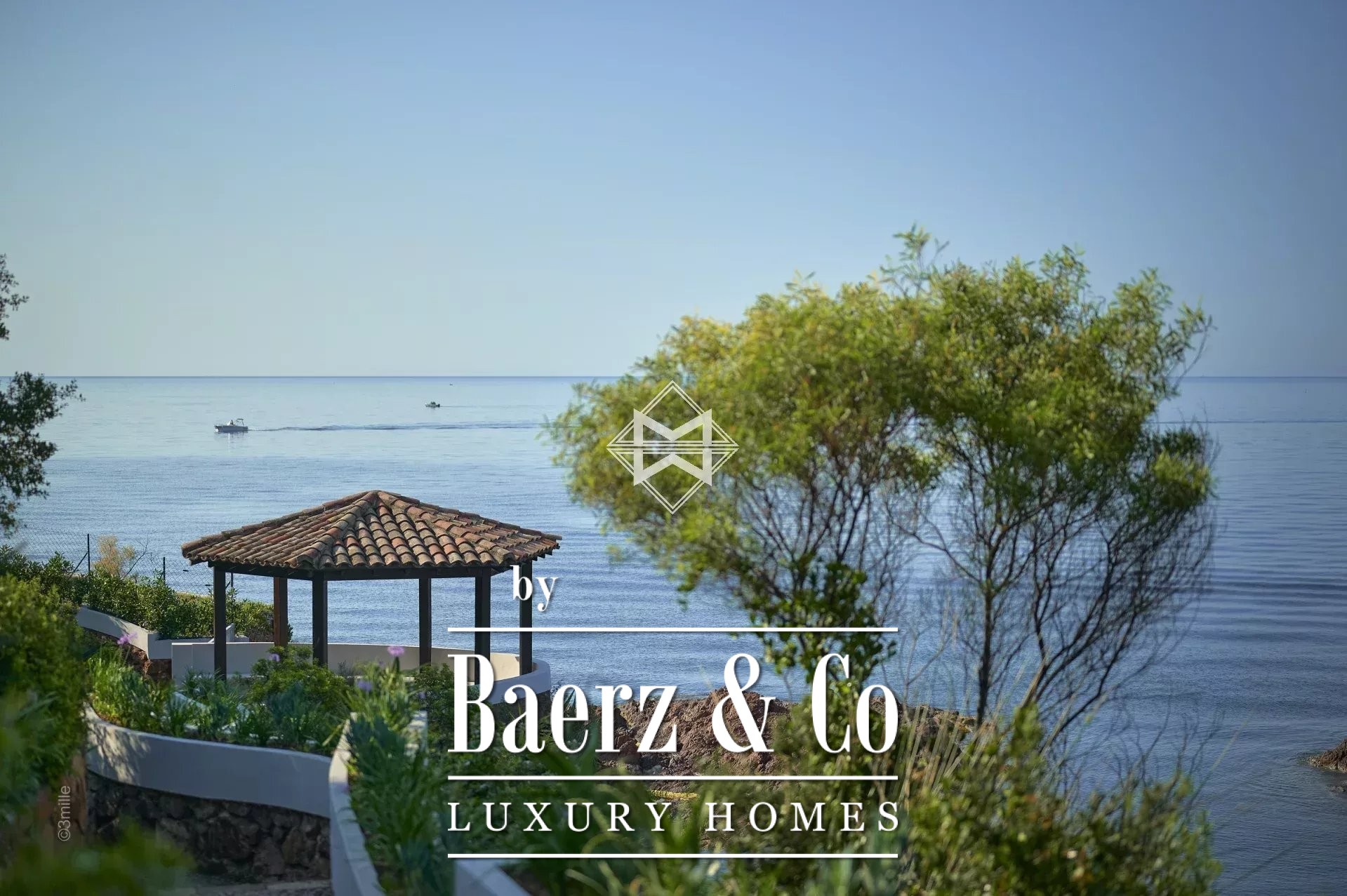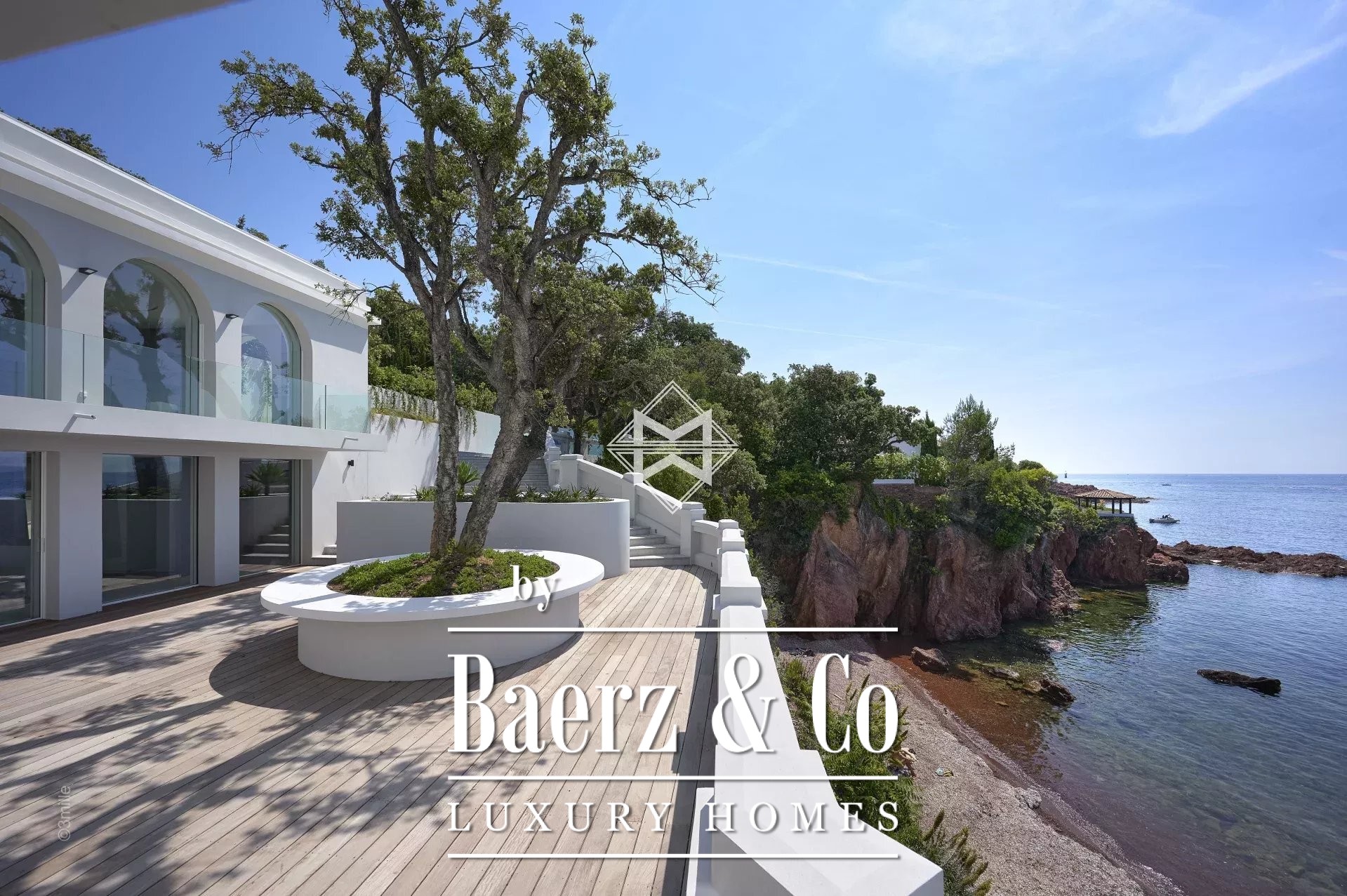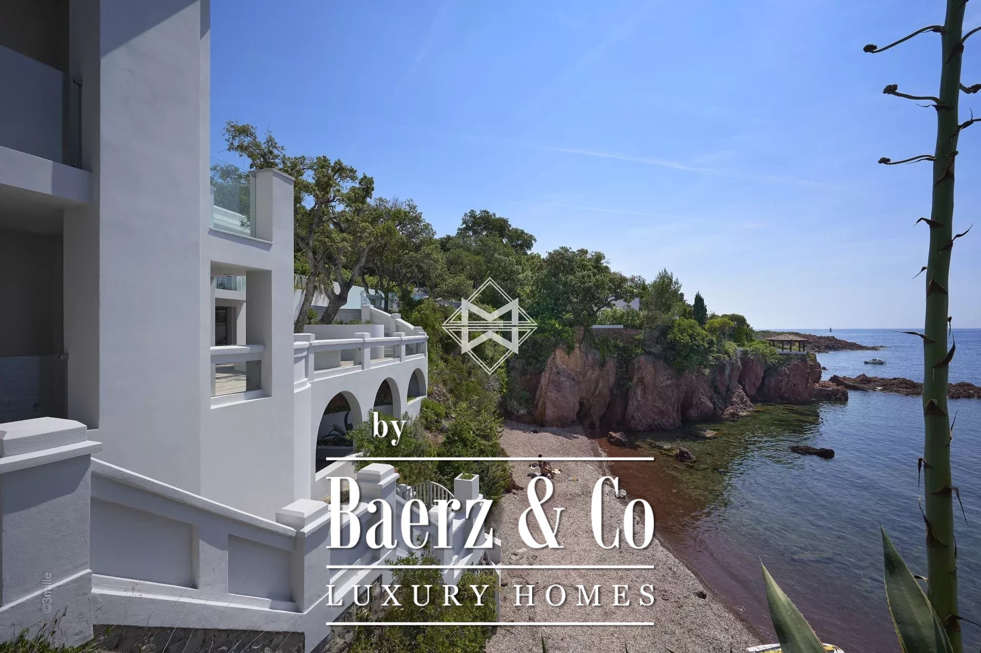Property Agay presents an exceptional waterfront setting where the Mediterranean unfolds in uninterrupted perspective, the red rock cliffs of the Esterel frame every view, and private direct access places the beach at your feet. This estate, fully restored with deliberate respect for its provenance, encompasses a main villa of approximately 300 m², offering three suites, complemented by a separate 100 m² guest house with two additional bedrooms. A caretaker’s house remains to be tailored to your needs.