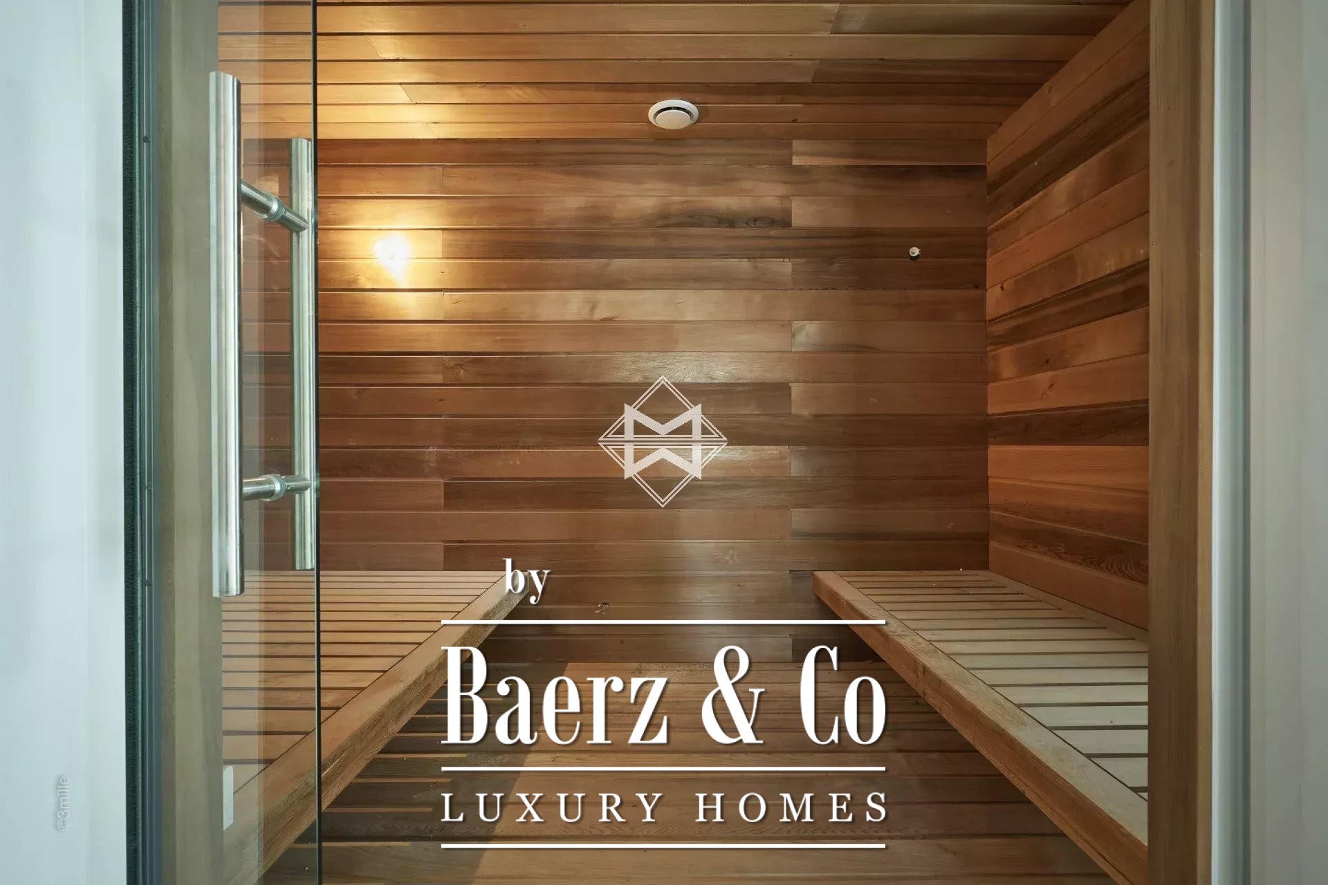 South-facing light animates every room, while mature landscaping shapes a sense of privacy across the 2,820 m² grounds. The swimming pool sits in communion with the coastline and comes paired with a spa, sauna and solarium for restrained indulgence. Comfort is assured with air conditioning throughout, a double garage and secure alarm system.