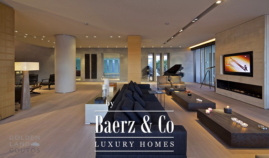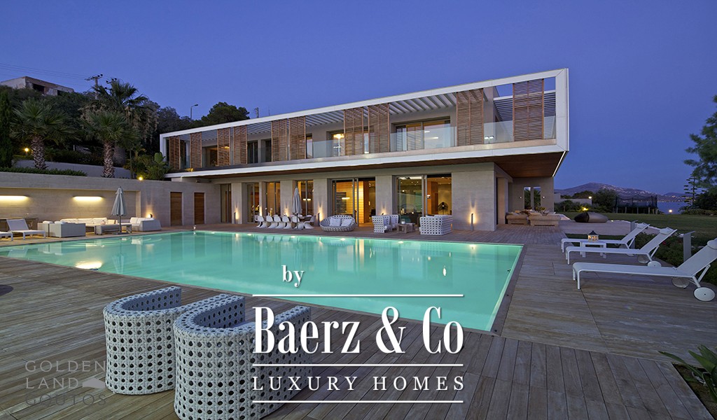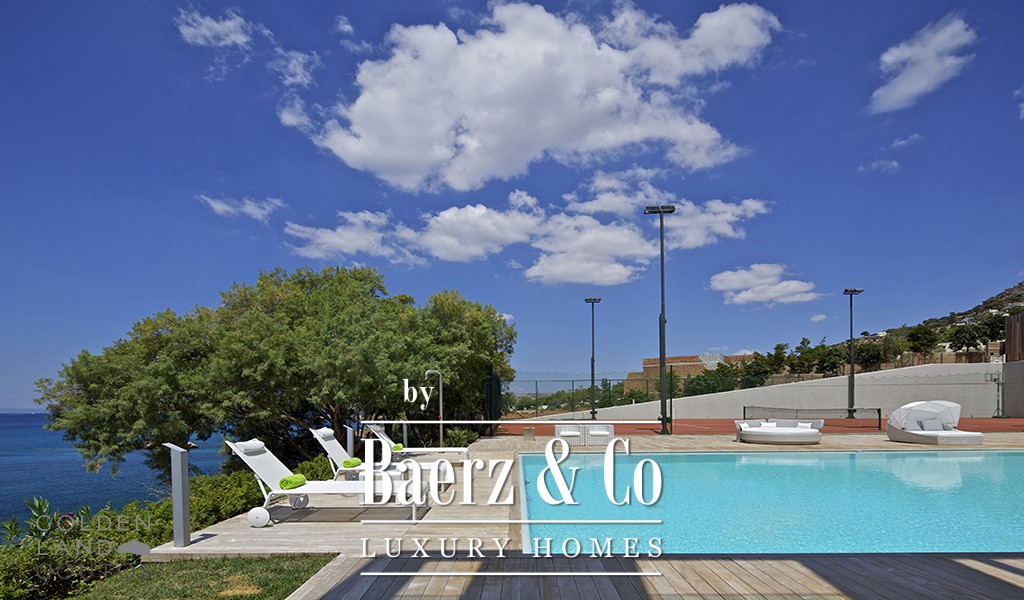 From the expressive and modern form of the building to the luxuriously appointed interiors, this stunning mansion represents a significant shift in the quality and experience of the apartment living. This magnificent 2 level villa of 800 sqm on the ground – 1st floor is set on the beach in a very posh area in Agia Marina lying in a land plot of 5.000 sqm offering a high quality living experience. On the ground floor there is a large and fully equipped kitchen, a dining room and an airy, spacious living room with a fireplace and high ceilings enjoying stunning sea view and direct access to the indoor and outdoor swimming pool. The second level consists of 4 luxurious en-suite bedrooms with views to the Saronic Gulf and 4 bathrooms. This property is the ideal home opportunity cause it combines living in an area surrounded by trees and full of nature with the sea element. This is your chance!