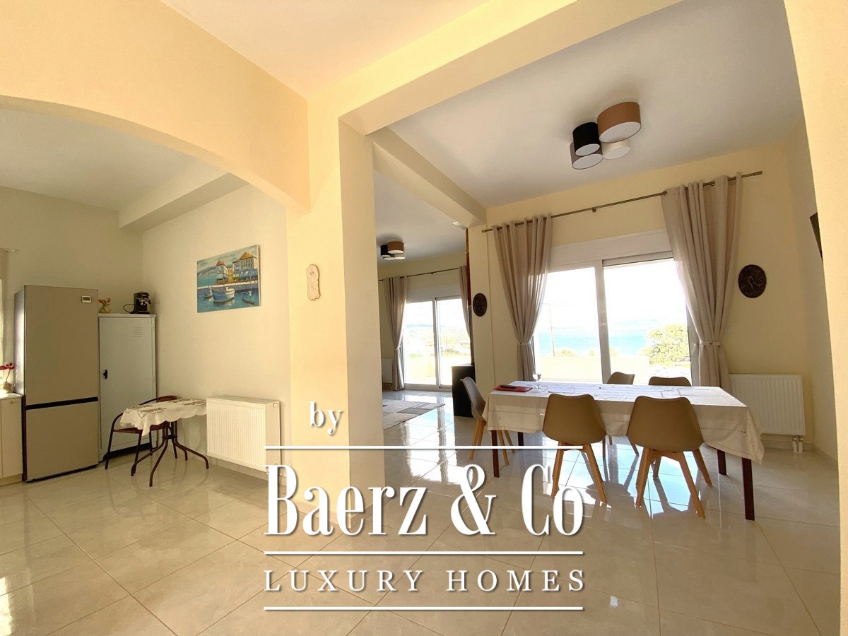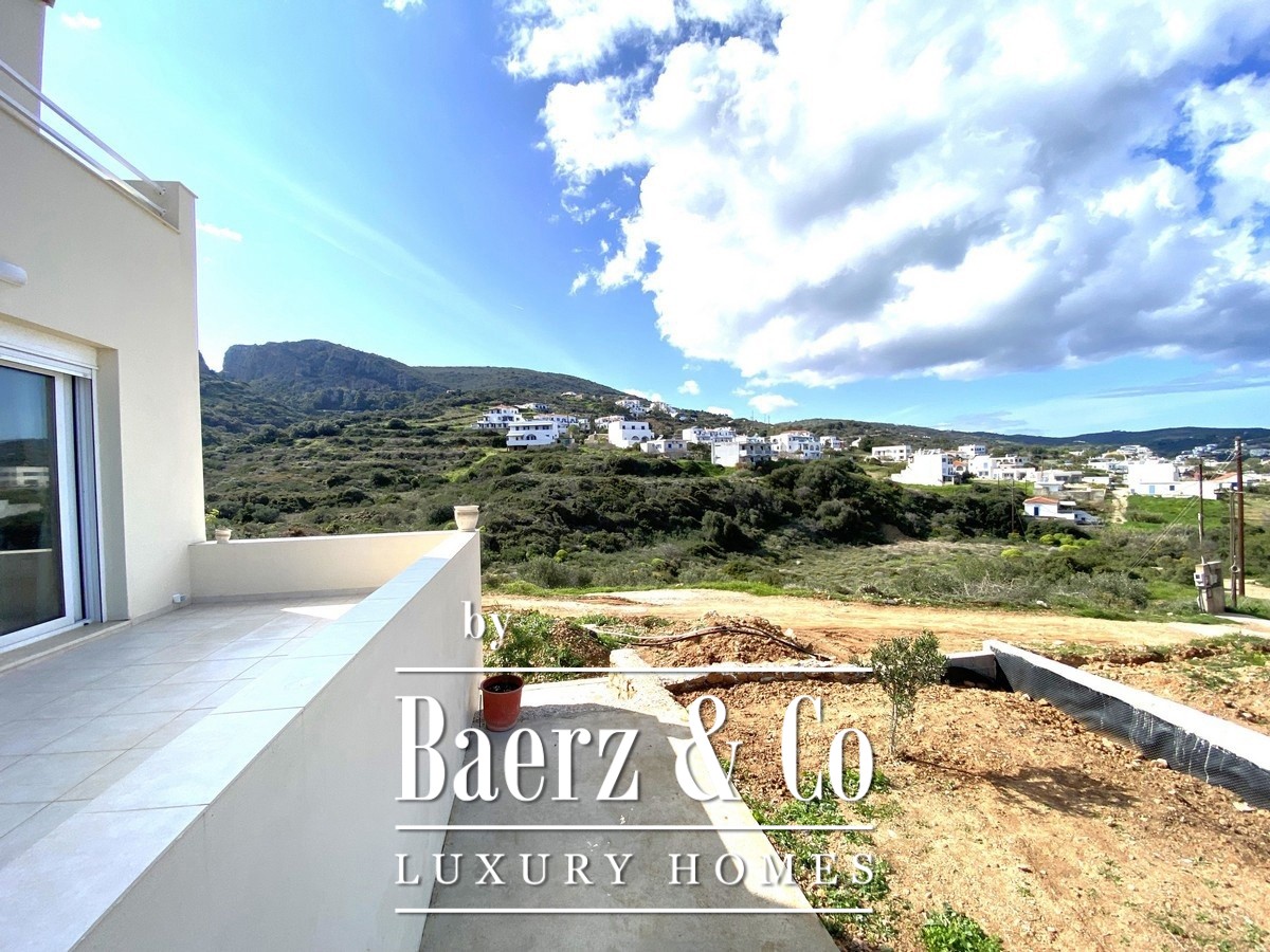 For sale: Newly built, amphitheatrical 275 sq.m. detached house in Agia Pelagia, Kythera, in a unique location just 200 meters from the sea, offering panoramic views of the Aegean and the picturesque village. The residence is spread over two levels and offers spacious and bright interiors. On the first level (ground floor), there is an open-plan living and dining area, a modern kitchen, and a bathroom, while the second level (first floor) features four spacious bedrooms and two bathrooms. Additionally, the ground floor includes an independent 20 sq.m. guest house, ideal for visitors or use as an office. The property is surrounded