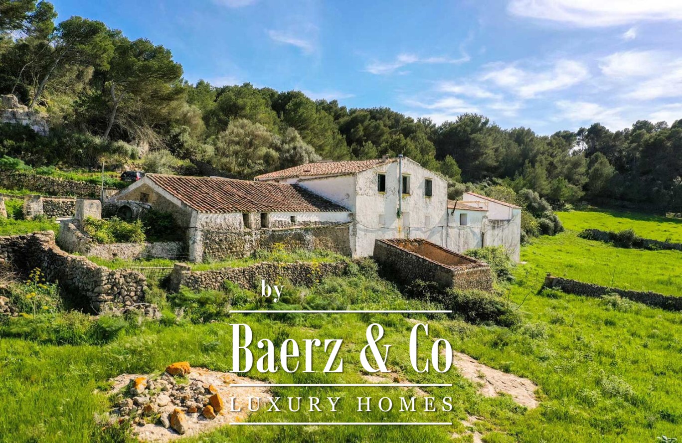 Beautiful rural estate located 15 minutes from the port of Mahón. Situated in a wonderful and very private setting. It has a total area of approximately 12 hectares divided into two parts, each measuring around 6.5 hectares. The built surface area