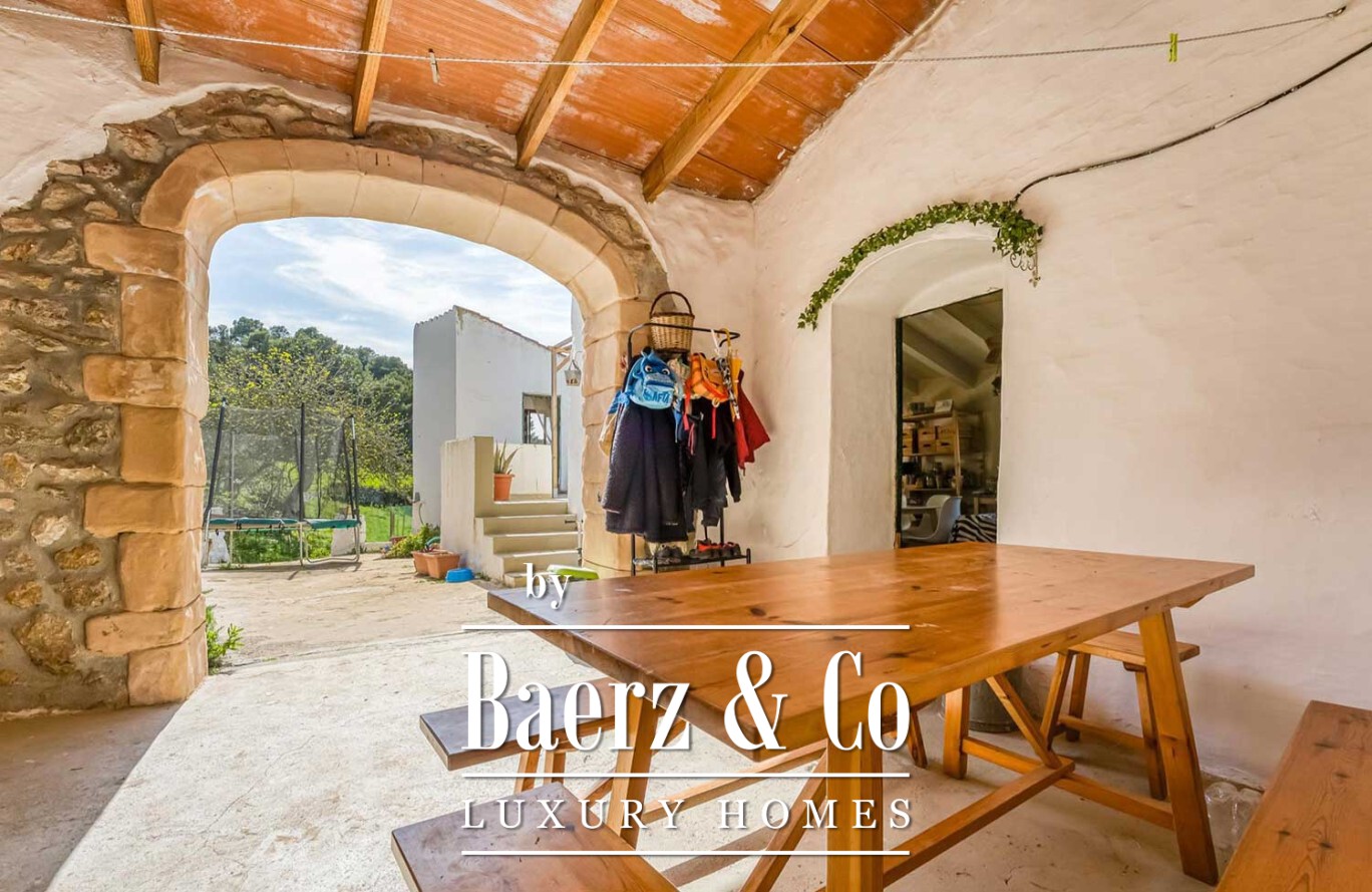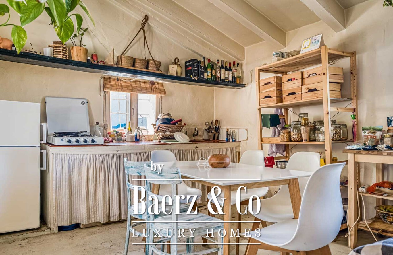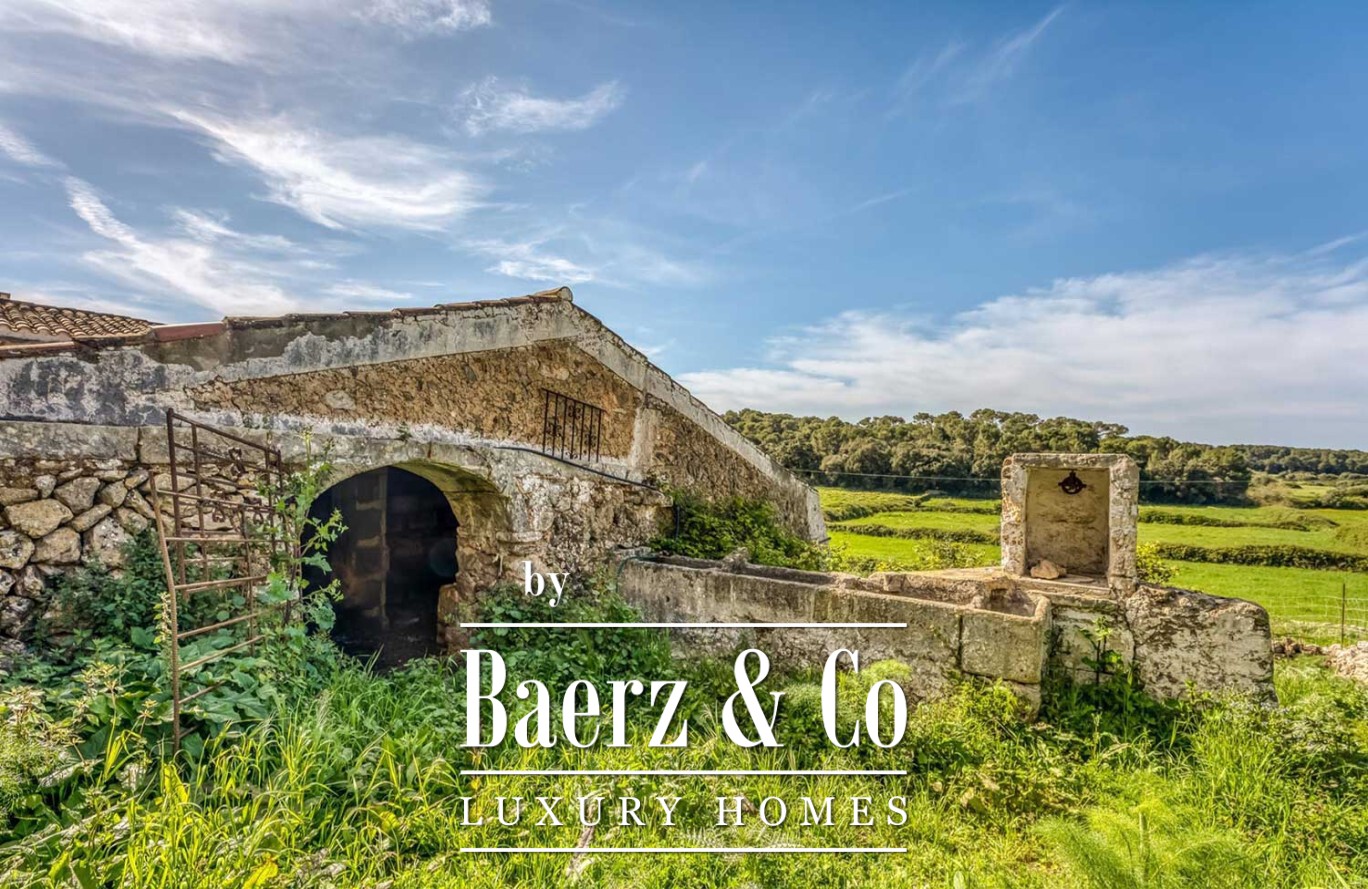 of the property, including the house and various storage spaces, is approximately 500 square meters. The property's surroundings are very peaceful and offer a rural Menorcan landscape, and it has its own well with abundant water for cultivation.