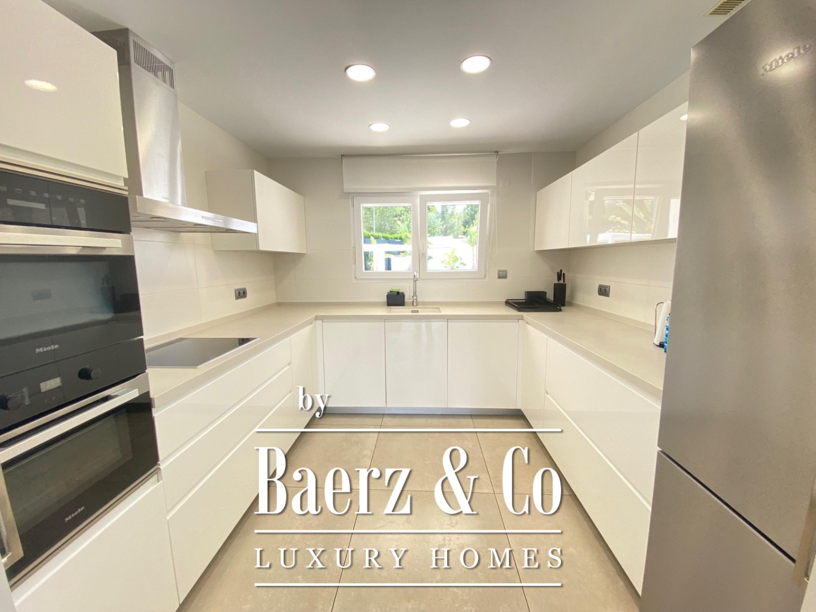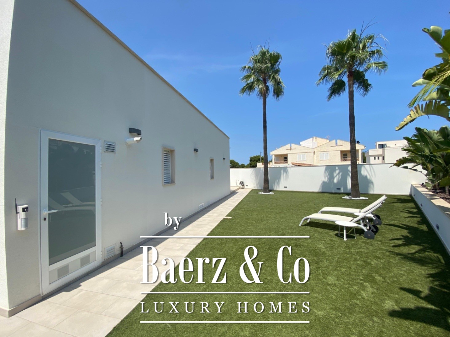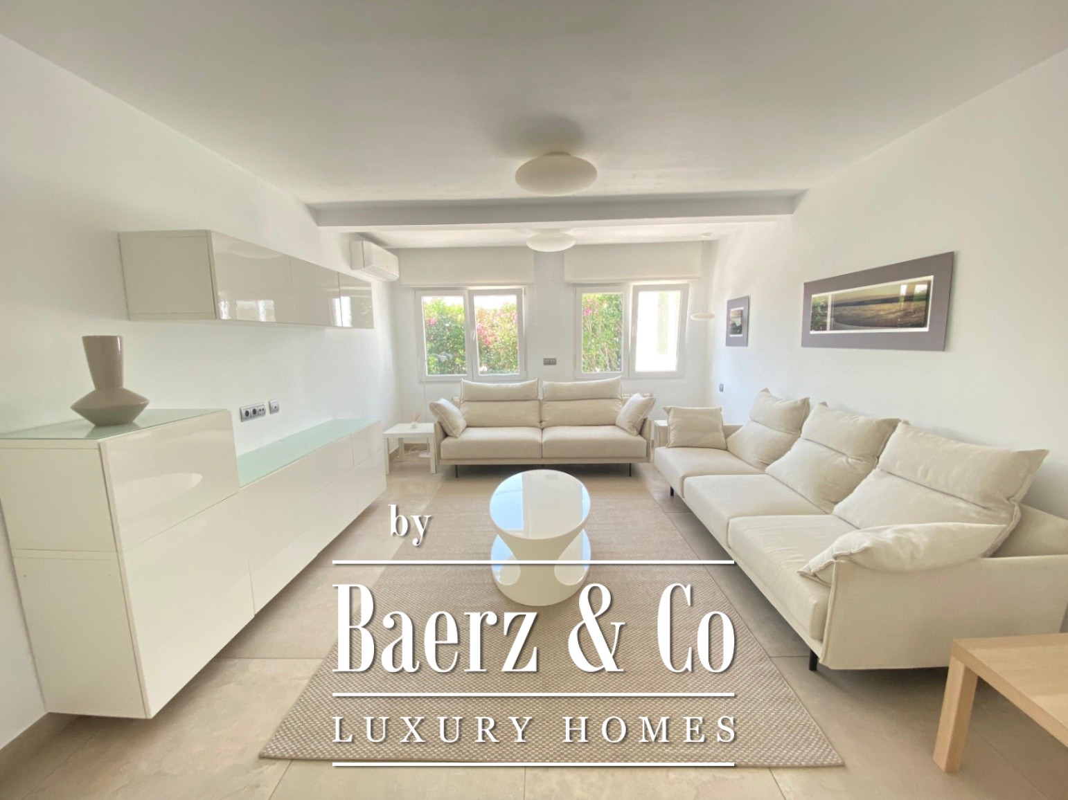 garden, ideal for enjoying the Mediterranean climate. Amenities include air conditioning and heating in all rooms, fitted wardrobes, a spacious living-dining room with direct access to the garden, an independent fully equipped kitchen, a utility room, a library, and a storage room. Additional option: Adjacent plot of 662 m² available. Total price (villa + plot): €1,150,000