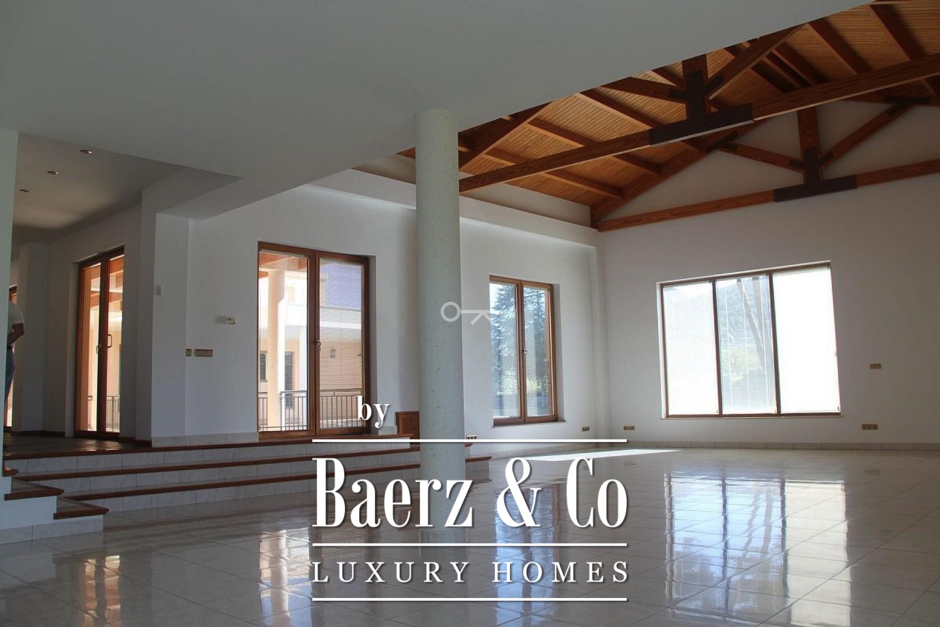 Six bedrooms and eight bathrooms are crafted with quality materials, their proportions suggesting a rhythm of both grand entertaining and intimate privacy. The large, modern kitchen forms a convivial axis for gatherings while the guest apartment invites extended stays. Light moves across expansive terraces, leading to a striking pool that frames panoramic garden views. Air conditioning and discreet heating ensure year-round comfort. The garage accommodates up to ten cars yet hints at future transformation, whether as a gym or spa.