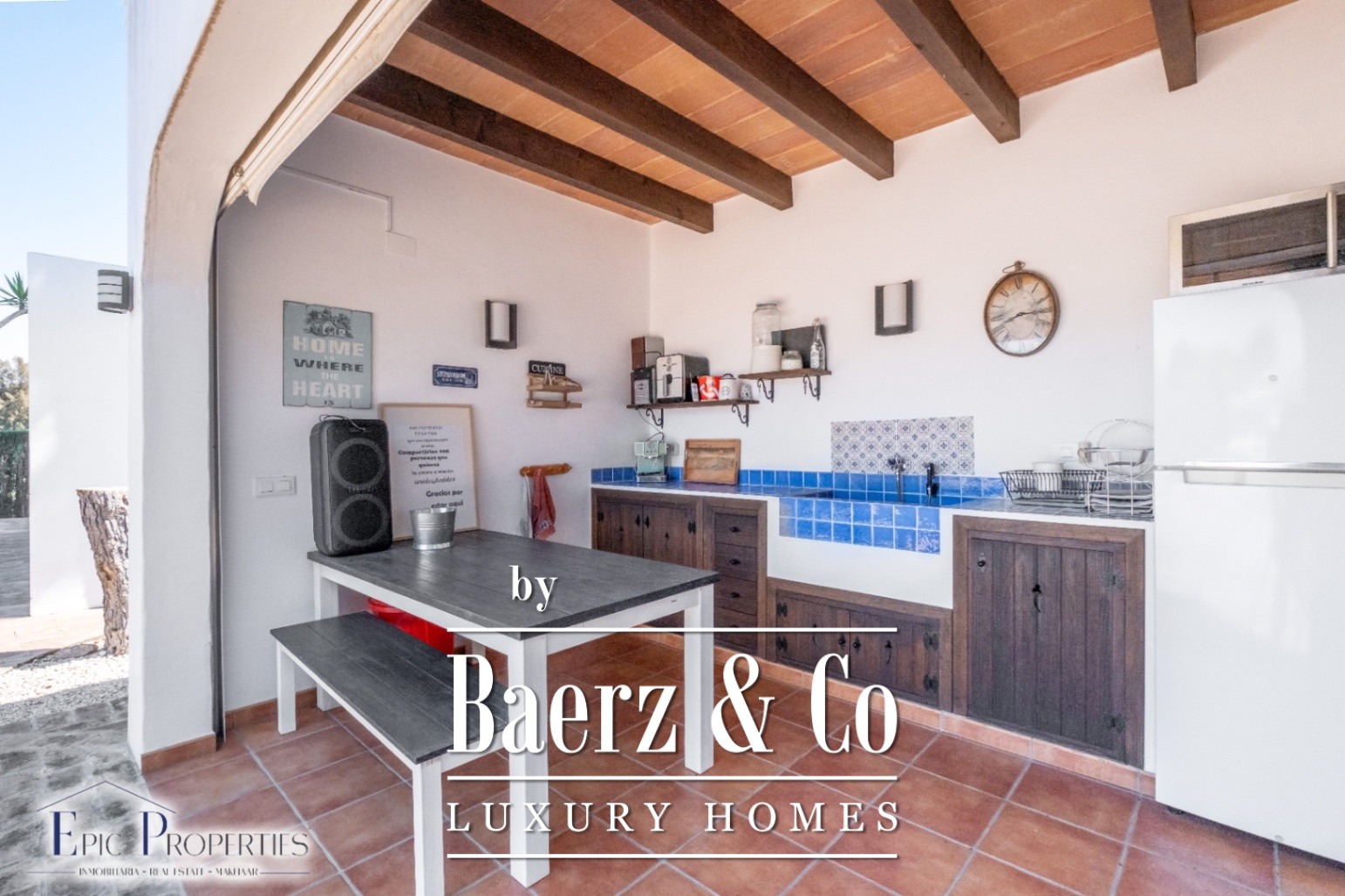 ensuring energy efficiency and comfort throughout the year. The exterior is a true Mediterranean paradise with fruit trees (orange trees, lemon trees, pear trees, apple trees, among others) and an automatic irrigation system fed by its own well. It also has a large swimming pool of 12x6 meters, perfect for enjoying the climate, and a tennis court ideal for staying active without leaving home. Next to the pool, there are four independent constructions in Ibiza style, which include an outdoor kitchen, a full bathroom, an outdoor dining area, and a lounge area with a barbecue and wood oven. In addition, the estate offers additional spaces that complement its exclusive character, such as a climate-controlled gym, a spacious workshop of 10x5 m, a wooden cabin of 5x3 m, ideal as a leisure space or additional storage, a separate garage, and covered parking. With wired internet and all services ready to move in, this estate is a unique opportunity for those seeking quality of life, nature, and privacy in an unbeatable location.
