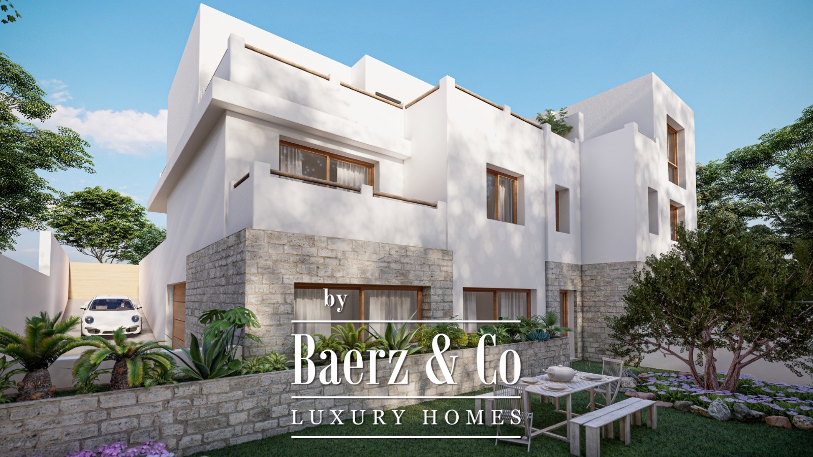 island; a bedroom with en-suite bathroom and dressing room; and a functional laundry room. On the first floor, there will be 4 bedrooms, all with access to sunny terraces, and 3 beautiful bathrooms. There is also the possibility to include a basement with a large garage. The villa will include several modern amenities such as alarm system, pre-installation for solar panels and charging station for electric cars; heat pump/air conditioning; underfloor heating in the bathrooms; and a fully equipped modern kitchen. A very attractive and modern villa in project, located in a pleasant environment in Alfaz del Pi!