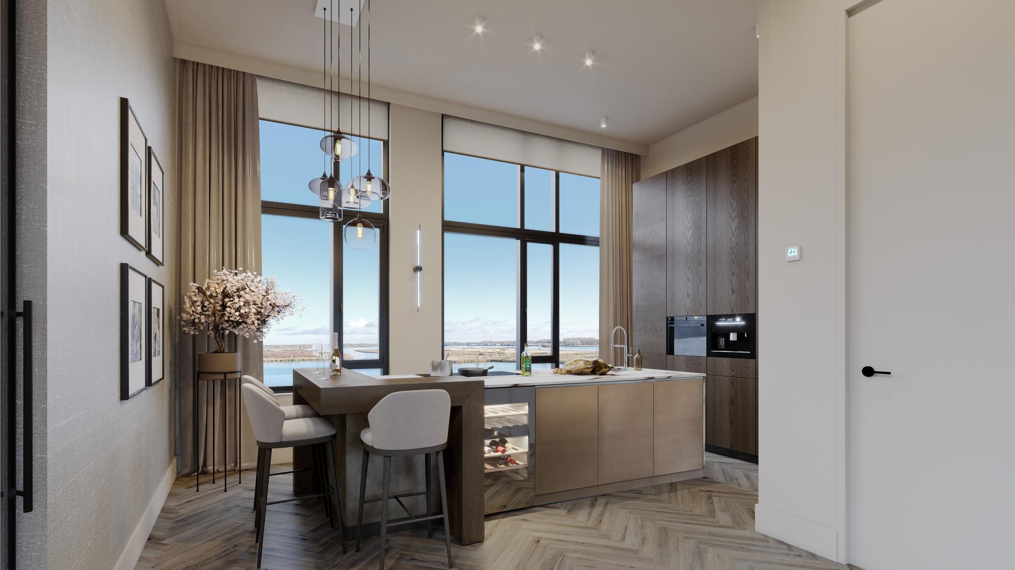 The penthouse is part of 51 luxury Loft homes, designed by Marc Koehler Architects. The new development Peak is built on a beautiful quiet spot in Noorderplassen-West with woods on one side and the Noorderplassen water area on the other. the other side the Noorderplassen water area. The surroundings breathe water sports. In Peak, you will live with a permanent holiday feeling! The building is currently still under construction and will be completed around September.