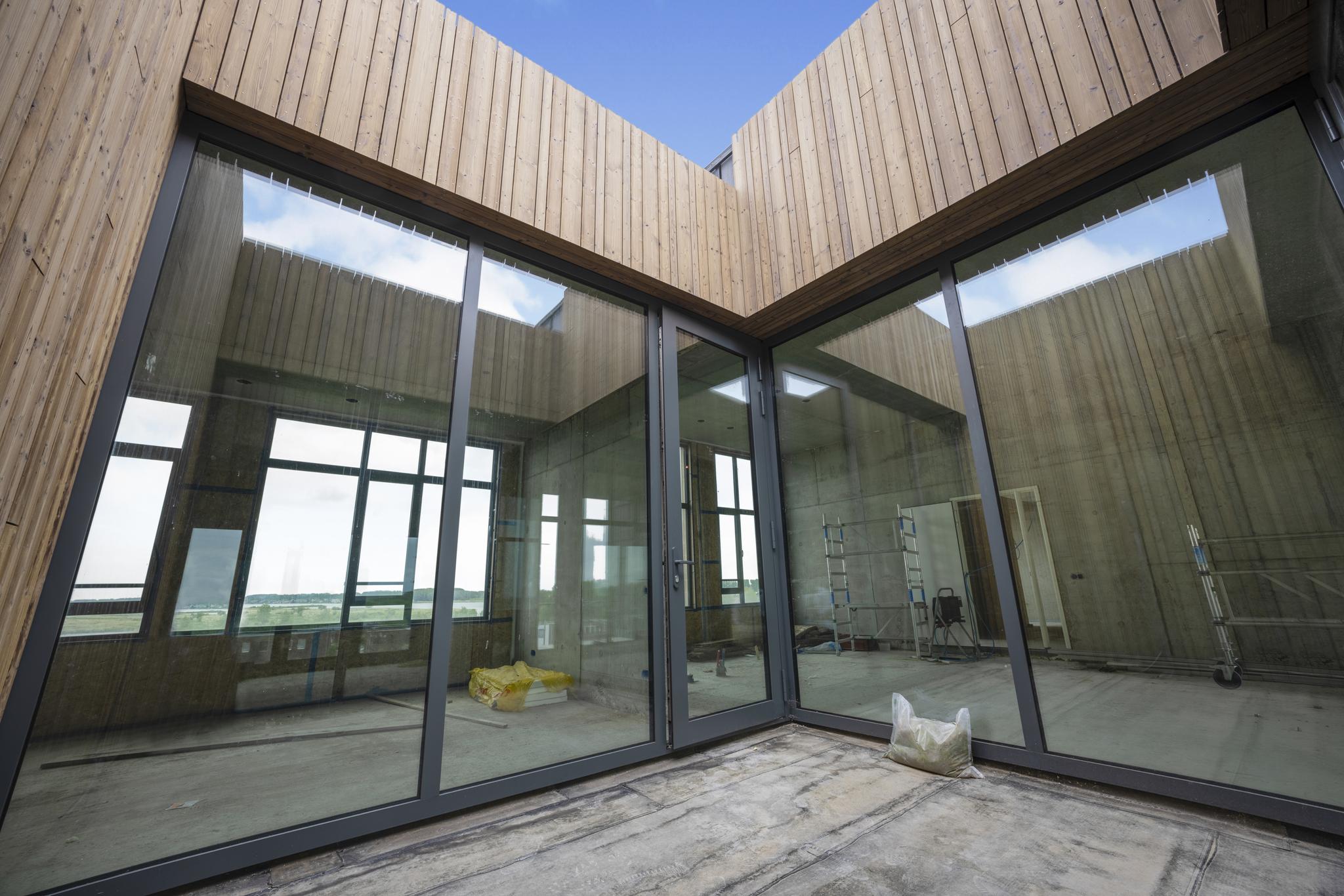 - Beton en aluminium kozijnen deels van gerecycled materiaal;