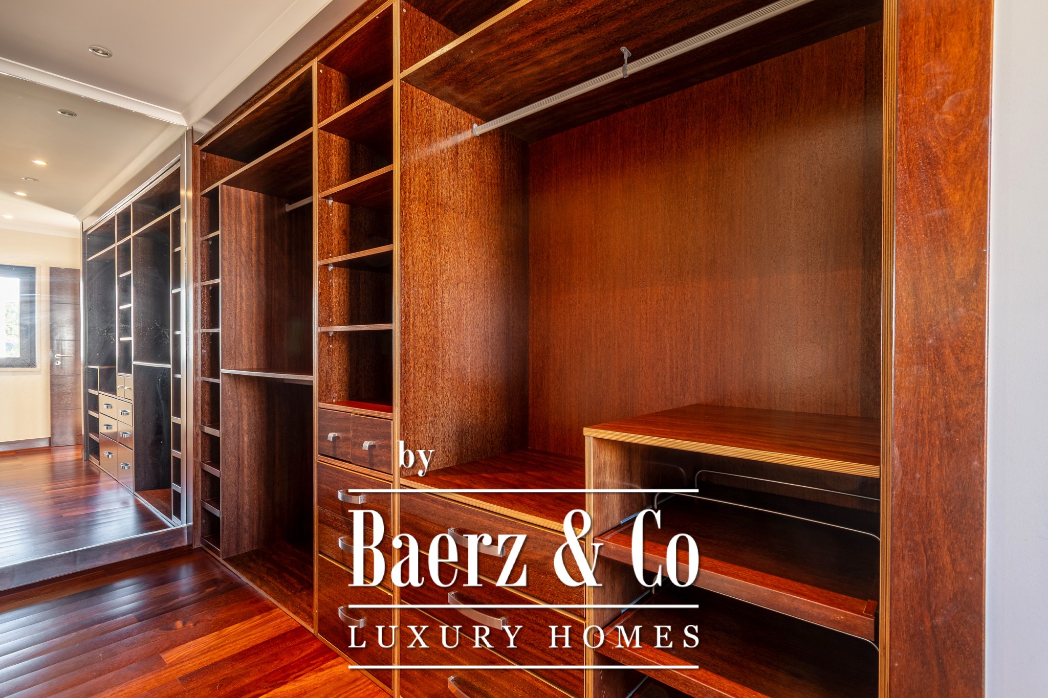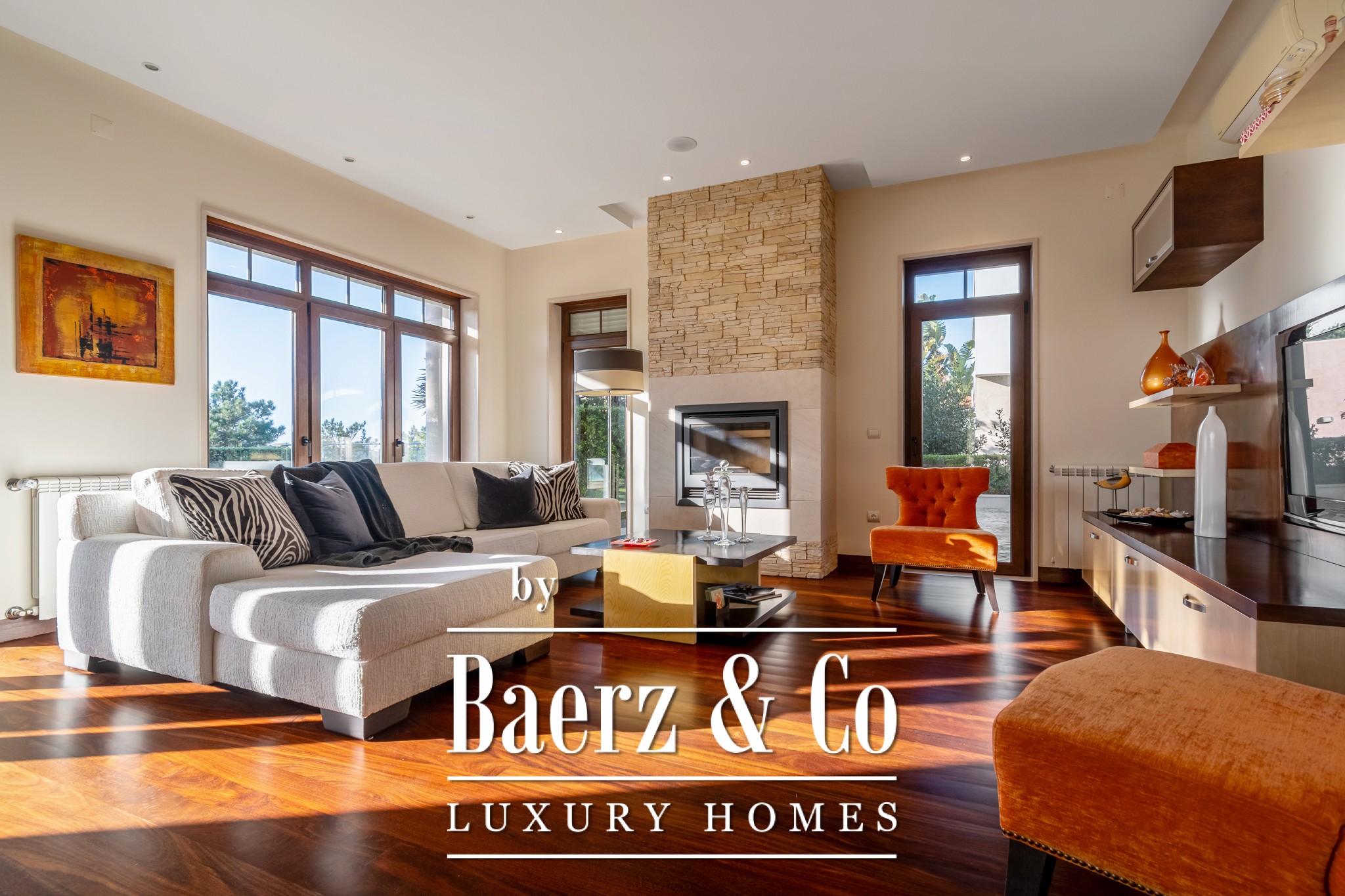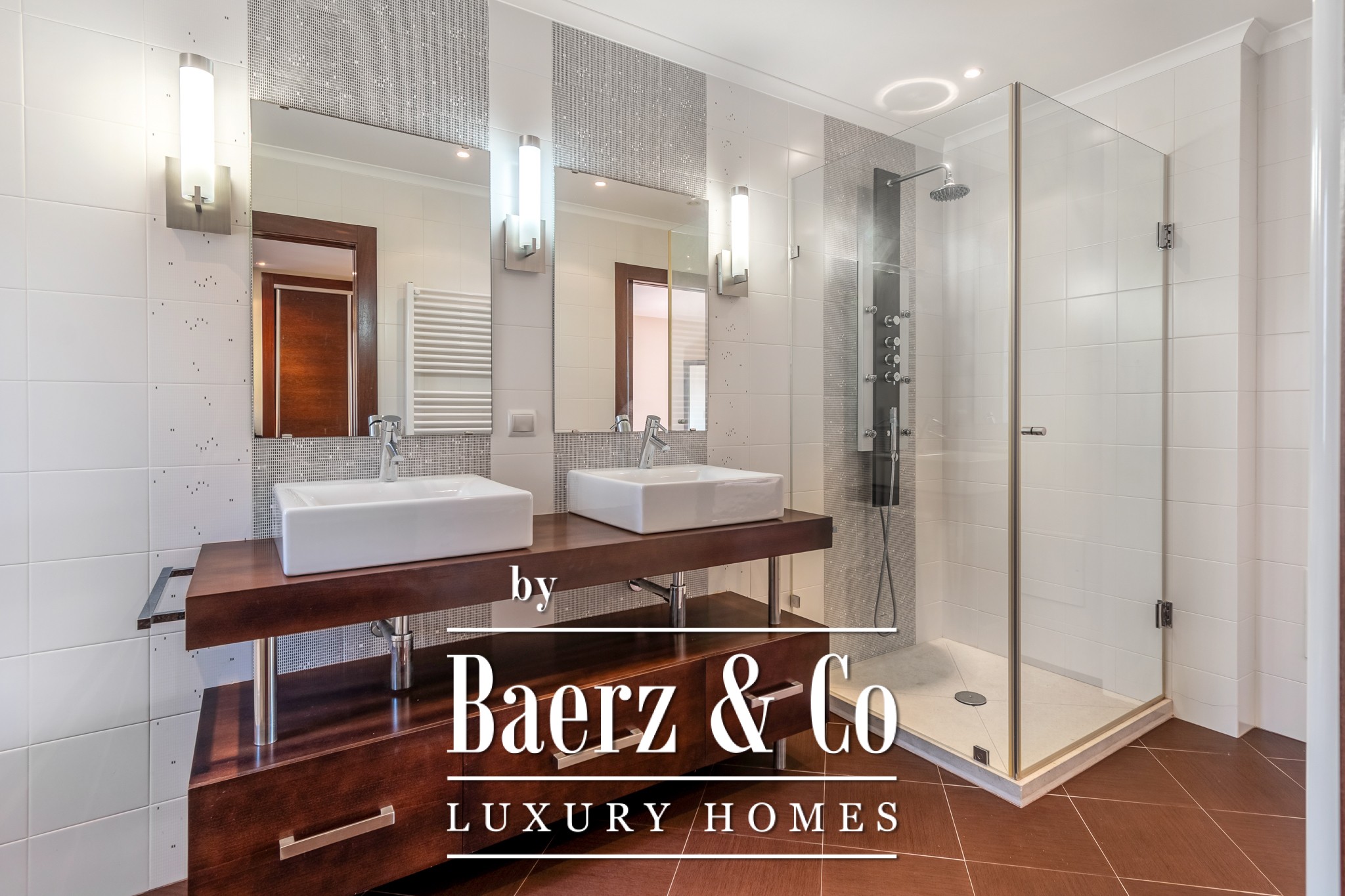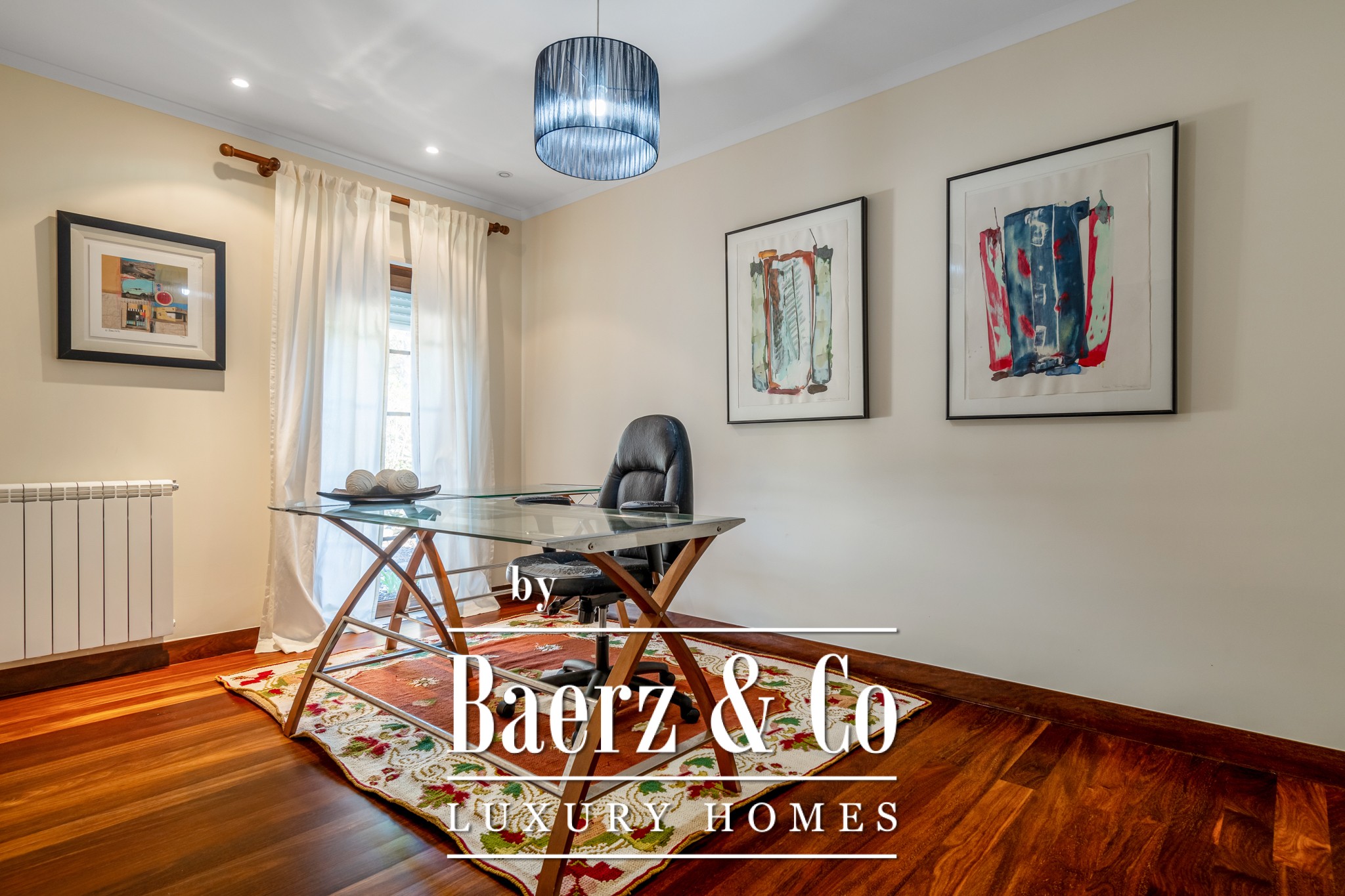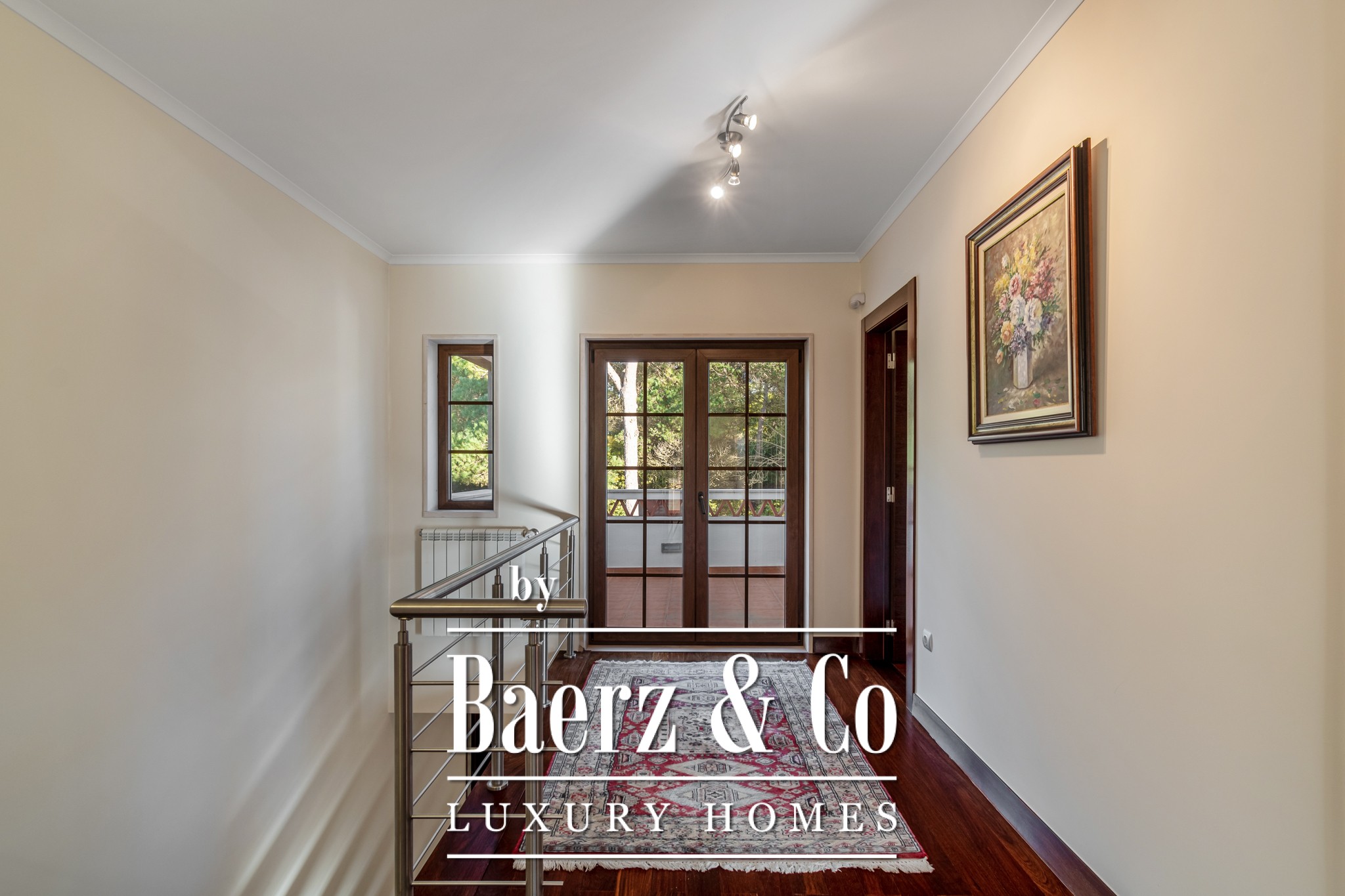 Very well located within Praia d'el Rey Beach & Golf Resort, this fabulous villa with privileged views of the golf course offers the perfect balance between elegance, comfort and tranquillity.Just a 2-minute walk from the Clubhouse, a 10-minute walk from the beach and a few minutes by car from all kinds of shops and services, this villa is perfect for those who value a privileged location, quality of life and comfort.With a plot of 1024 m2 and 480.38m2 of construction area, the villa stands out for the quality of the finishes and the excellent distribution of its spaces.Spread over 2 floors and basement, with plenty of privacy and excellent solar orientation, the villa consists of: Ground Floor: - Elegant entrance hall, very spacious and with a beautiful wooden staircase that gives access to the upper floor- Private office.- Social bathroom- A bedroom en suite with a good wardrobe and bathroom with window, shower and bathtub, ideal for receiving guests.- Generously sized equipped kitchen with 2 islands, with pantry, laundry room and direct access to the basement and garden. - Elegant dining room- Spacious and welcoming living room integrated with the dining room and kitchen, perfect for enjoying the family and receiving guests, with a stone fireplace and stove and large glass windows that let in abundant light.Upper Floor:- A generous bedroom hall that gives access to a pleasant terrace with sun in the morning.- Two large bedrooms with good wardrobes and sharing the same bathroom complete with shower and a window. One of the bedrooms also has a spacious private terrace with plenty of light.- Master bedroom, spacious and bright with electric fireplace, a walking closet, a generous full bathroom with shower, whirlpool bathtub and window and also a pleasant and