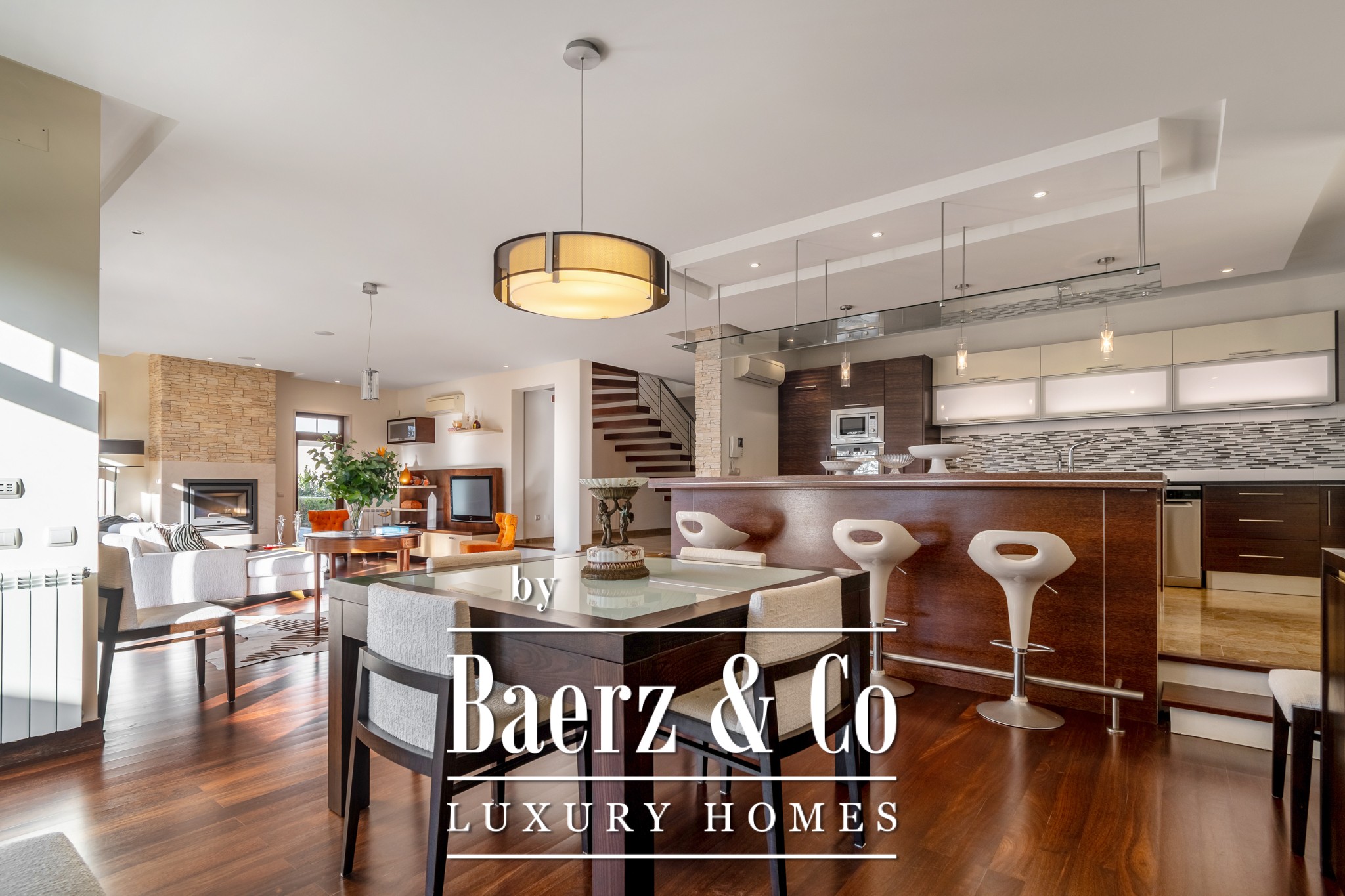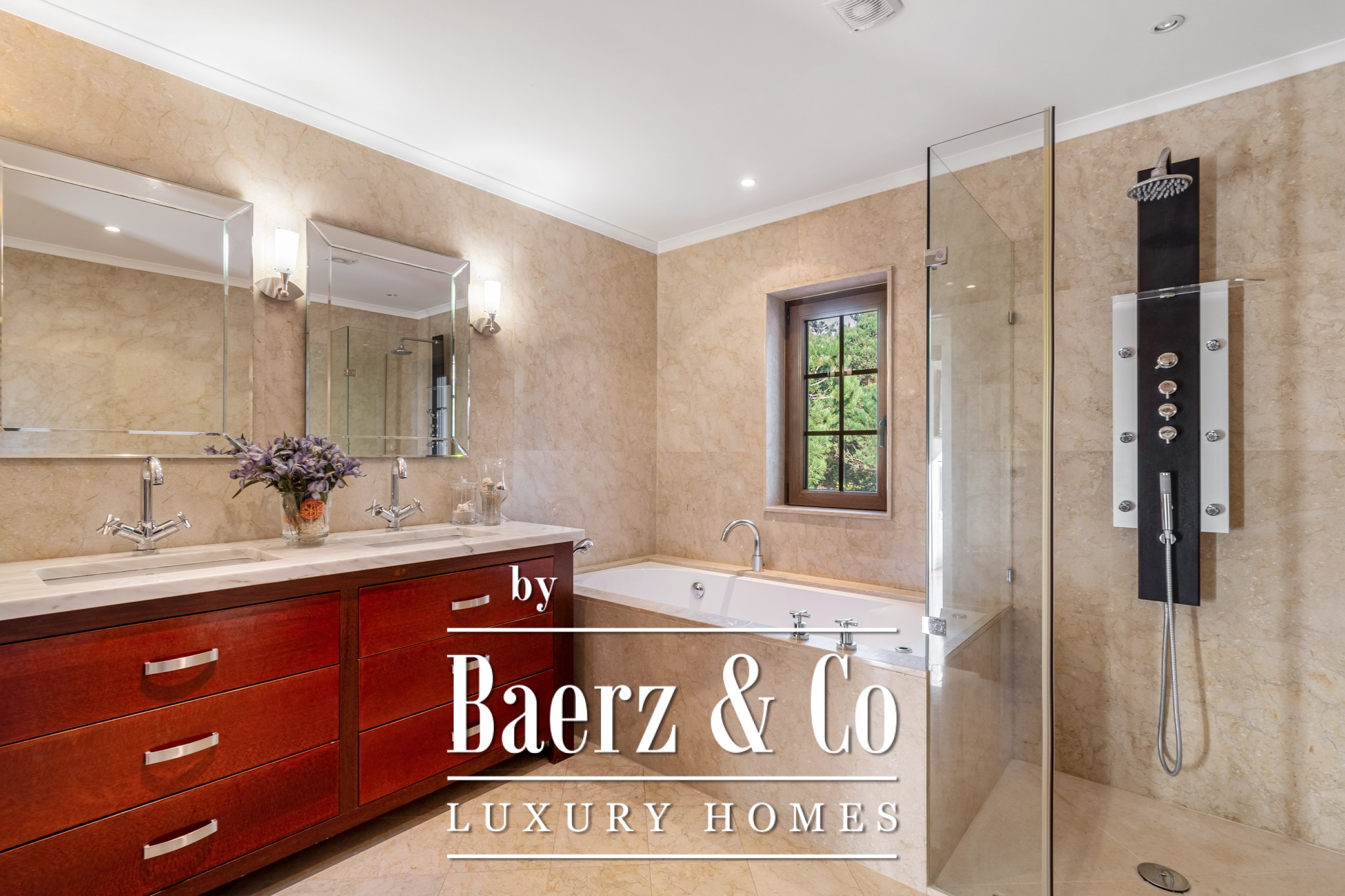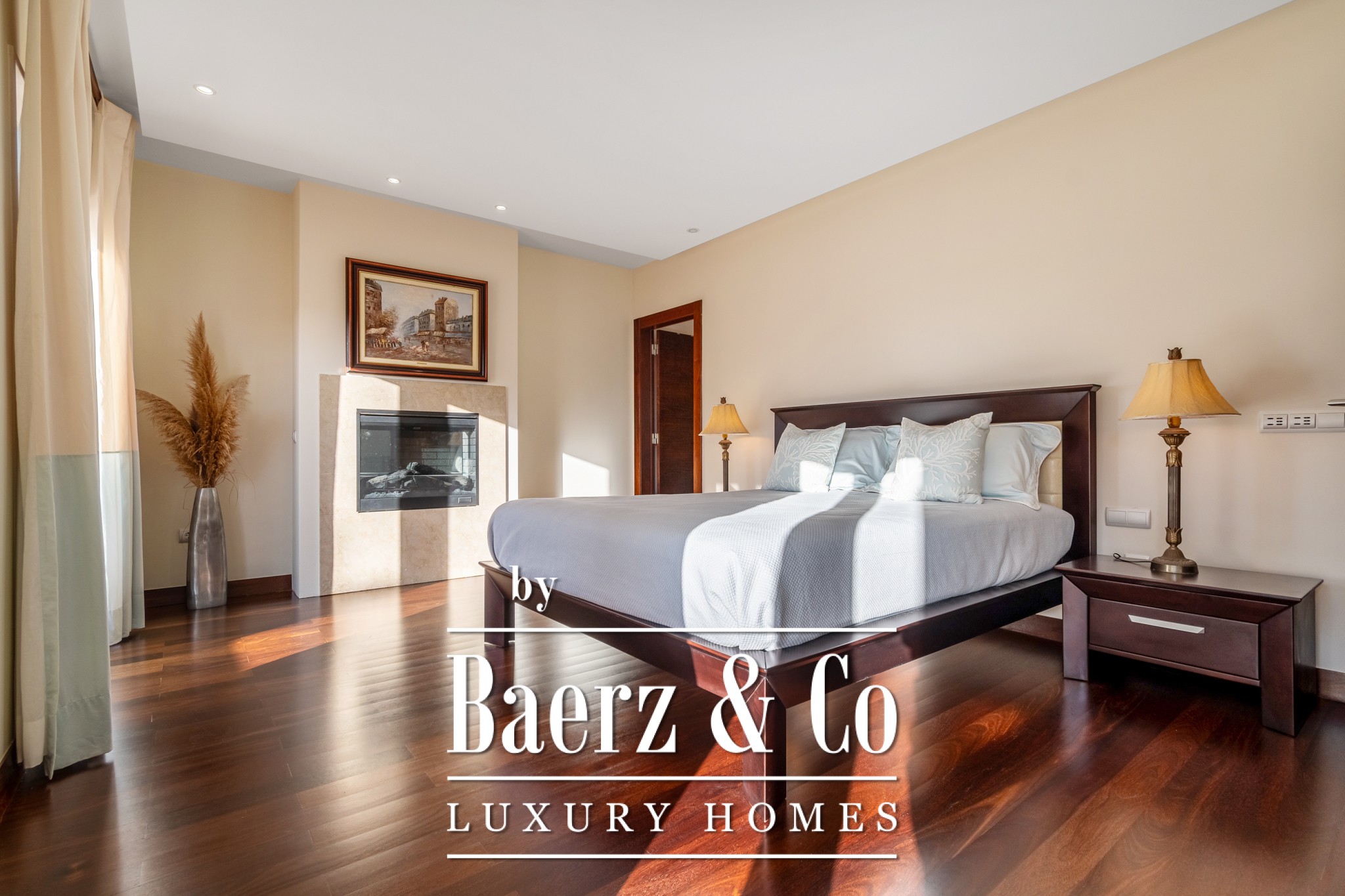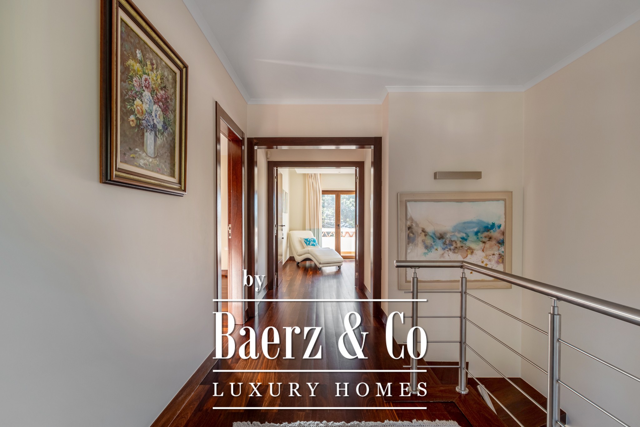 Very well located within Praia d'el Rey Beach & Golf Resort, this fabulous villa with privileged views of the golf course offers the perfect balance between elegance, comfort and tranquillity.Just a 2-minute walk from the Clubhouse, a 10-minute walk from the beach and a few minutes by car from all kinds of shops and services, this villa is perfect for those who value a privileged location, quality of life and comfort.With a plot of 1024 m2 and 480.38m2 of construction area, the villa stands out for the quality of the finishes and the excellent distribution of its spaces.Spread over 2 floors and basement, with plenty of privacy and excellent solar orientation, the villa consists of: Ground Floor: - Elegant entrance hall, very spacious and with a beautiful wooden staircase that gives access to the upper floor- Private office.- Social bathroom- A bedroom en suite with a good wardrobe and bathroom with window, shower and bathtub, ideal for receiving guests.- Generously sized equipped kitchen with 2 islands, with pantry, laundry room and direct access to the basement and garden. - Elegant dining room- Spacious and welcoming living room integrated with the dining room and kitchen, perfect for enjoying the family and receiving guests, with a stone fireplace and stove and large glass windows that let in abundant light.Upper Floor:- A generous bedroom hall that gives access to a pleasant terrace with sun in the morning.- Two large bedrooms with good wardrobes and sharing the same bathroom complete with shower and a window. One of the bedrooms also has a spacious private terrace with plenty of light.- Master bedroom, spacious and bright with electric fireplace, a walking closet, a generous full bathroom with shower, whirlpool bathtub and window and also a pleasant and