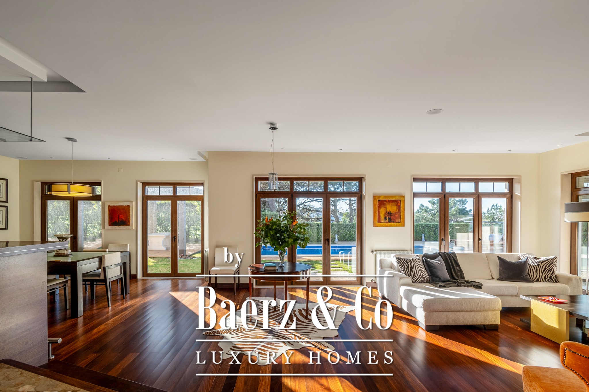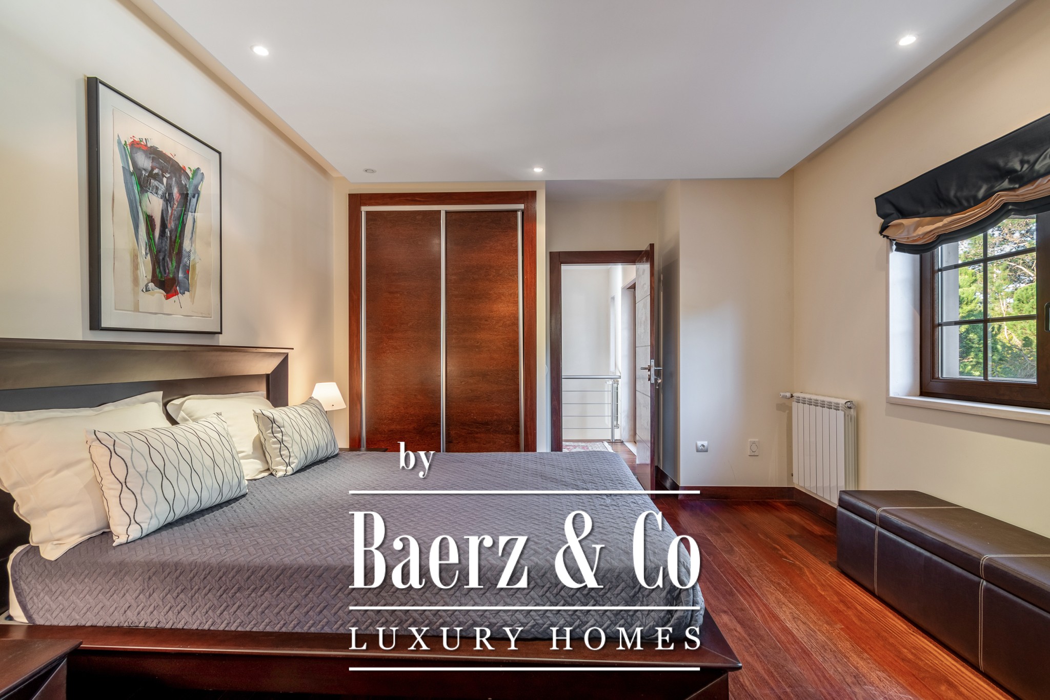 sunny terrace, very spacious, where you can enjoy the view of the golf course, the sea and the sunset.Basement, with access from the inside and outside:- Large, multipurpose room, ideal to be used as a cinema room, games room or gym.- Bathroom with shower- A generous wine cellar and tasting room, perfect for true wine connoisseurs- Garage with space for several cars and storage.Exterior:- Barbecue area, covered to be used all year round. - Inviting dining area, covered and with a stone table where you can enjoy your meals outdoors.- Quiet garden, well kept and with several spaces, perfect for leisure time- Generous saltwater pool ideal for cooling off and sunbathing- An inviting porch, with direct access to the entire social area of the house, where you can enjoy the view, the singing of birds and the sunset.- Underground room for machines and storage - Bathroom with shower to support the pool- Covered parking area Details:- Natural oak wood flooring in the private area and in the social area of the house- Natural stone floors from Molianos in the lobby and some bathrooms- Air conditioning for heat and cold- Diesel central heating- Central vacuum- Electric shutters- Radio and background music, private for each room of the house- Water hole in the garden- Excellent sun exposurePraia D'el Rey Beach & Golf Resort is a recognised 5-star seaside resort, with a hotel, several restaurants, a beautiful 18-hole golf course, tennis club, children's playground, grocery store, among others.The beautiful beach is well known by the world's biggest surfers and about 10 minutes by car is the Óbidos Lagoon, perfect for nature lovers and numerous sports.The property is about 25 minutes from Caldas da Rainha and less than 1 hour from Lisbon.This is Paradise, come and see it!