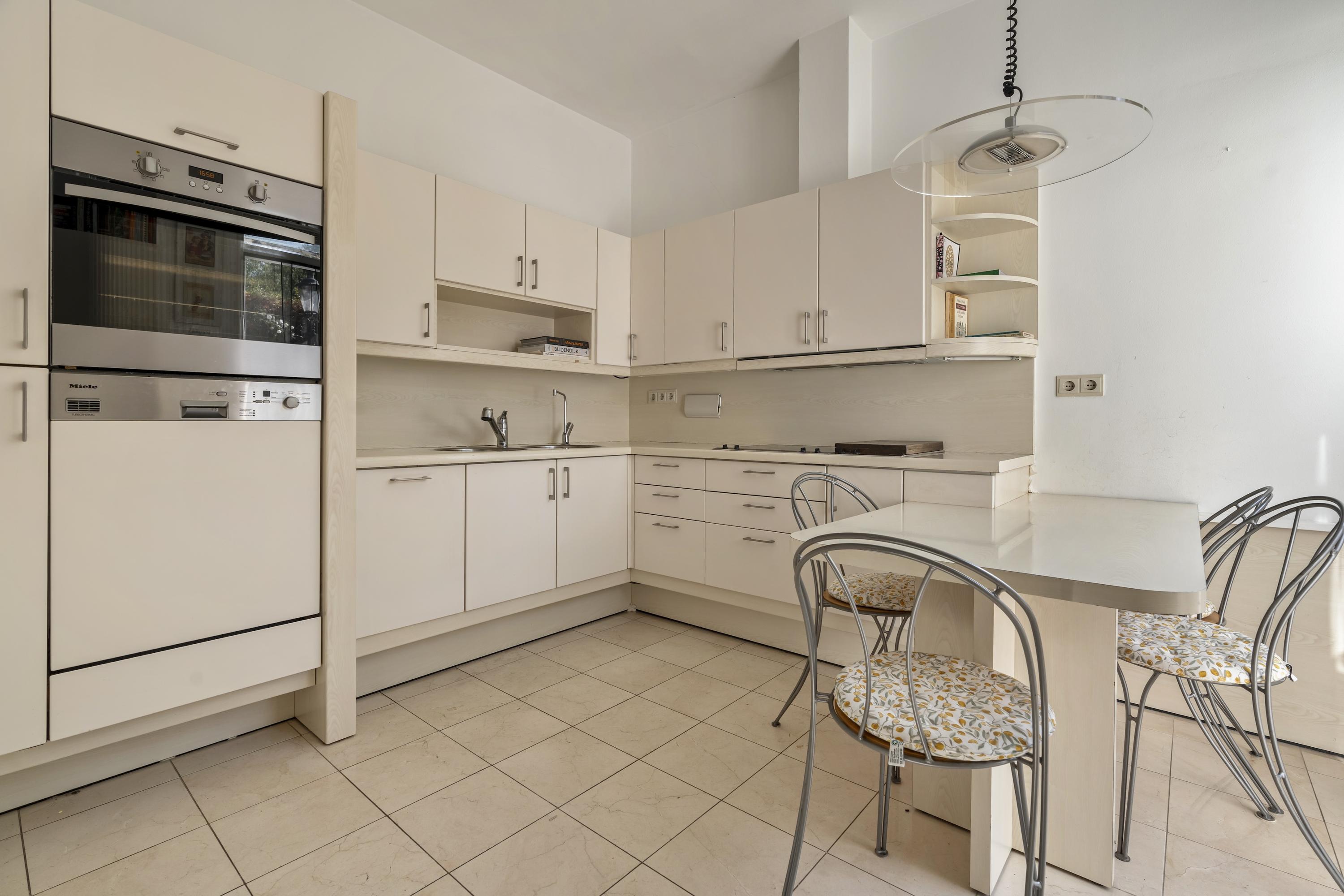Exceptionally wide and spacious family home of approximately 159 m², featuring a generous front and back garden, ideally located in the green and peaceful Buitenveldert neighbourhood. The property offers a bright and spacious living room, a fully equipped kitchen, three comfortable bedrooms, a bathroom with bathtub, and a private garage. The basement provides additional living space and can easily serve as a second living room, playroom, or home office — a versatile extension of the home.