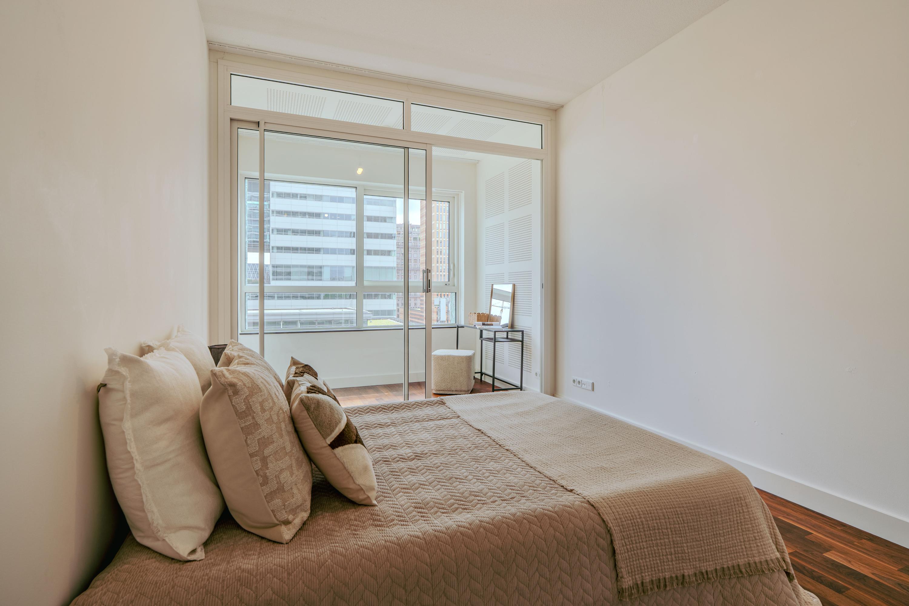 Luxurious living on the 8th floor of New Amsterdam on the Zuidas. In the New Amsterdam building, we present a modern apartment of approximately 105 m² with stunning views over the Zuidas. This residence features two spacious bedrooms, a contemporary bathroom, and a generous balcony of approx. 11 m². Here, comfort and luxury truly come together.