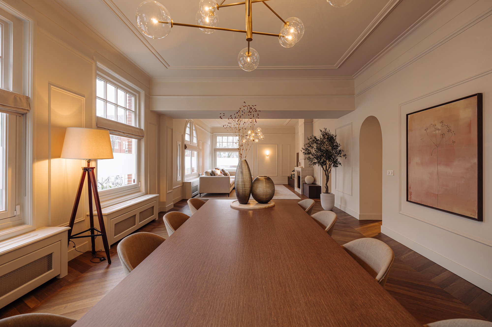 This spacious, beautifully-renovated, luxury ground-floor apartment (approx. 277 m²) is located in the very popular Amsterdam Zuid. The property has five large bedrooms, three stylish bathrooms and a sunny south-west-facing garden. The location is ideal: parks, arterial roads, shops and international schools are all close by, making it the perfect place for comfortable and stylish city living.