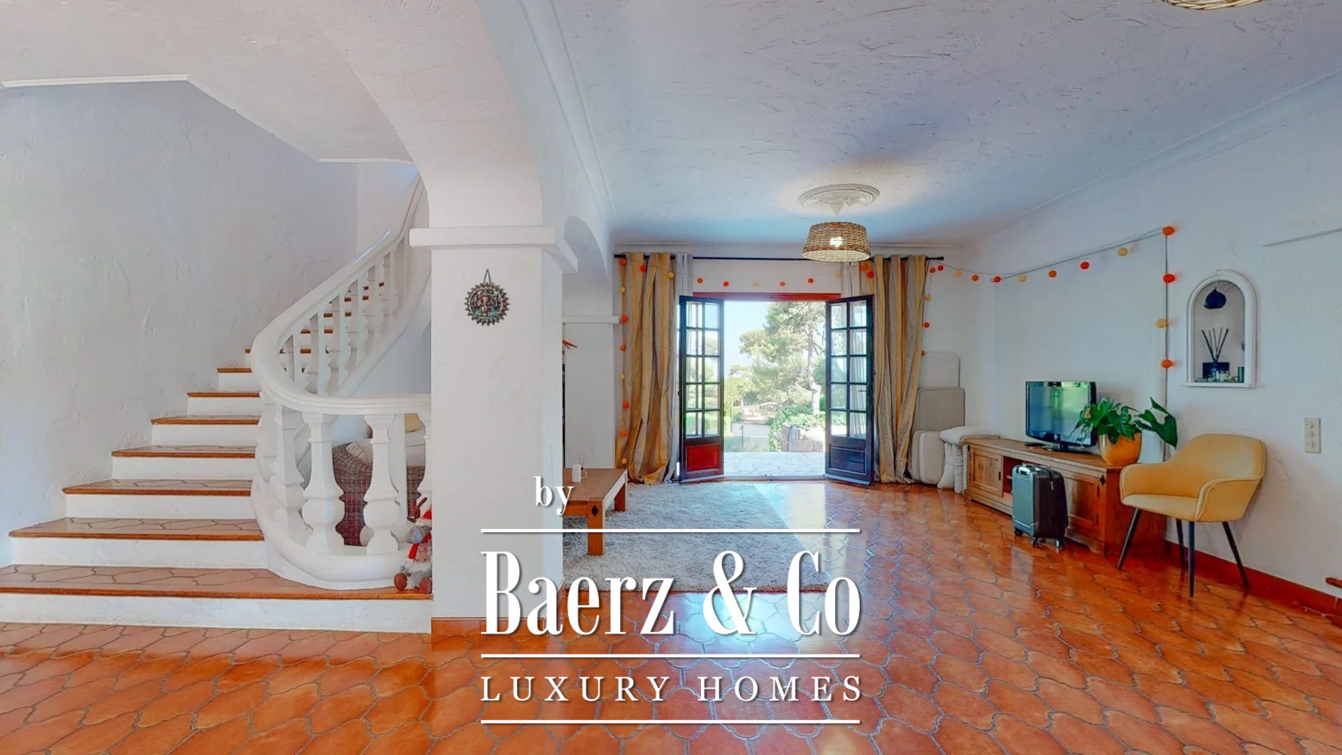 potential for expansion and creation of comfort by your own taste and preferences. Consists of: a living room with a lounge and a relaxation room with a breathtaking view of the garden and the sea. Three bedrooms with bathroom and shower, spacious garage and parking space. Pool permission.
