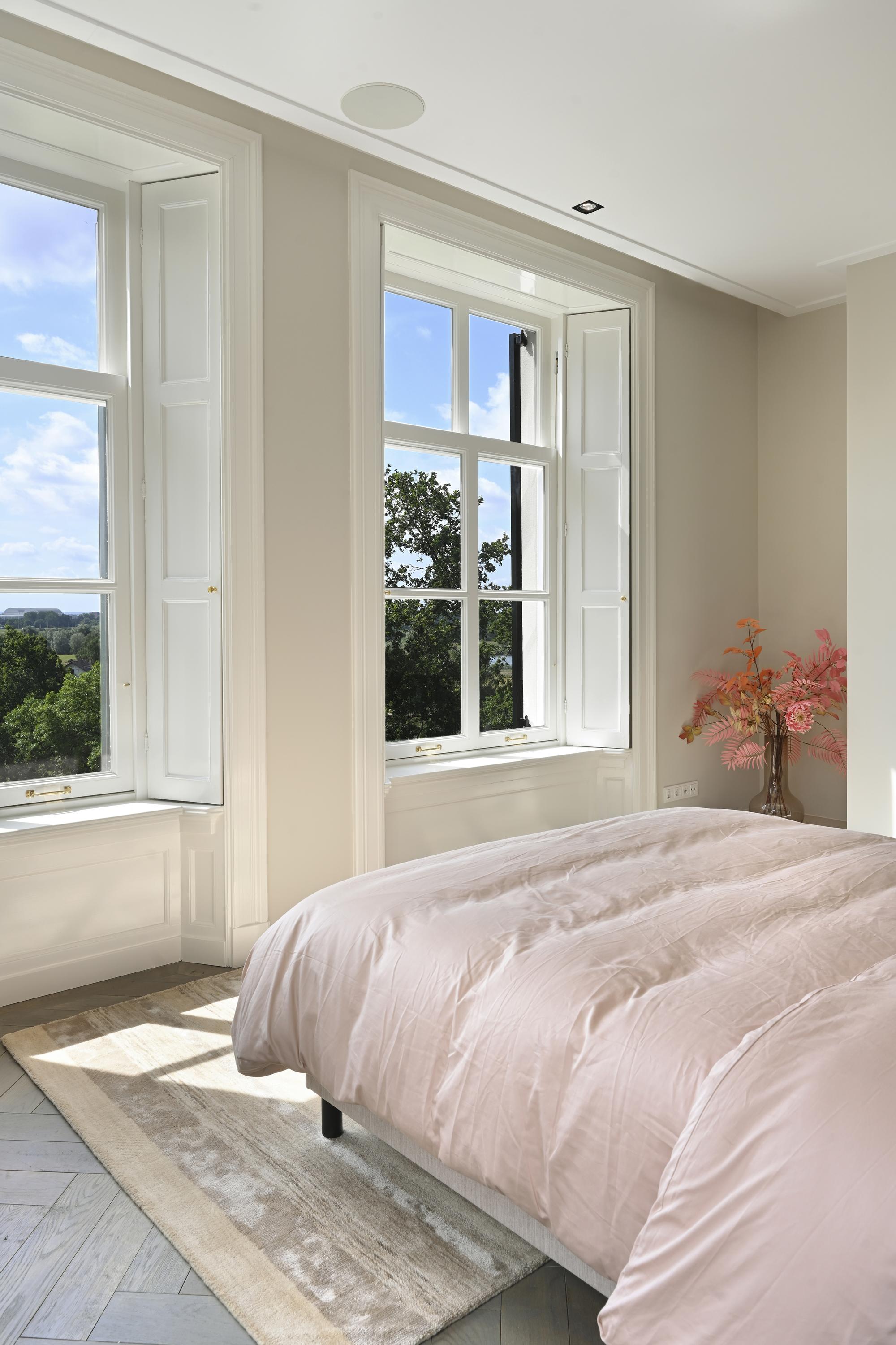 In de statige entree staat u even stil bij de imposante eikenhouten trappartij die fraai wordt uitgelicht door de imposante kroonluchters. Of pakt u toch liever de lift waarmee alleen u naar uw appartement op de eerste etage kunt? Eenmaal thuis geniet u van volop licht en ruimte. Door de grote raampartijen op het zuiden ontvouwt zich een geweldig panorama over de Neder-Rijn en het uiterwaardenpark van Meinerswijk. Op zonnige dagen zit u uiteraard op het royale terras met een goed glas gekoelde wijn. Uw appartement is uiteraard voorzien van alle denkbare technologische gemakken. En van twee ruime slaapkamers, twee badkamers en een aparte werkkamer. Hoge plafonds en een hoogwaardige afwerking maken uw Rijnappartement helemaal compleet. Een ideaal thuis voor wie wil genieten van rust, ruimte en luxe, met de Arnhemse binnenstad vlakbij.