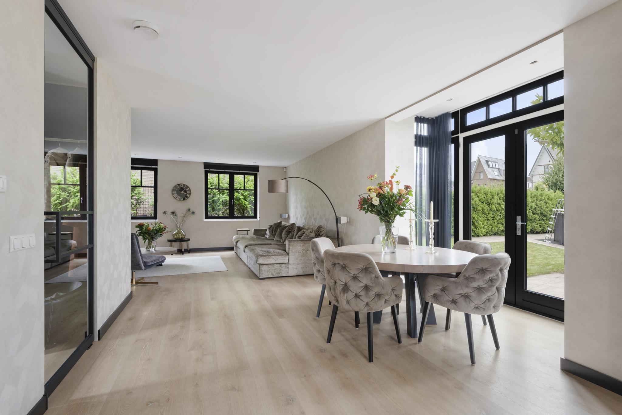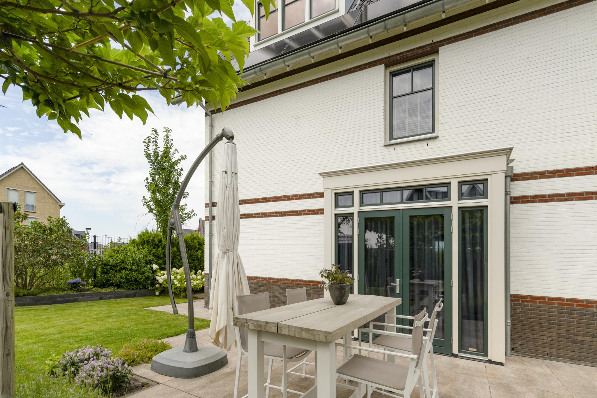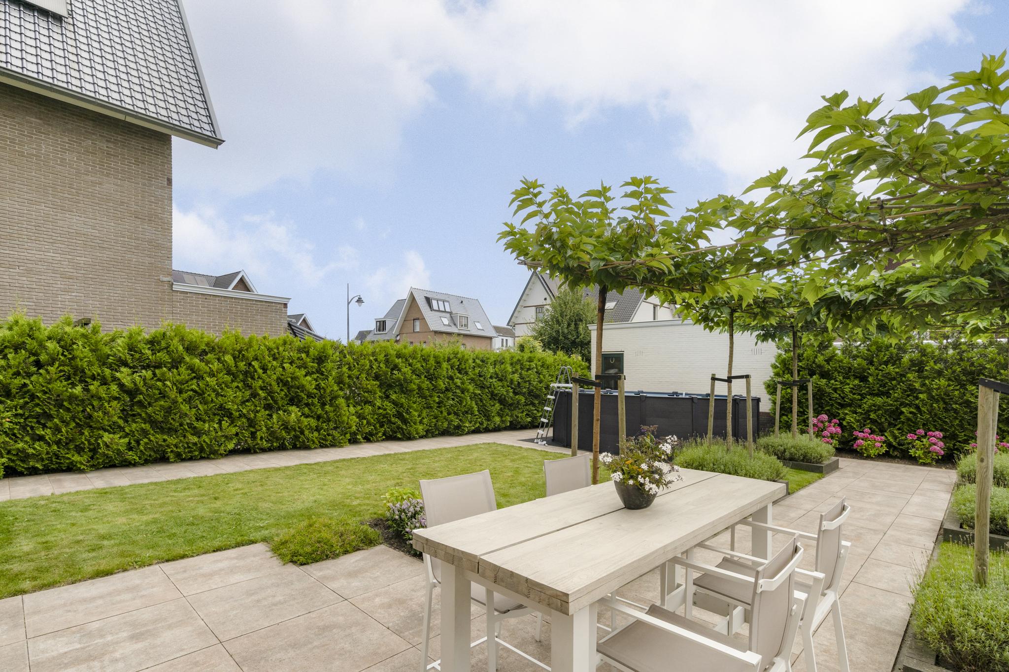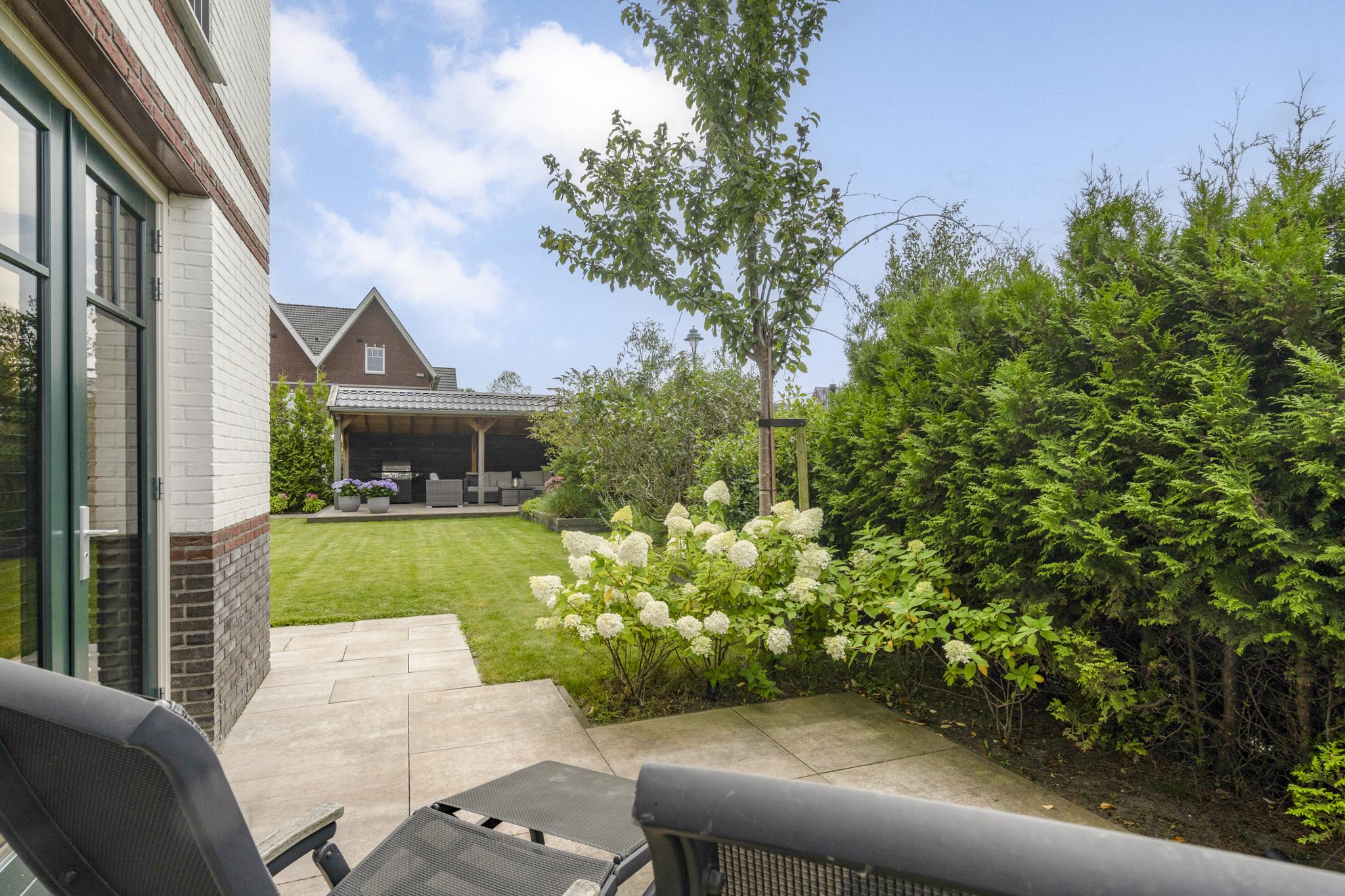 With a living area of no less than 181 m², 4 spacious bedrooms, 2 luxurious bathrooms and an attractive kitchen/diner, this is a dream home for families looking for comfort and style. The villa, built in 2020, radiates warmth and luxury and is finished in detail. The sunny southeast-facing garden offers a lot of privacy and space, so you can enjoy yourself in peace. There is also a detached canopy with lounge area and a beautiful swimming pool. The house also has a spacious garage and parking for several cars on site.