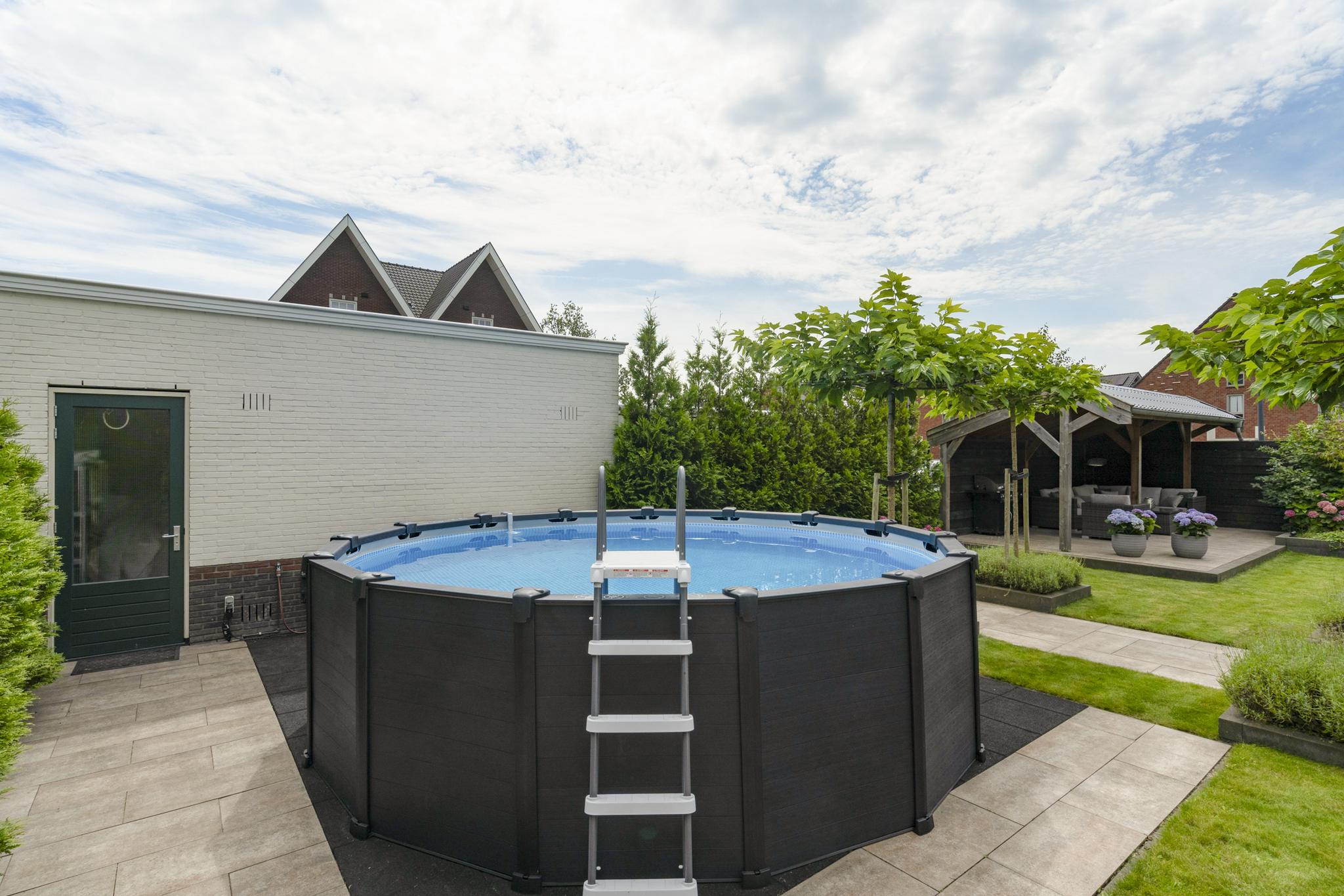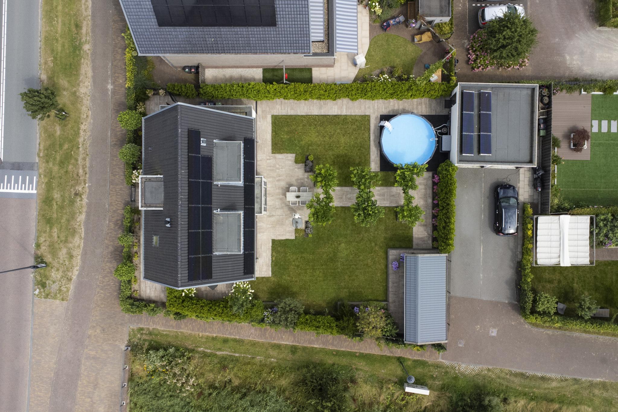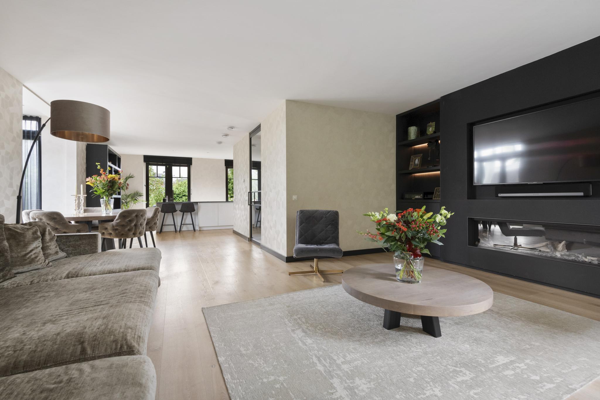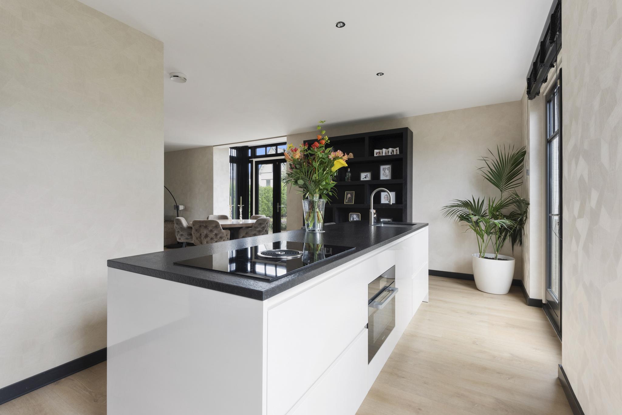 With a living area of no less than 181 m², 4 spacious bedrooms, 2 luxurious bathrooms and an attractive kitchen/diner, this is a dream home for families looking for comfort and style. The villa, built in 2020, radiates warmth and luxury and is finished in detail. The sunny southeast-facing garden offers a lot of privacy and space, so you can enjoy yourself in peace. There is also a detached canopy with lounge area and a beautiful swimming pool. The house also has a spacious garage and parking for several cars on site.