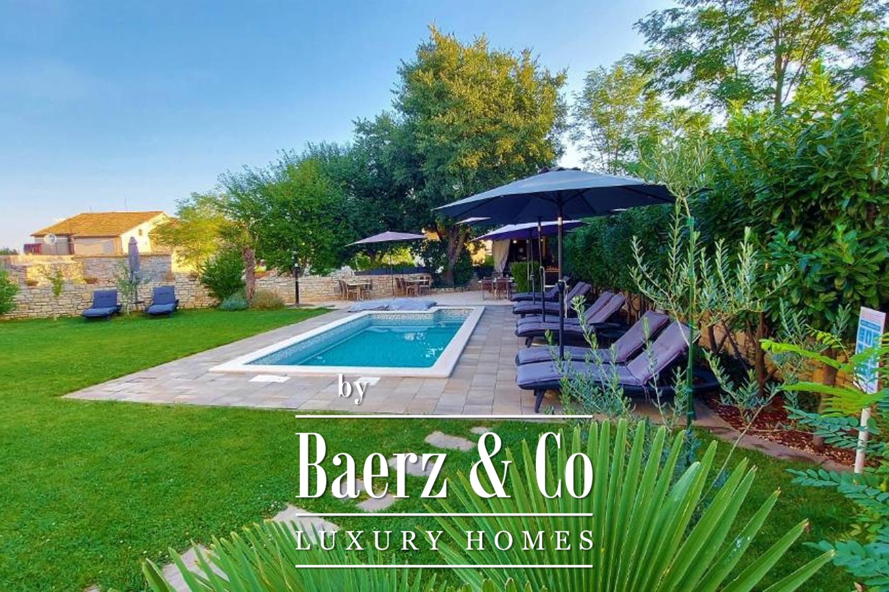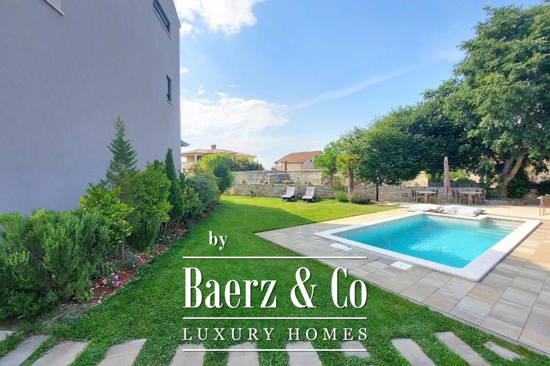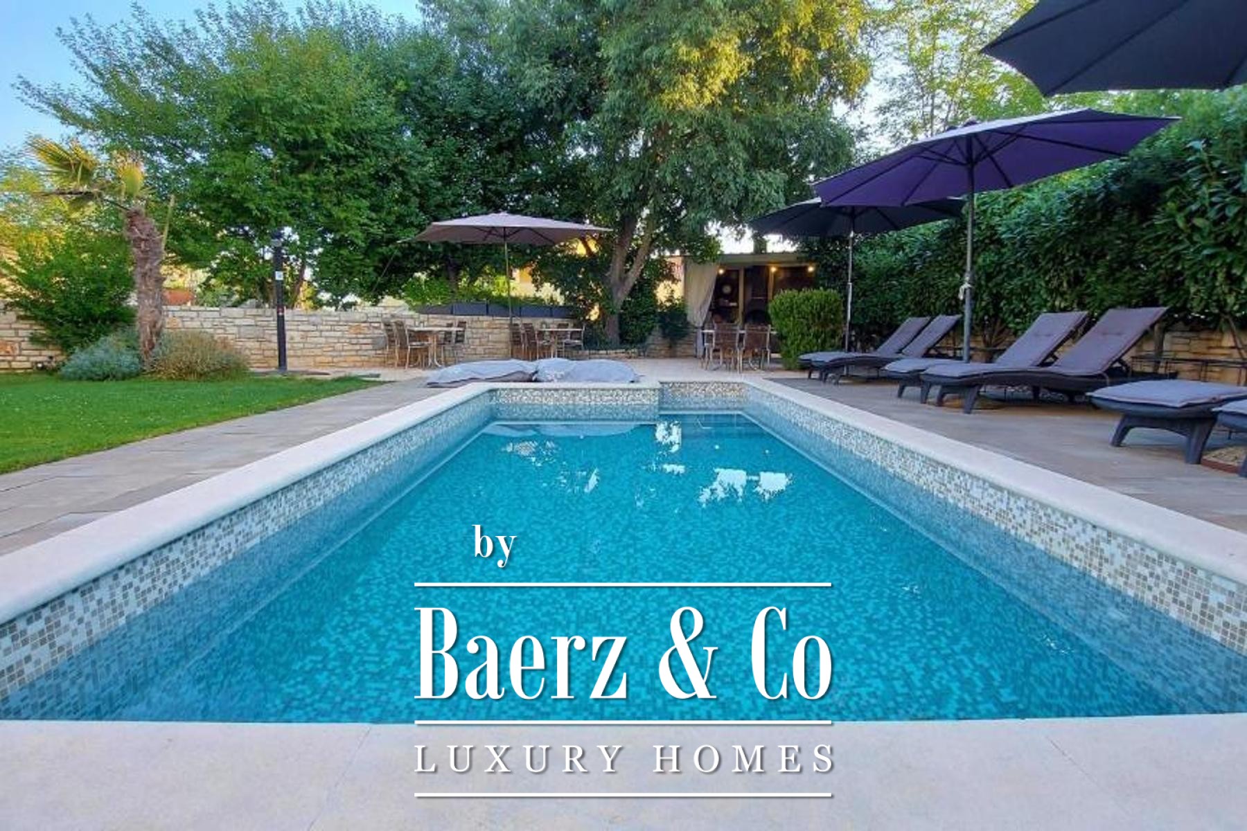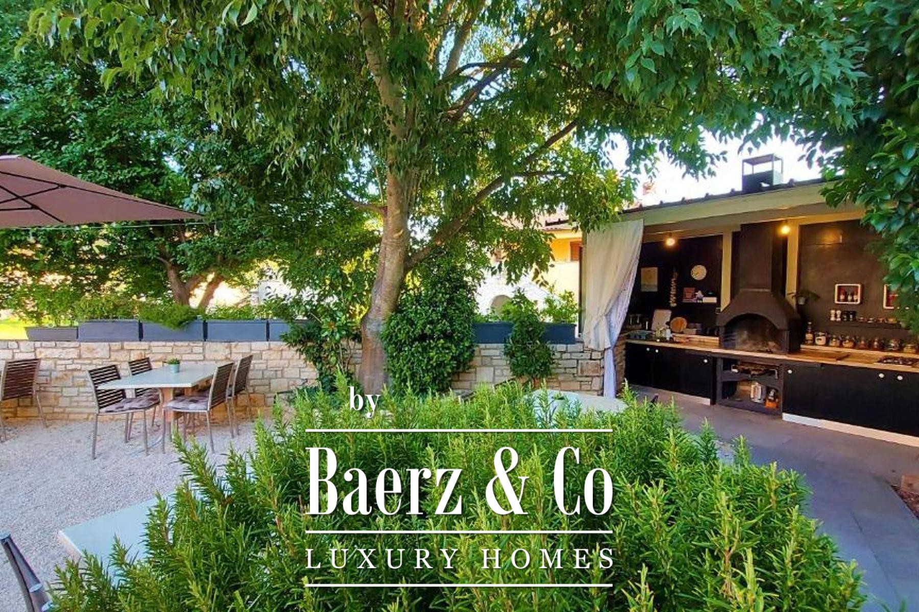 Material comfort is ensured through carefully implemented climate control, underfloor heating in bathrooms, and individual utilities for each apartment. Outdoors, the 818 m² plot is enclosed by lush vegetation and features a communal pool, a summer kitchen for alfresco dining, a sun deck, and an automatically irrigated garden. Four dedicated parking spaces and video surveillance maintain ease and security. This is a versatile opportunity for those seeking quality in Bale, with proven potential for both long-term residence and investment.