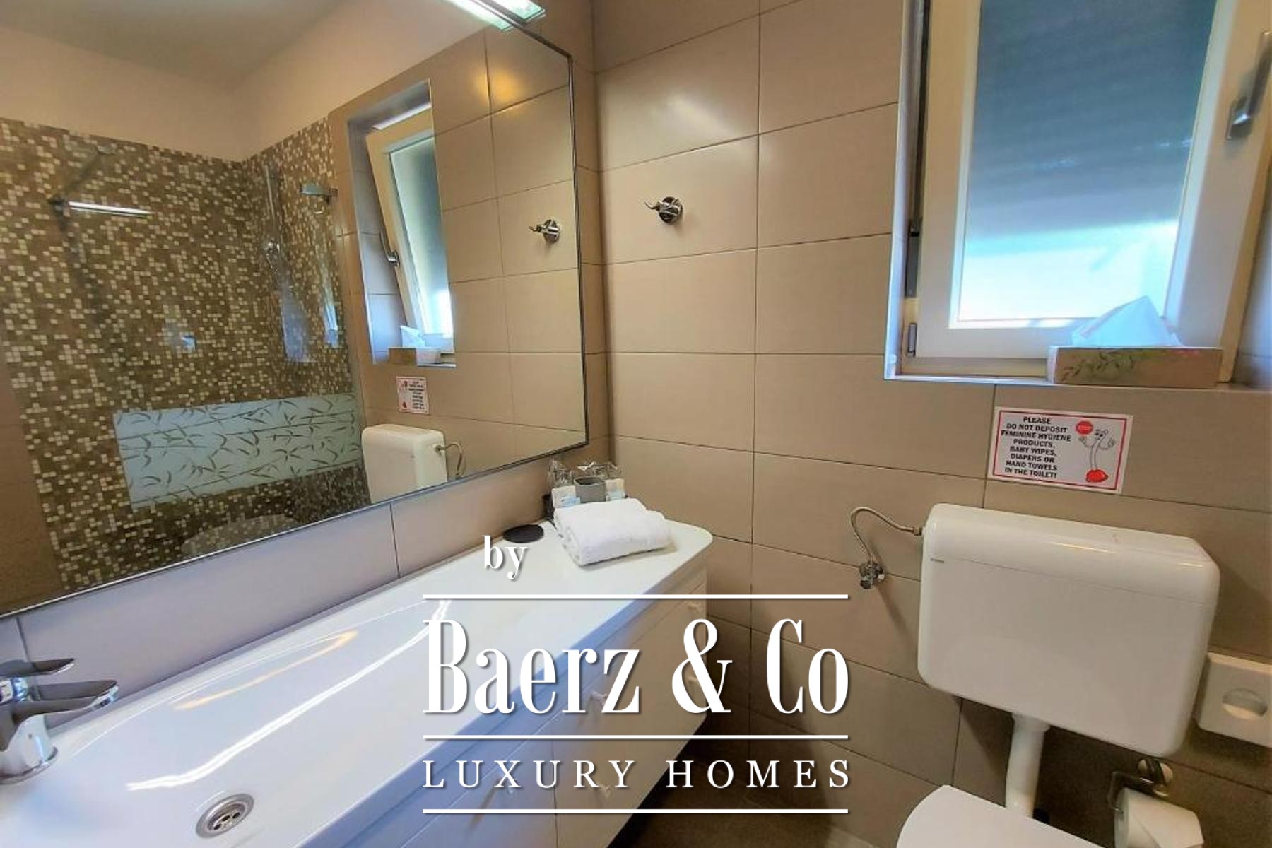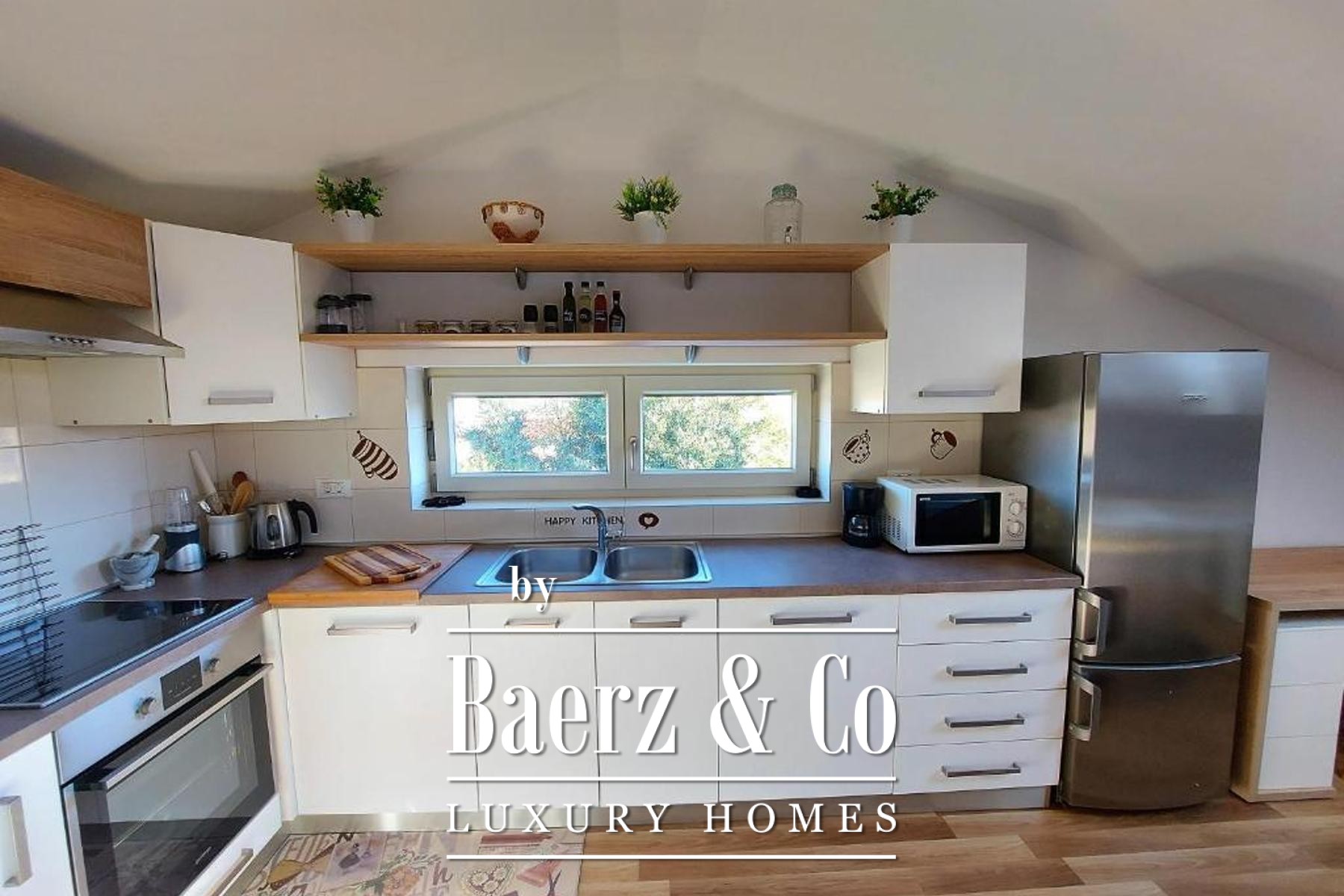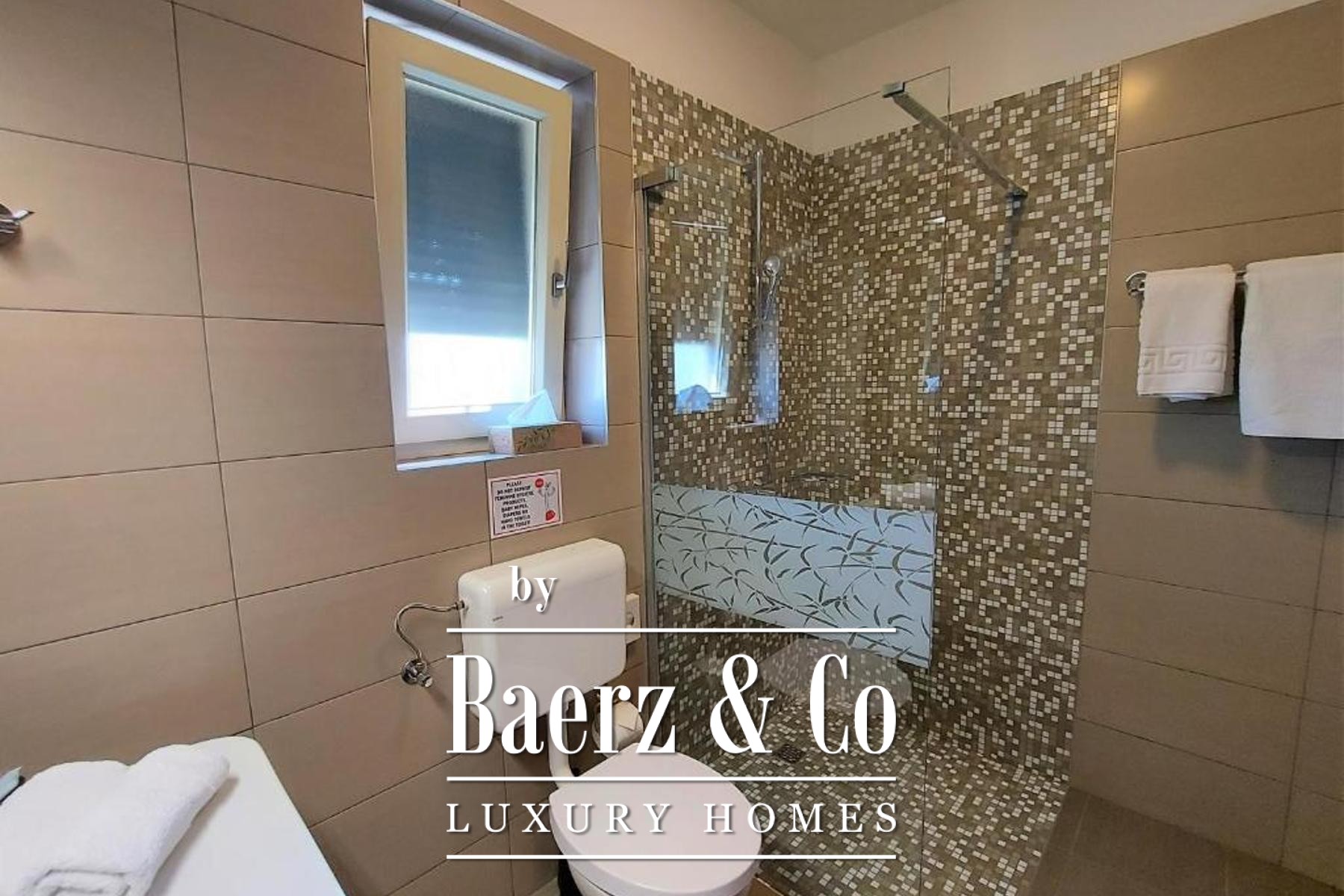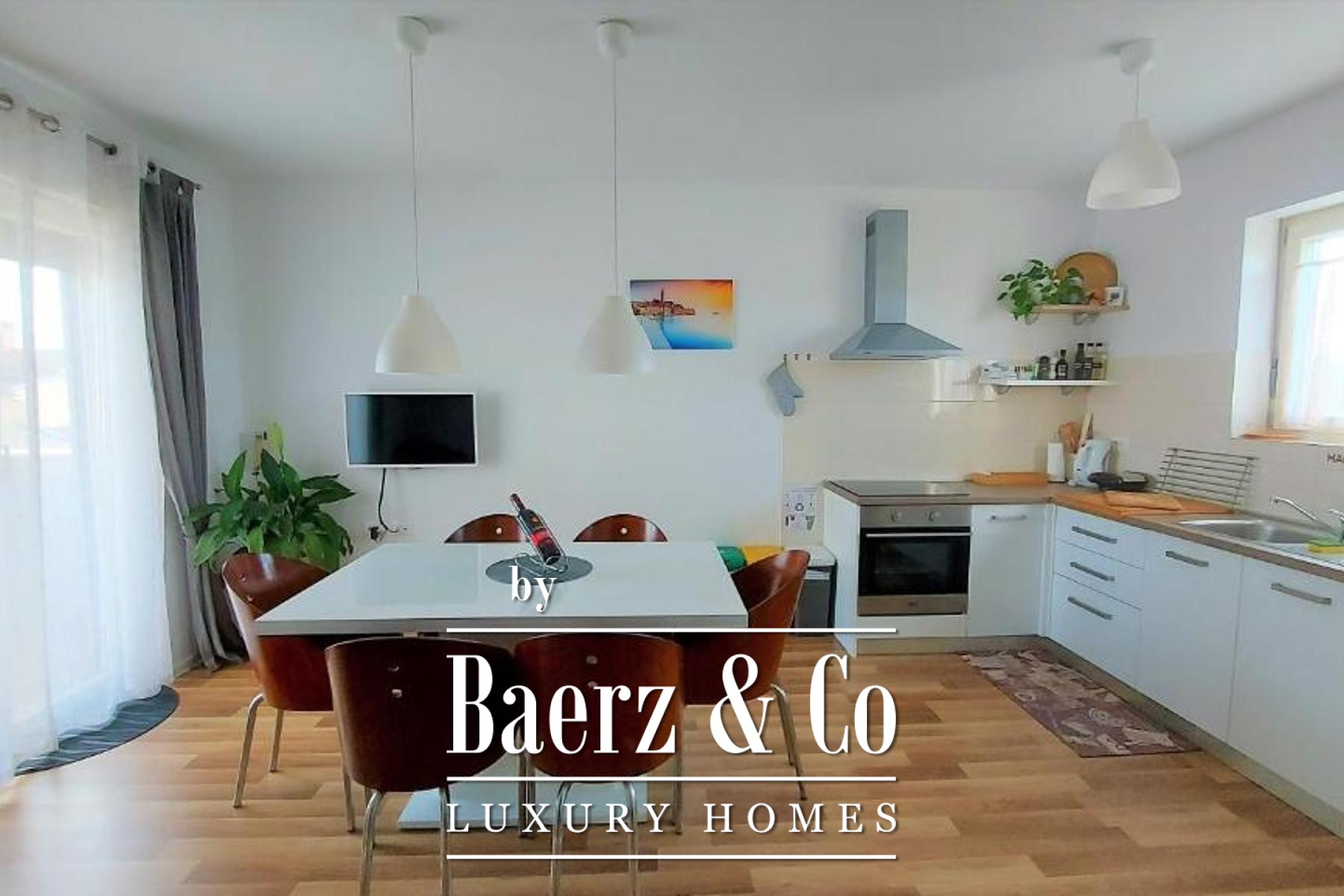 Material comfort is ensured through carefully implemented climate control, underfloor heating in bathrooms, and individual utilities for each apartment. Outdoors, the 818 m² plot is enclosed by lush vegetation and features a communal pool, a summer kitchen for alfresco dining, a sun deck, and an automatically irrigated garden. Four dedicated parking spaces and video surveillance maintain ease and security. This is a versatile opportunity for those seeking quality in Bale, with proven potential for both long-term residence and investment.
