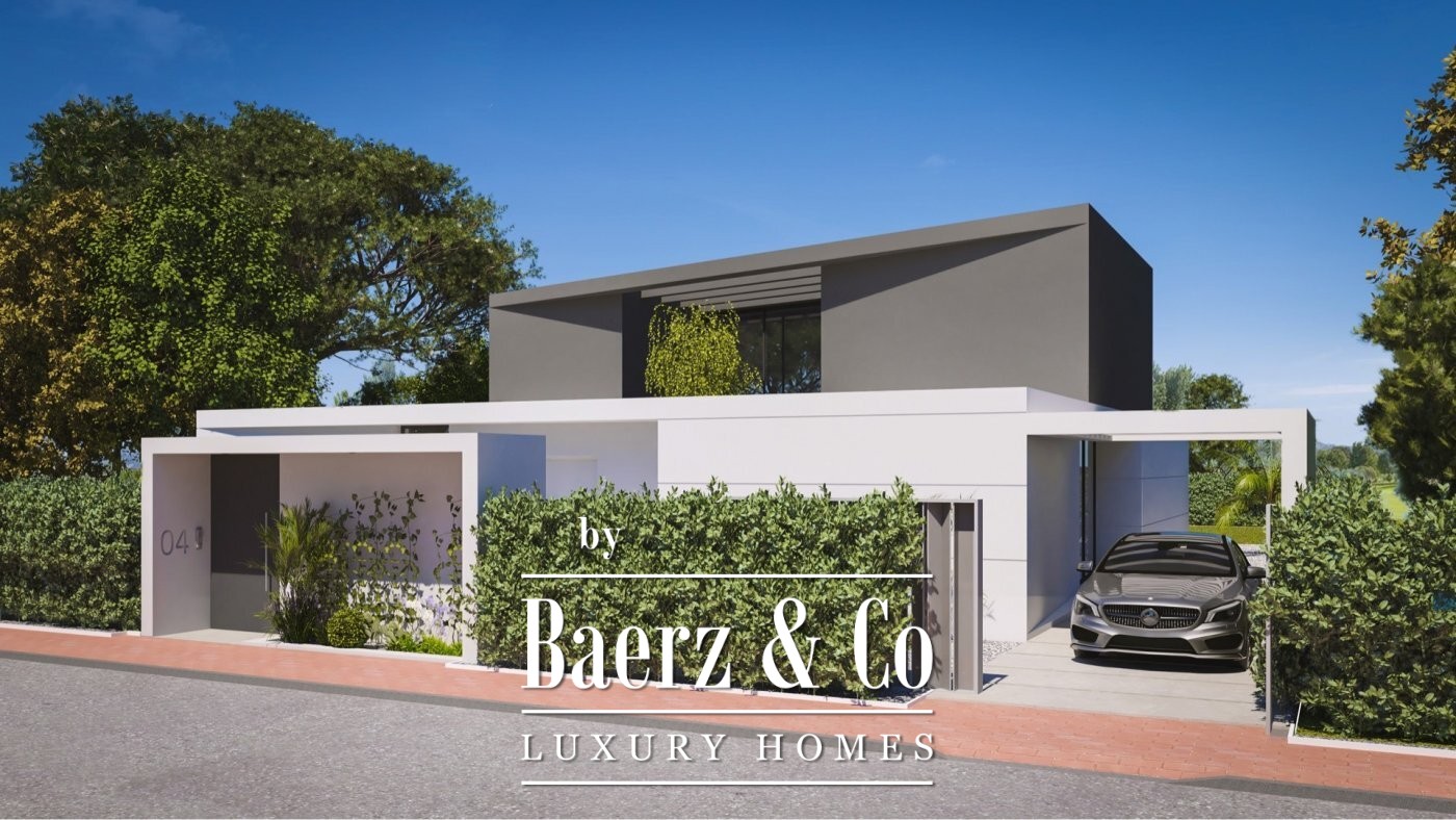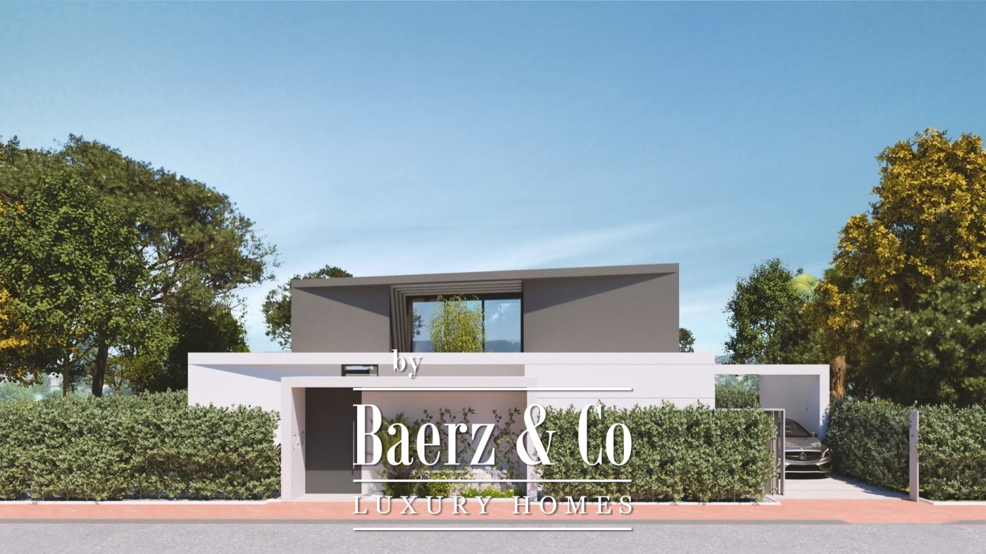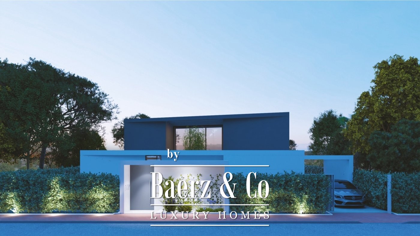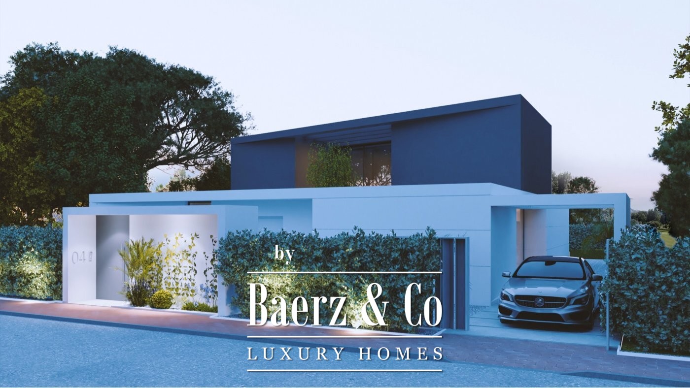 The villa is arranged over two floors and provides four bedrooms and four bathrooms, each suite with built-in wardrobes and access to private terraces. The open kitchen and living area establishes a calm, inviting central space. From here, direct access to the garden and pool invites private leisure or evenings with friends.