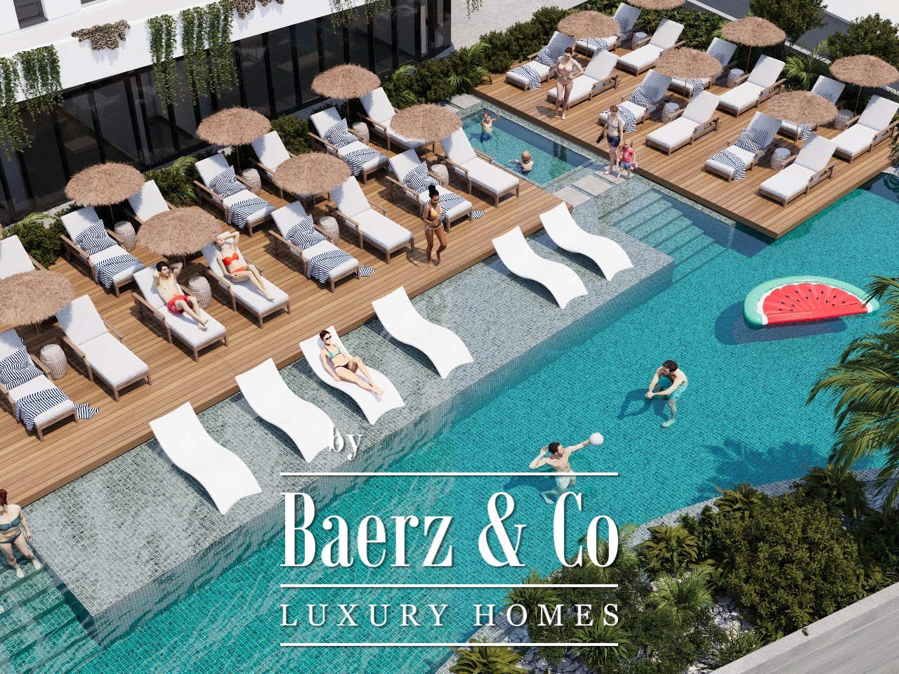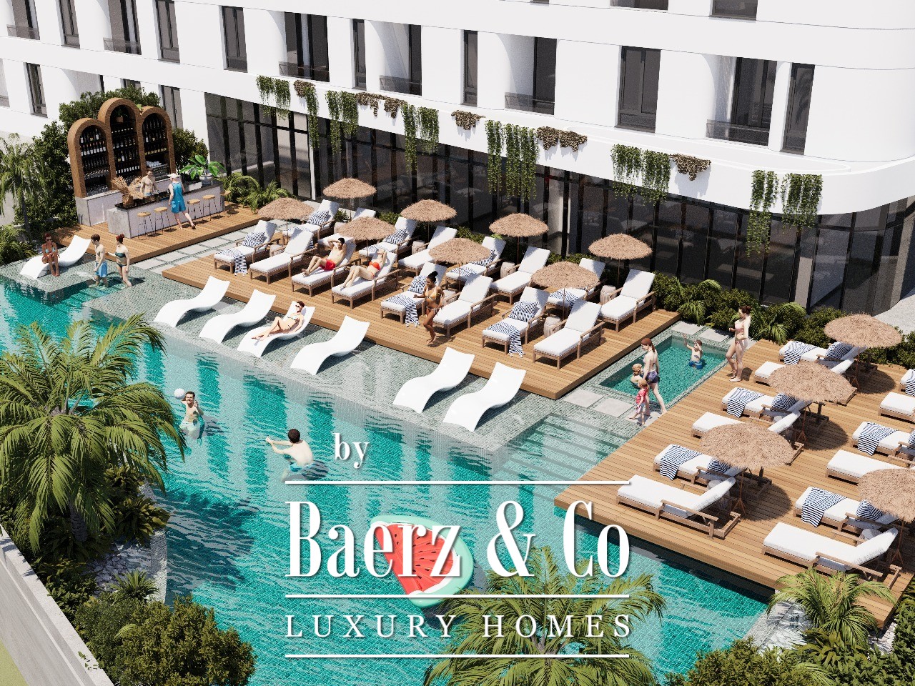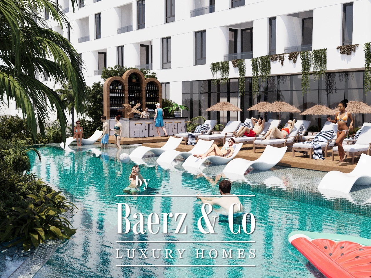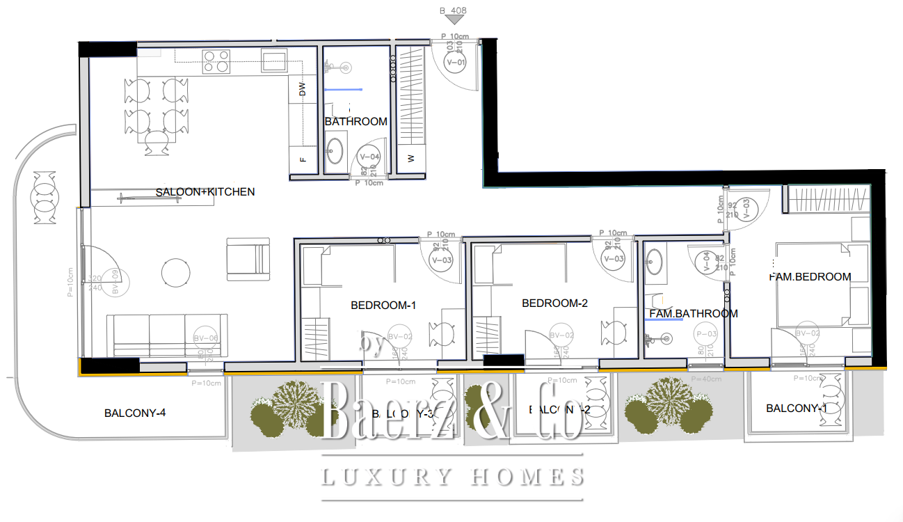 The building has 10 floors, while the apartment is on the 4th floor. This project will include an outdoor pool, spa center and a gym. The building is connected by an asphalt road to the main road. This project will be finished in 2027.