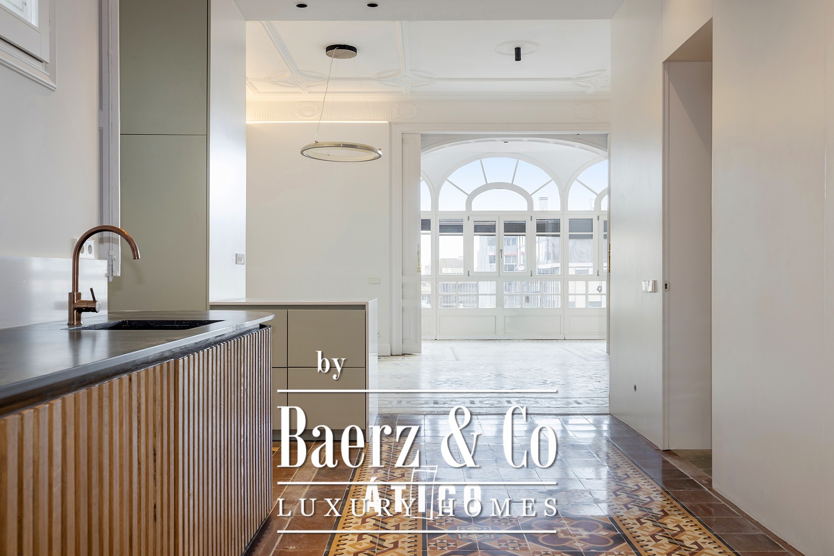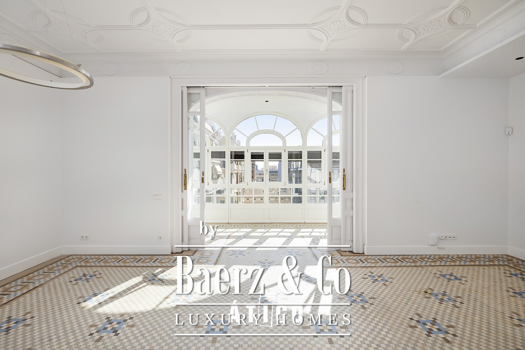 Set in a sought-after location near La Pedrera, La Diagonal and Passeig de Gràcia, the apartment’s gallery extends over a classic Eixample courtyard, providing quiet and sunlit outlooks. Luxury apartment for sale in Barcelona, where timeless design meets city vibrancy, privacy and quality.