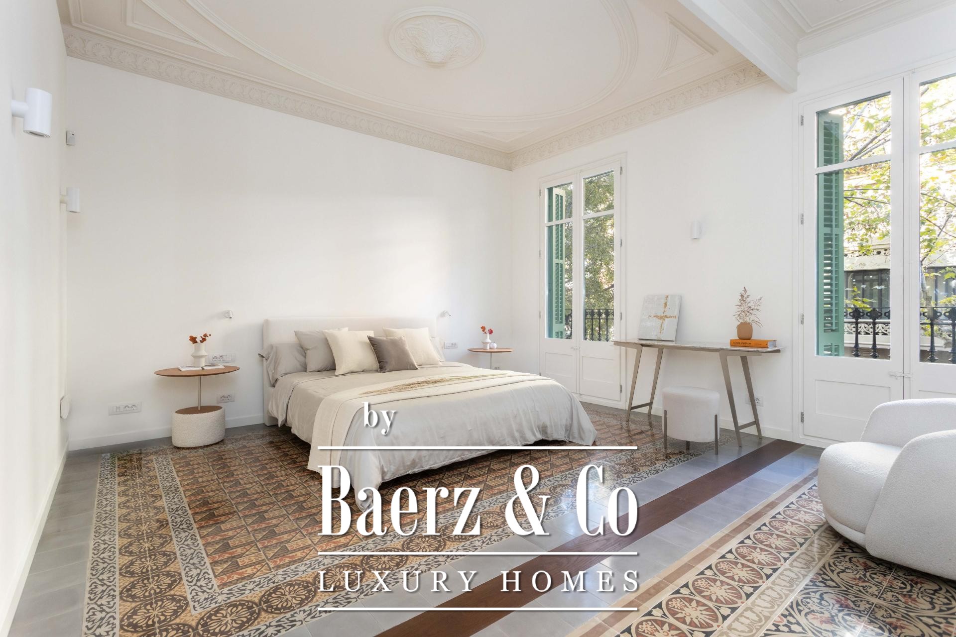 Apartment Barcelona presents a singular opportunity to inhabit the distinguished atmosphere of central Eixample, moments from Rambla de Catalunya and Passeig de Gràcia. This restored 220 m² residence combines heritage character with impeccable contemporary detail. In a revitalized 1900s regia building, the apartment’s flowing layout centers around a luminous living and dining suite opening directly to a 45 m² sunlit terrace. The kitchen, equipped with high-end appliances, offers both innovation and understated design. Three bedrooms include two spacious suites with en-suite baths and balconies, complemented by a third en-suite room and guest powder room. Throughout, oak parquet and ceramic stoneware flooring, restored decorative ceilings, and bespoke wardrobes reveal careful craftsmanship. Individually controlled air conditioning supplements comfort in every space, while a video intercom system adds security. Elevator access offers seamless convenience. Views capture the open rhythm of Eixample’s courtyards, placing high-end boutiques, celebrated cuisine, and excellent transport links just steps from the door. This apartment in Barcelona reflects a setting where timeless architecture aligns with contemporary urban tranquility.