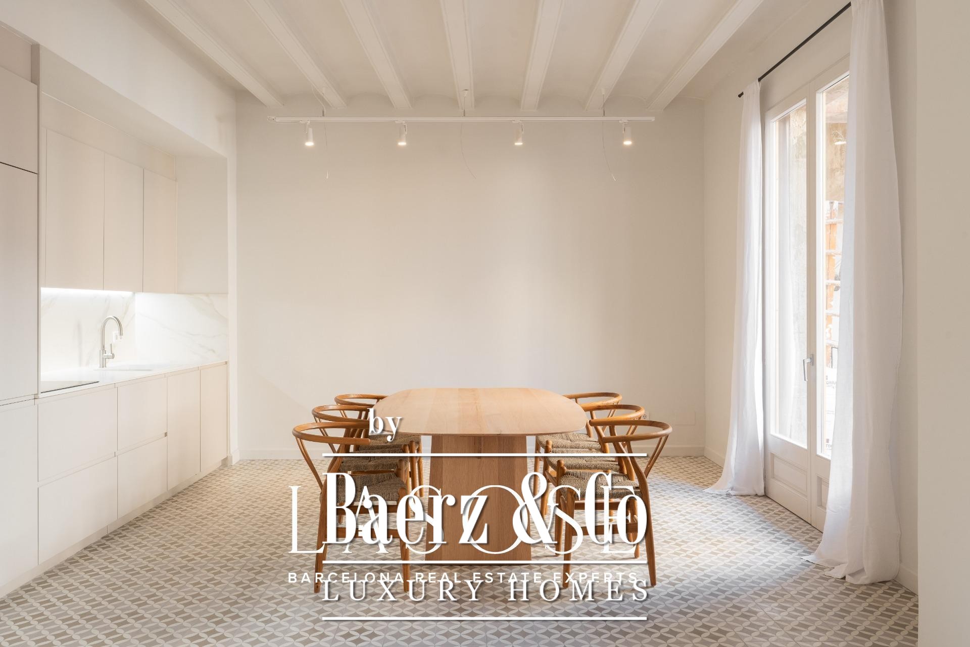 Stylish Renovated Home in the Heart of El Born – 133 m² Full of Charm and Modernity. . Discover this spectacular 133 m² apartment, fully renovated and located in the northern part of the iconic 'El Born district', near Eixample Dret. A unique opportunity to live in one of Barcelona’s most sought-after areas, where history and contemporary lifestyle blend seamlessly. . . Key Features: . - 2 spacious bedrooms with en-suite bathrooms, maximum privacy and comfort. . - Versatile third room, perfect as a bedroom, home office, or workspace. . - Bright and inviting living-dining area, opens to a modern open-concept kitchen with high-end integrated appliances. . - Exposed wooden beams and original details, blending classic charm with top-quality