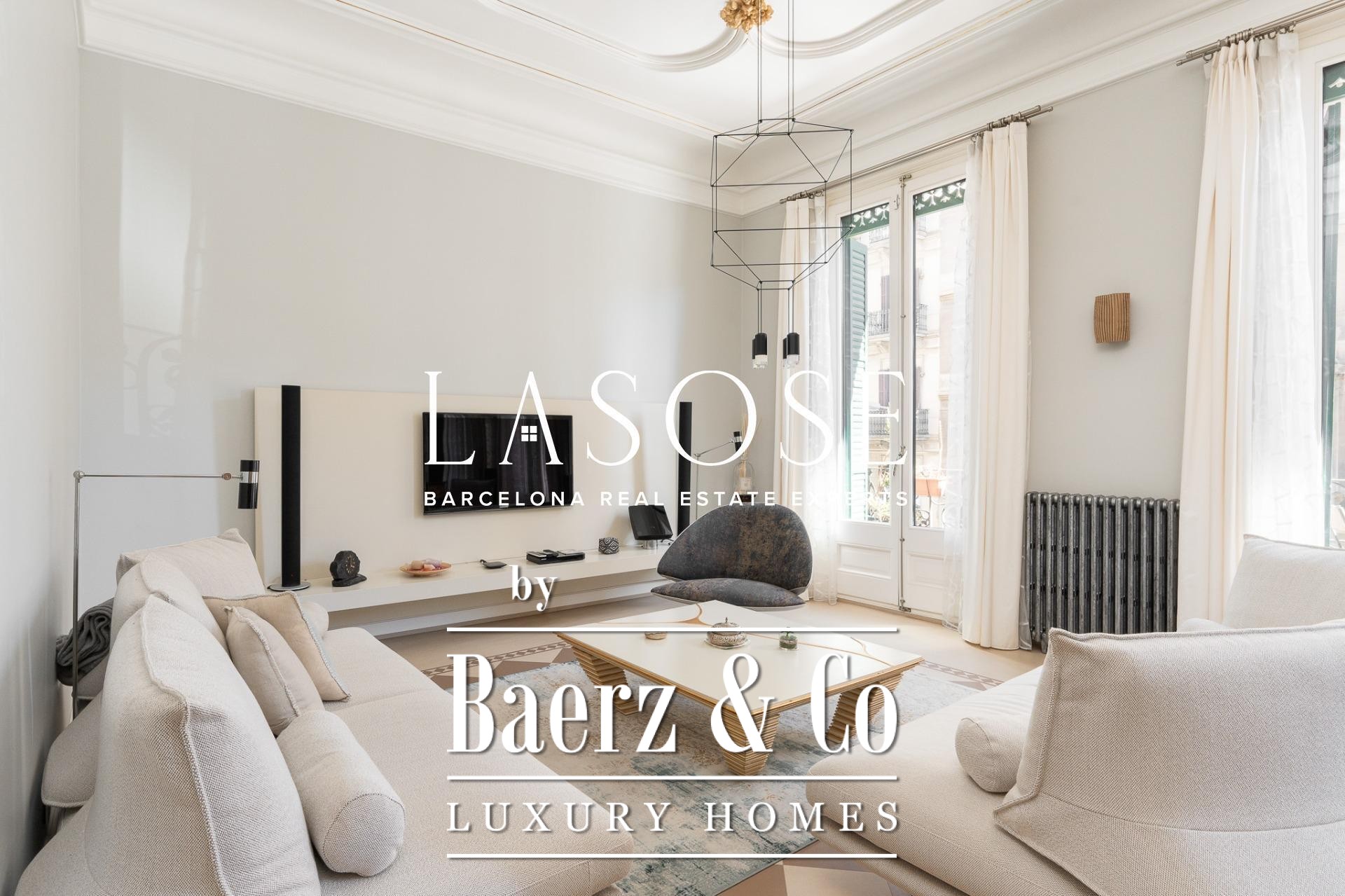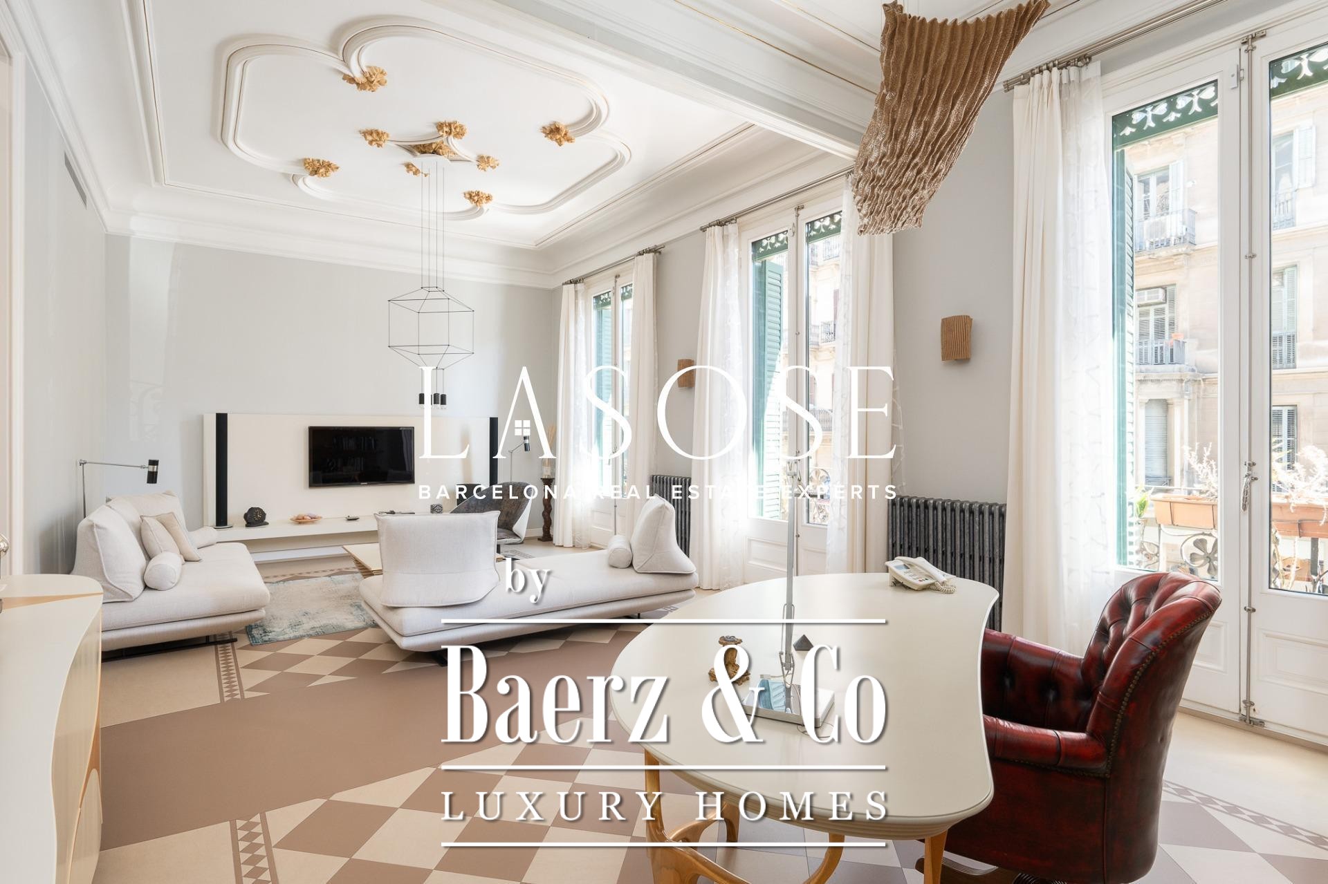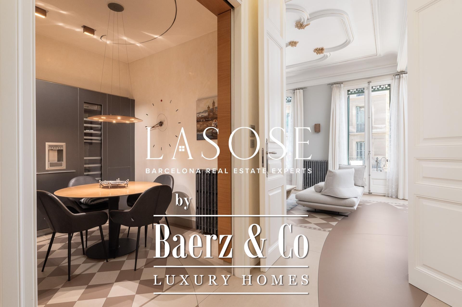 We present a unique property in Barcelona's prestigious neighbourhood, between the iconic Paseo de Gracia and Rambla Catalunya. This property, located in a regal building that was completely refurbished in 2017, is the ultimate expression of elegance, modernity and comfort. With a surface area of 170sqm livable and a balcony of 10sqm, the flat has been refurbished with the highest quality materials, taking care of every detail in its conception and finishes.. . On entering, a spacious entrance hall gives access to the day and night areas, providing an impeccable layout. The living-dining room, with its imposing high ceilings, large windows and exclusive marquetry floors, offers an unequalled atmosphere of spaciousness and luminosity. From here, there is access to the east-facing balcony, perfect for enjoying the sunlight in the morning.. . The kitchen, from the prestigious Bulthaup brand, is equipped with top-of-the-range Gaggenau appliances and has a practical separate utility room. Everything in this space has been designed to combine functionality with a modern and sophisticated