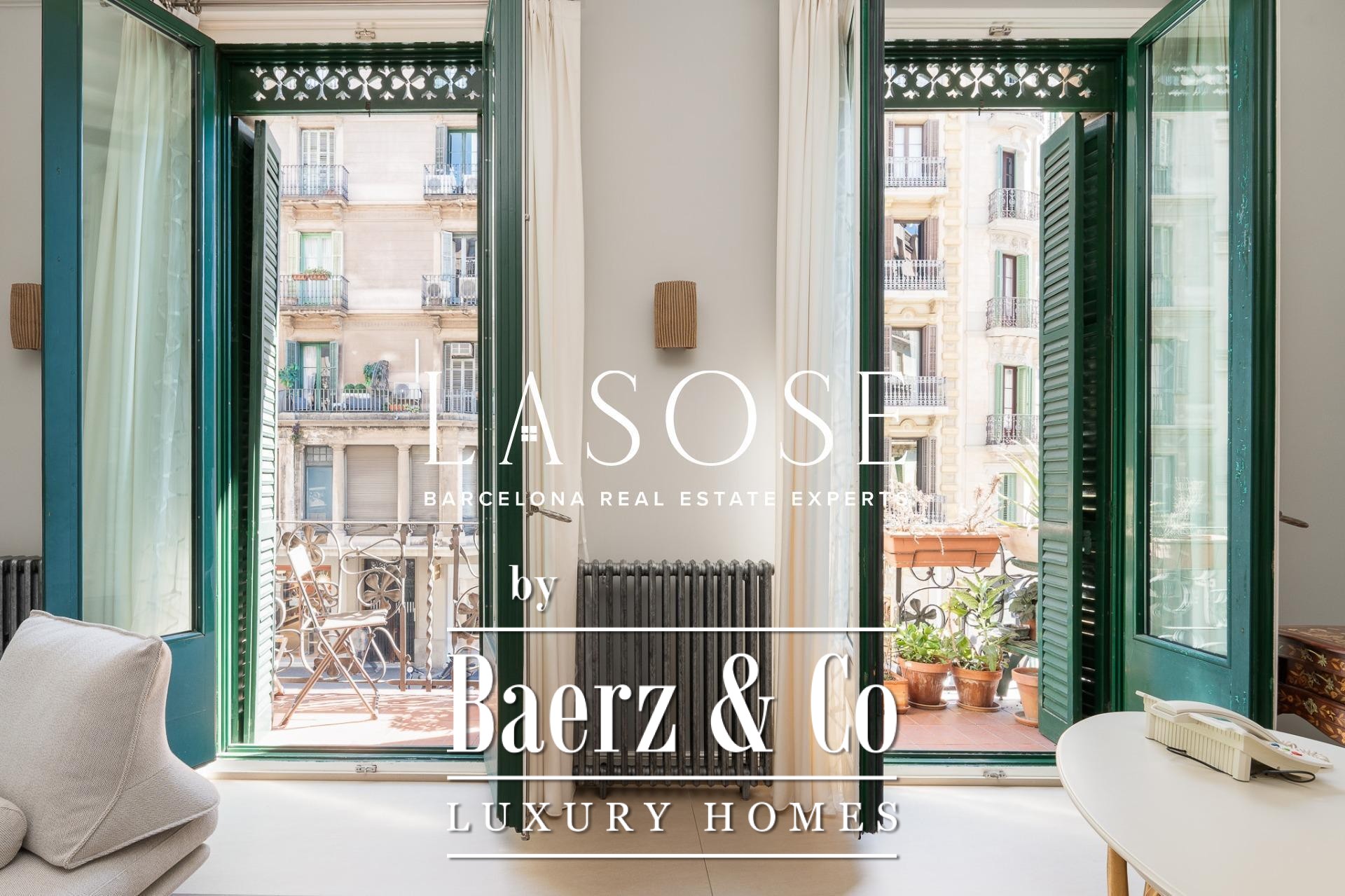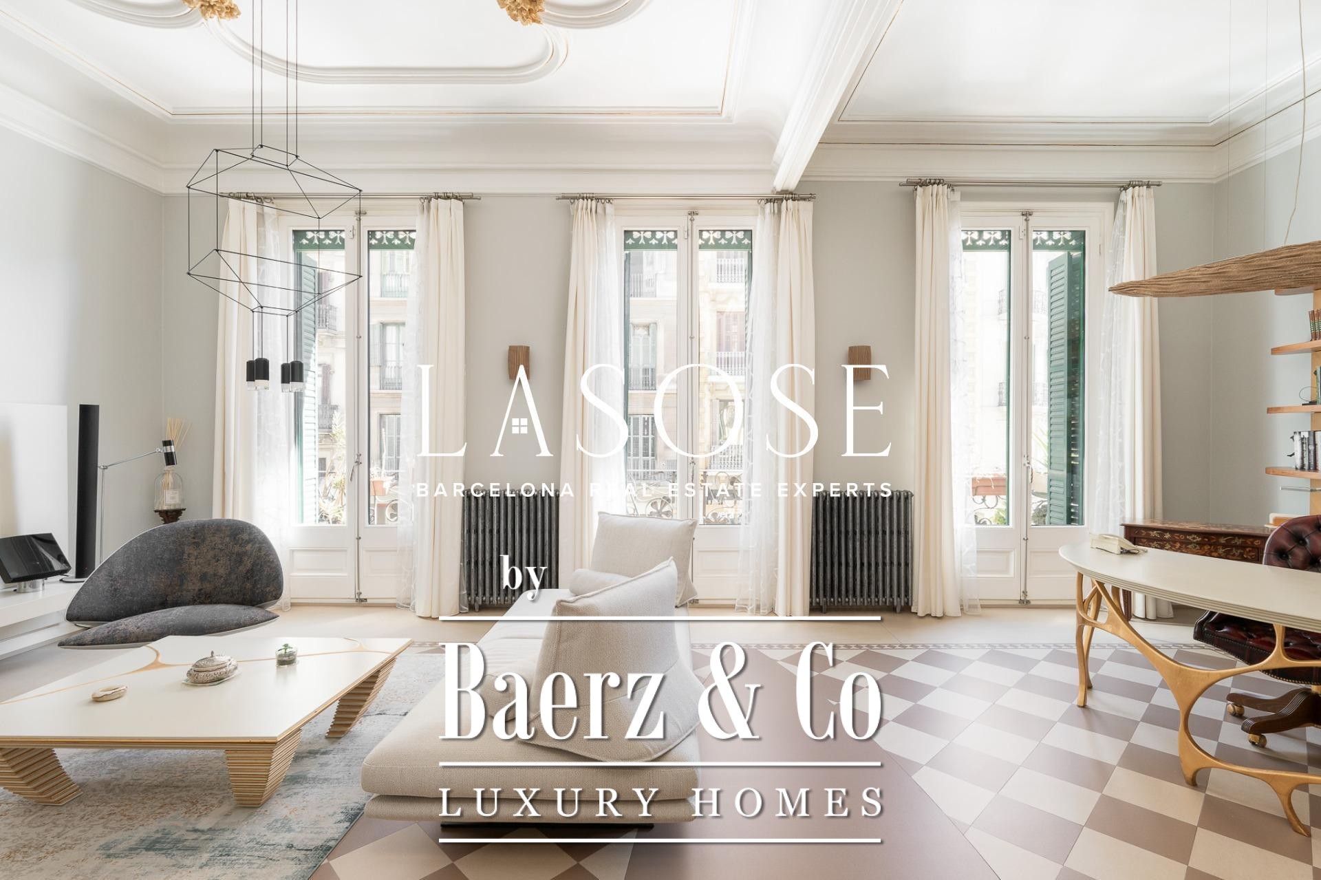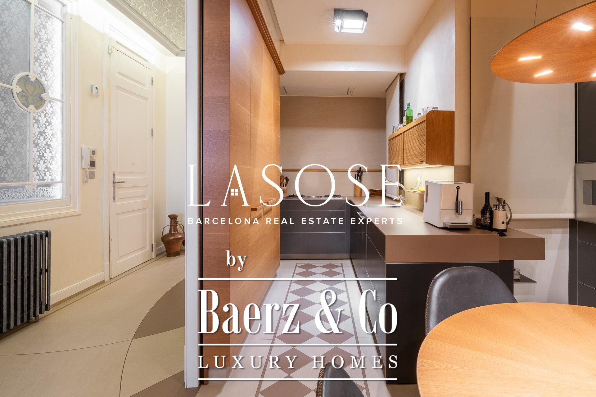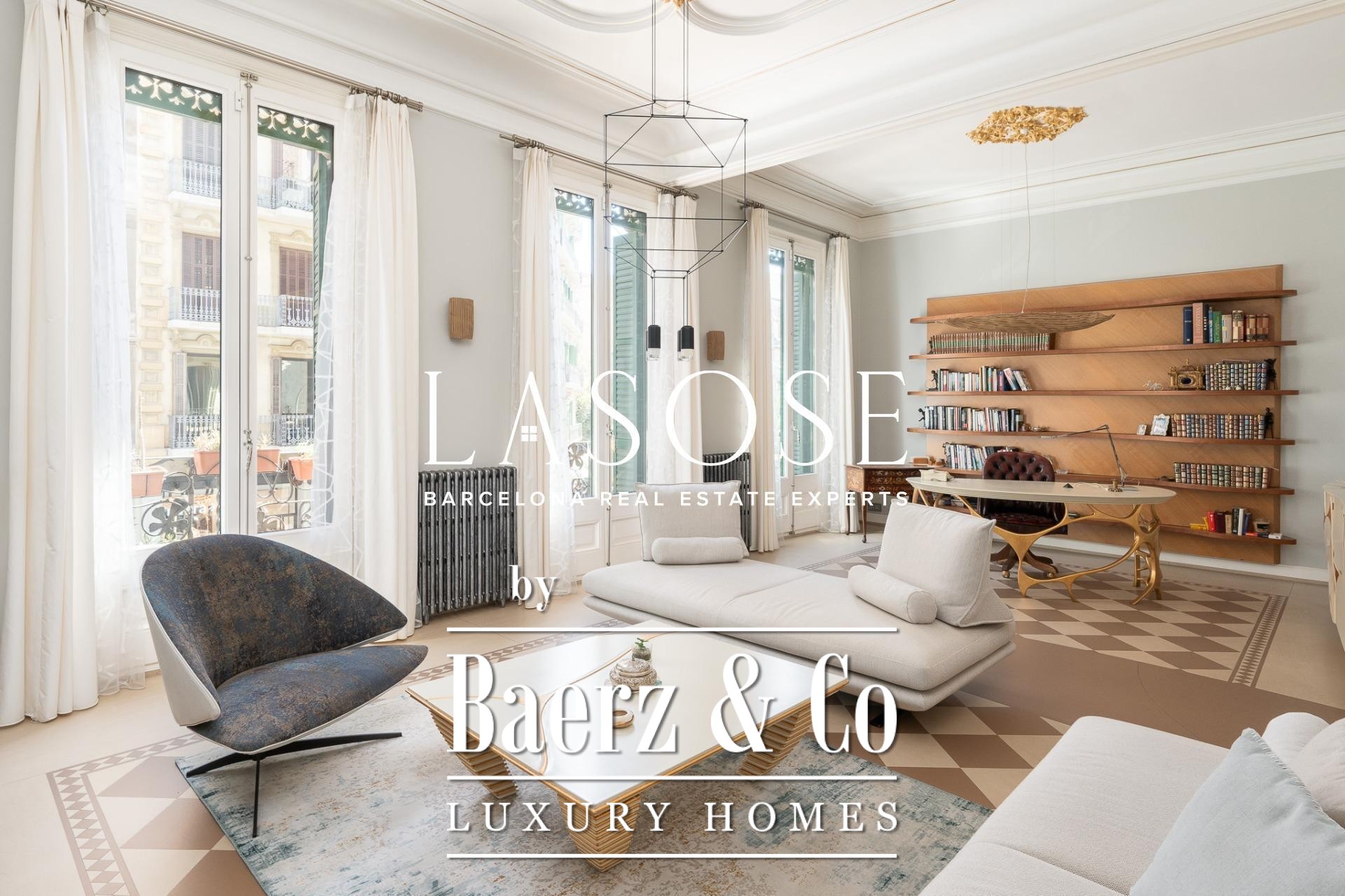 We present a unique property in Barcelona's prestigious neighbourhood, between the iconic Paseo de Gracia and Rambla Catalunya. This property, located in a regal building that was completely refurbished in 2017, is the ultimate expression of elegance, modernity and comfort. With a surface area of 170sqm livable and a balcony of 10sqm, the flat has been refurbished with the highest quality materials, taking care of every detail in its conception and finishes.. . On entering, a spacious entrance hall gives access to the day and night areas, providing an impeccable layout. The living-dining room, with its imposing high ceilings, large windows and exclusive marquetry floors, offers an unequalled atmosphere of spaciousness and luminosity. From here, there is access to the east-facing balcony, perfect for enjoying the sunlight in the morning.. . The kitchen, from the prestigious Bulthaup brand, is equipped with top-of-the-range Gaggenau appliances and has a practical separate utility room. Everything in this space has been designed to combine functionality with a modern and sophisticated
