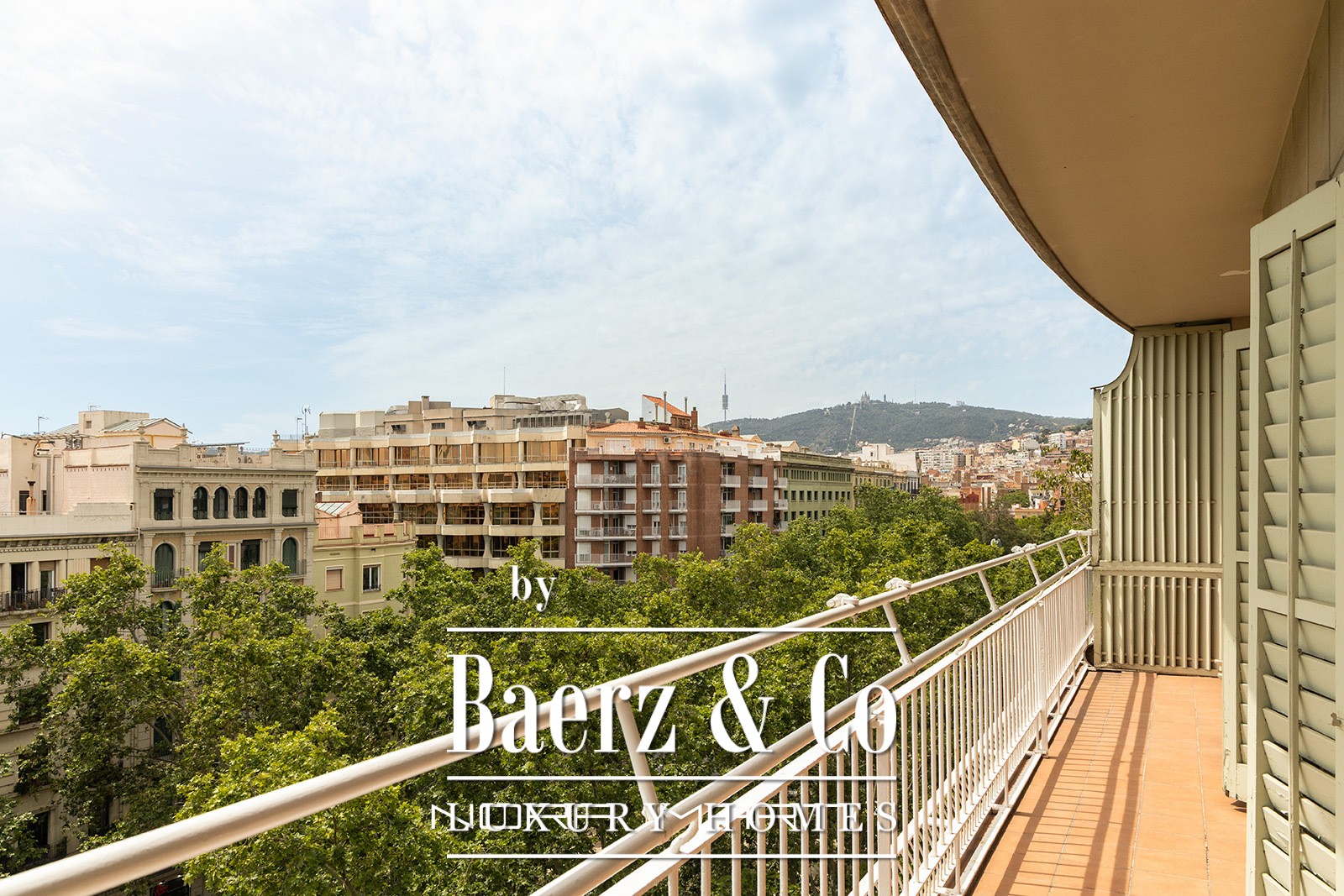 At the intersection of the vibrant Passeig de Sant Joan and the bohemian spirit of the Gràcia neighborhood, this charming 90 m² apartment rises, bathed in the warmth of the midday sun and enveloped in a luminous, calm atmosphere throughout the afternoon. Located on the sixth floor, this home offers a privileged view that caresses the horizon: from its charming 10 m² terrace, perfect for setting a small table for coffee, lunch, or toasting at sunset, the Mediterranean Sea and the majestic silhouette of Tibidabo can be seen in the distance.