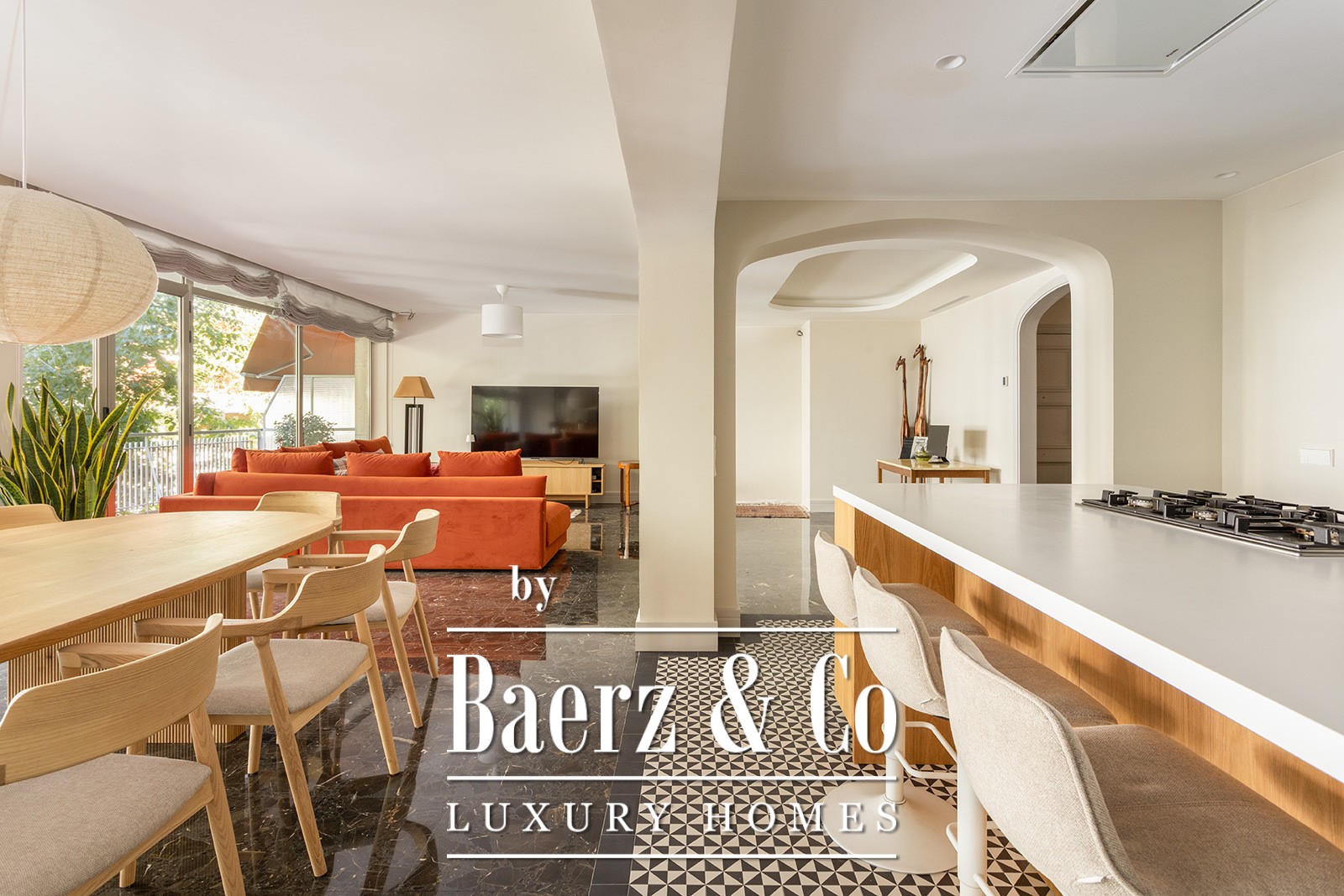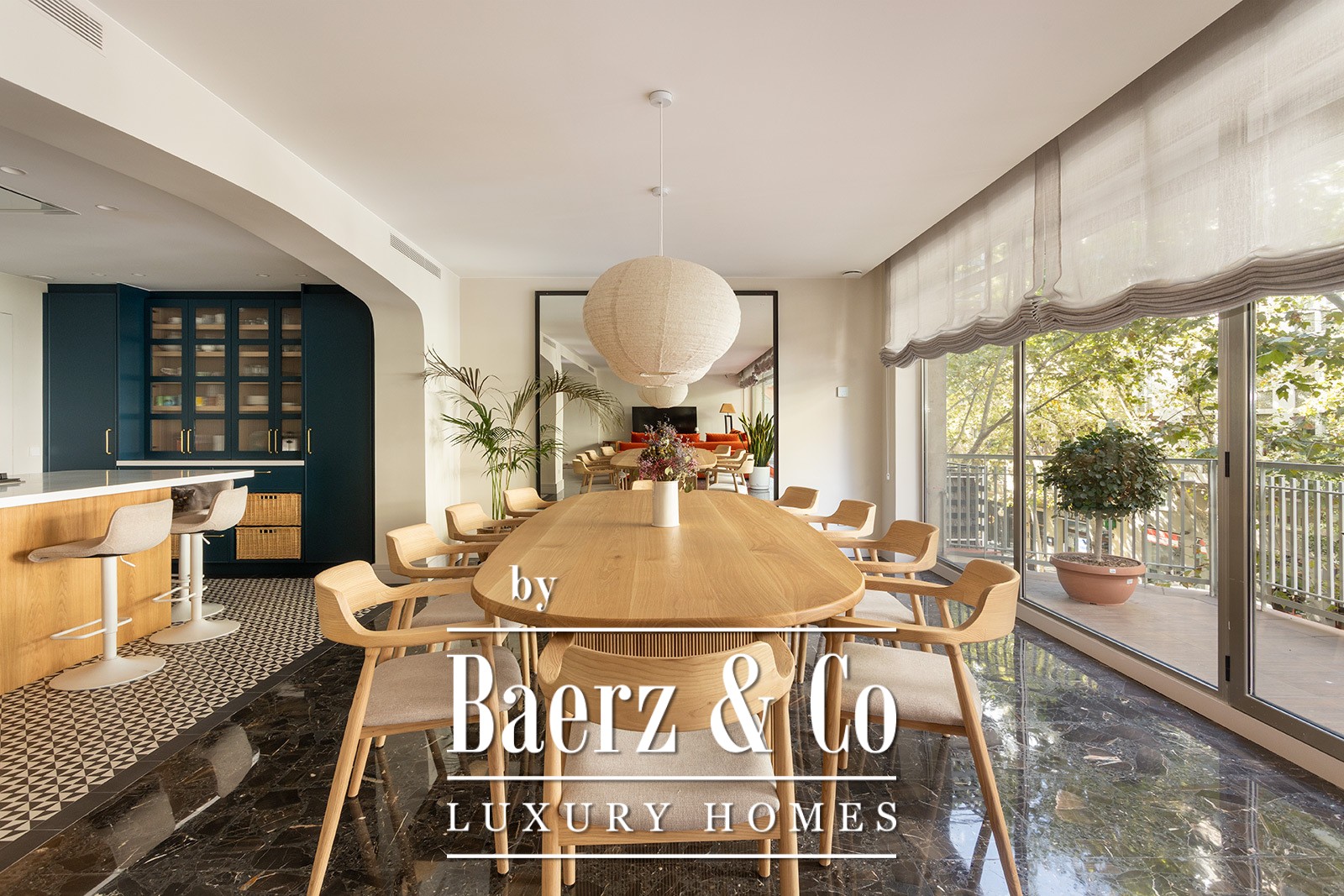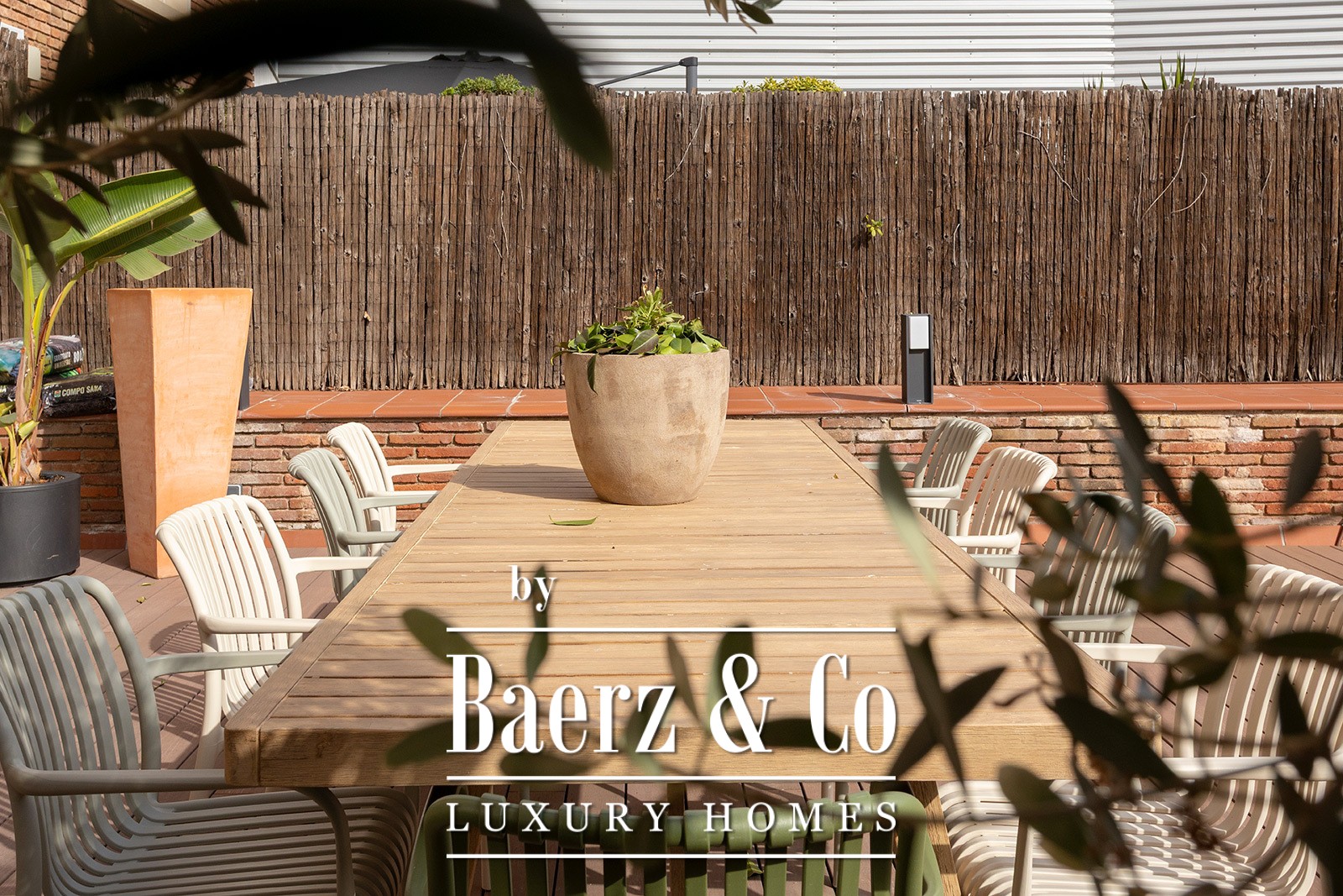 Exclusive luxury home with a constructed area of 250 m² and a spectacular east-facing terrace of 200 m², located in the prestigious Plaza Kennedy area, next to the Barcino Tennis Club. The property, ready to move into, features a spacious open-plan living and dining room integrated into a modern and elegant kitchen, a gallery, and four bedrooms: the master suite with a dressing room, private office, and en suite bathroom, and three versatile medium-sized bedrooms. It also