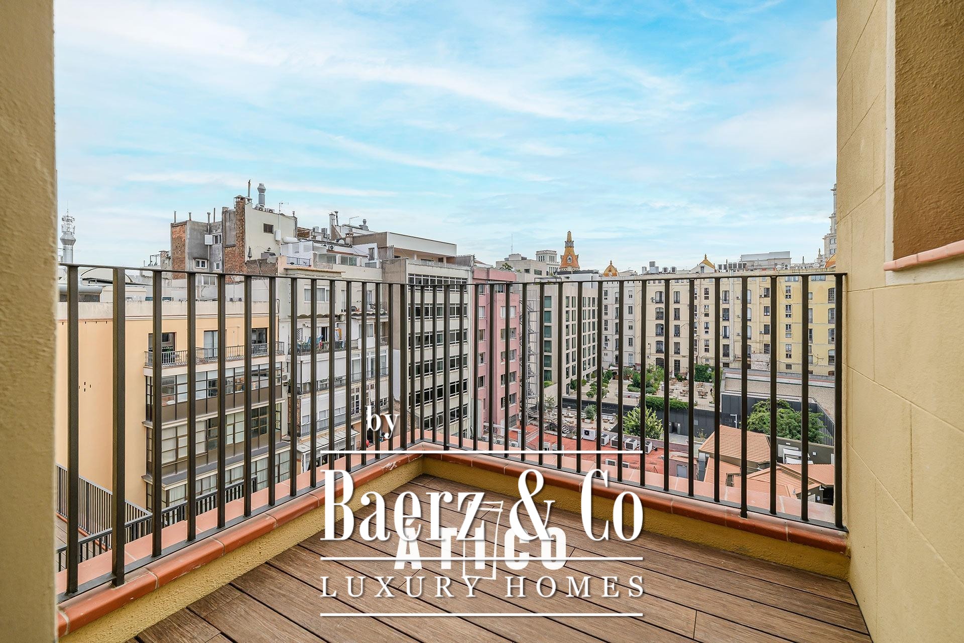 This duplex apartment Barcelona stands as a testament to refined urban living, offering 212.51 m² of newly renovated space across two distinct floors. Designed with flexibility in mind, its independent entrances provide options for privacy, work, or hospitality, allowing seamless transitions between day and night zones or dual-purpose living. Upon entry, a modern staircase defines the interior, lending the home a confident architectural rhythm and connecting both levels.