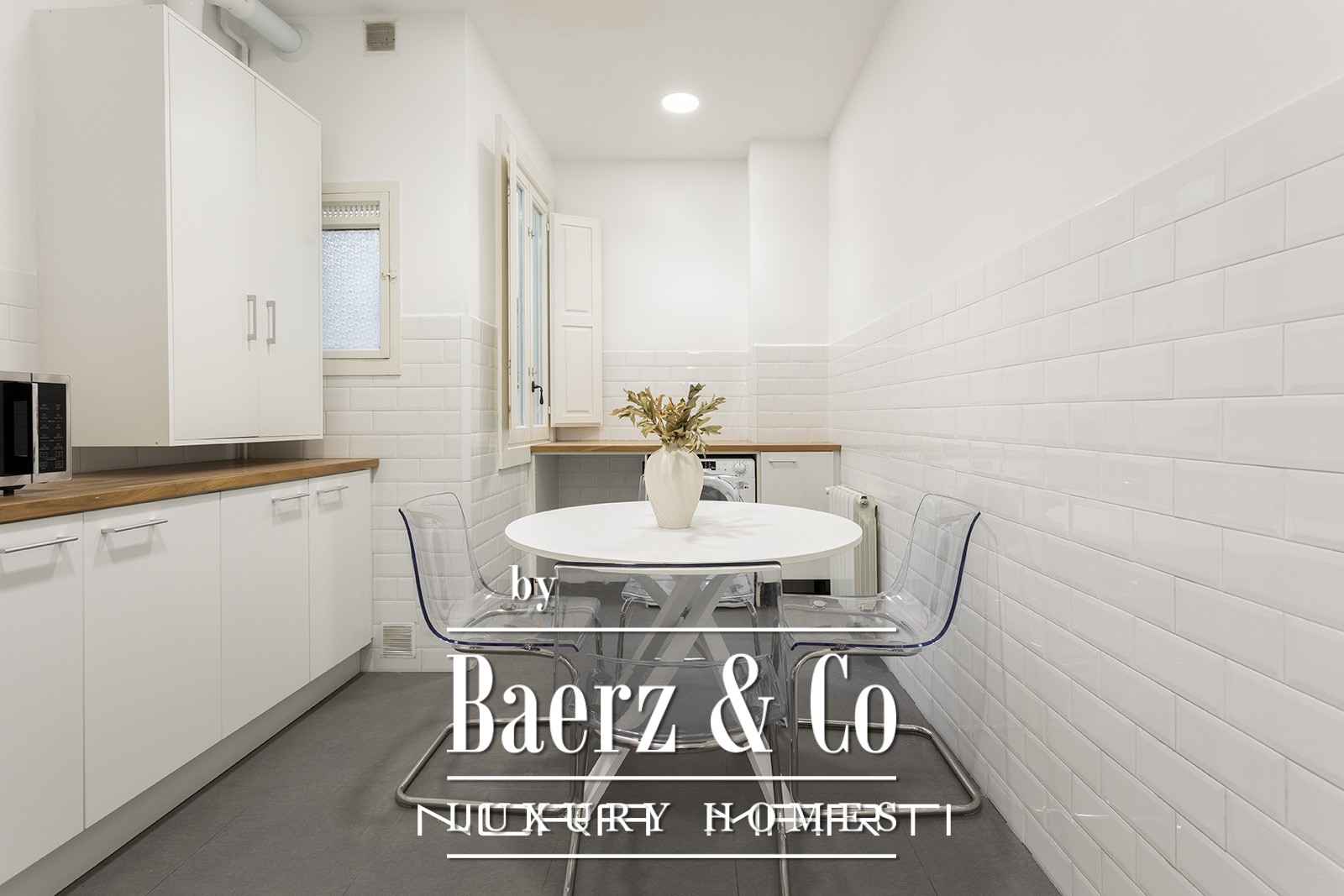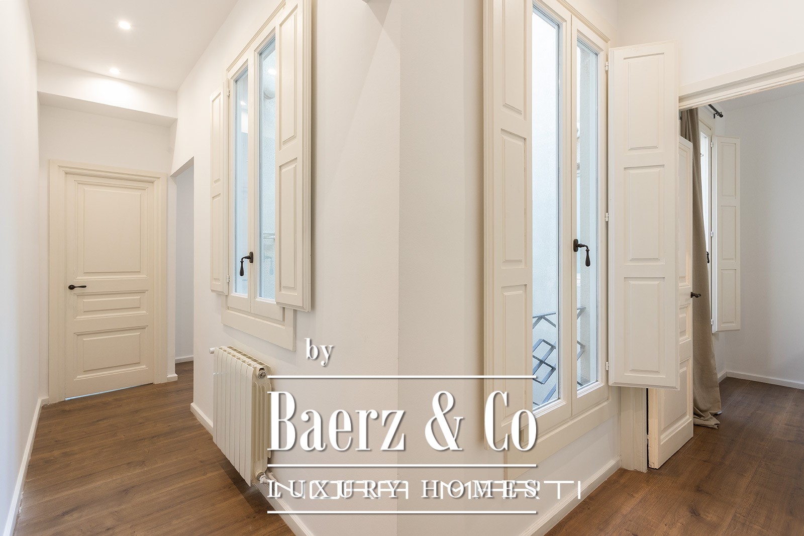 The 152 m² apartment has been extensively renovated, bringing contemporary sensibility to historic bones. Inside, refined modern furnishings lend clarity and cohesion, setting the tone for discreet urban living. The layout features three bedrooms, including one double and two singles, and two bathrooms, creating a balance of private and social spaces. The living room’s tall windows, characteristic of its era, saturate the interiors with natural light, enhanced by a favorable orientation and the warmth of parquet floors. A fully equipped kitchen with a breakfast area adds comfort to the daily rhythm.