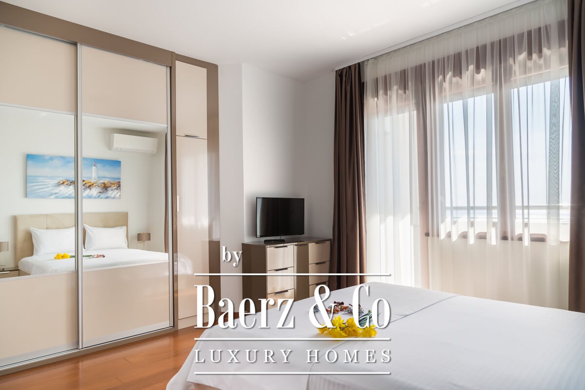 This apartment is completely furnished, with 3 bedrooms, 2 bathrooms, heating floor in the living room and in the bathrooms, terrace and AC in every room. It is located on the groundfloor in the new building and has the view on the sea. In this building there are more fully furnished apartments with 2 and 3 bedrooms from 90 to 110 m2. The building is located 500 meters from the sea and the beautiful Bečići beach, which was awarded the Gran prix "Golden Palm" as the most beautiful beach in Europe.