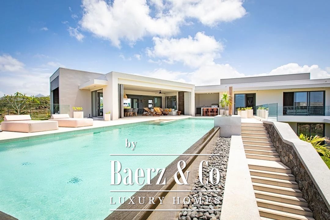 Baerz & Co presents for sale this sumptuous new 445 m² villa, located in the sought-after East Rive neighborhood, just steps from East Rive Park. Nestled on a 2,079 m² elevated plot, this upscale property boasts direct access to the lagoon and a private pontoon.