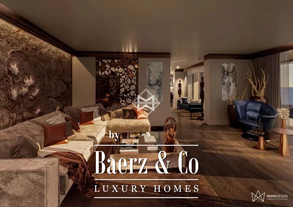 The ground floor offers 224 m2 of living space and opens onto the large loggia with multiple sliding windows. An indoor garage of 149m2 for 8 to 10 vehicles is accessible with a reinforced car lift.