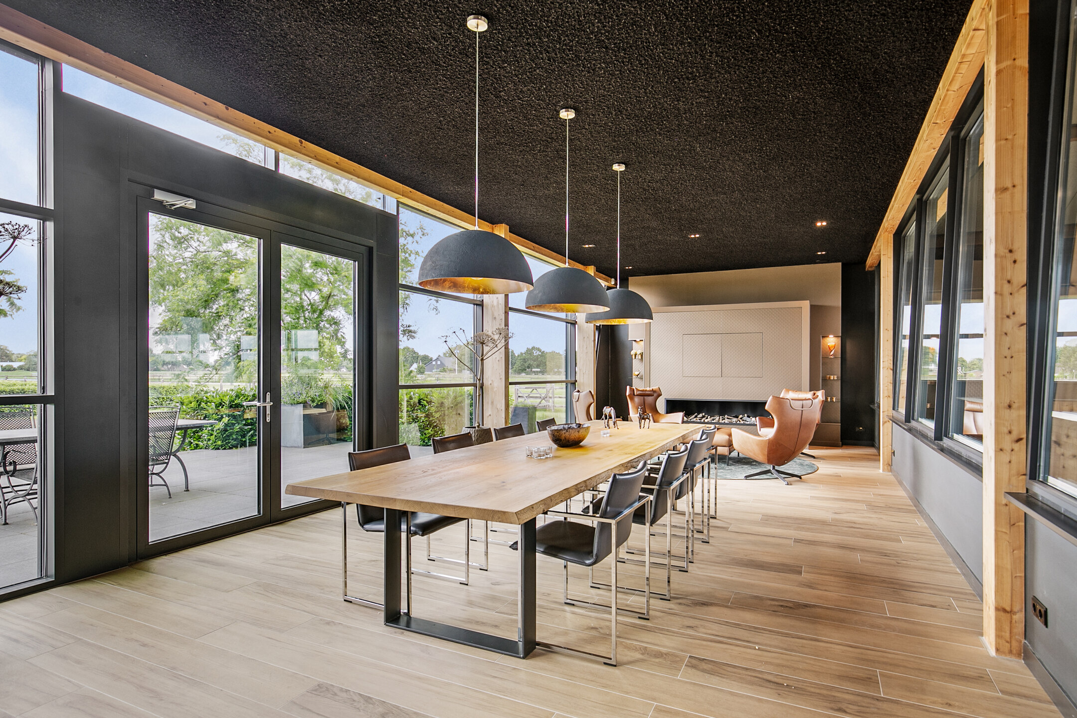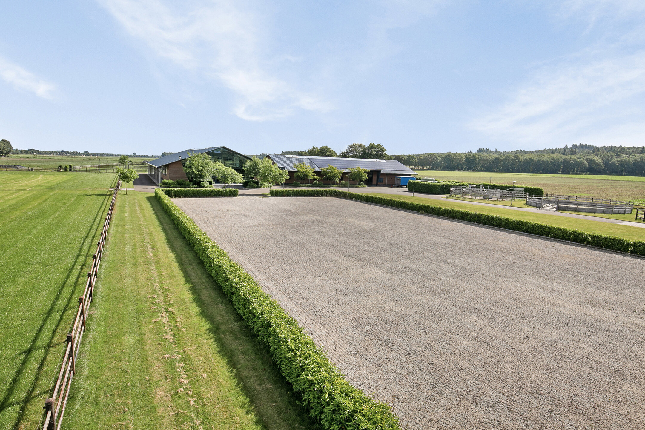 The luxurious reception area offers a beautiful view over the indoor arena through large windows, as well as over the outdoor area with the outdoor arena, lunging circle, horse walker and paddocks. A complete overview! The reception area is accessible from the outdoor arena from the elevated terrace and equipped with a tiled floor with underfloor heating and furnished with a complete bar and a gas fireplace. The bar is equipped with a sink, a dishwasher, coffee machine, combination oven/microwave and a wine fridge. The large exterior windows have electrically operated screens and the acoustic ceiling has recessed lighting. From the reception area, there is direct access to the riding hall with indoor arena. The arena measures approx. 20x40 metres and is fitted with fine wooden rafters and a hardwood arena surround. This arena edge fence can be opened automatically from the stable area, giving direct access to the arena. There is an Equisport ebb and flow floor. The entire end wall consists of imposing windows and the side wall also has plenty of windows. The insulated roof is also equipped with a wide skylight in the ridge. A portal connects the indoor arena and reception area with a toilet room and the multi-purpose room on the 1st floor. The porch has a tiled floor, stucco walls and a stucco ceiling. There is a fixed sink with a cabinet and a storage cupboard offers plenty of storage space. The fully tiled toilet room is equipped with a floating toilet and urinal. The multi-purpose room on the first floor is finished with a PVC floor, stucco walls and a ceiling of insulation panels. Here, too, room-high windows in the rear façade offer a nice view of the outdoor arena, paddocks and other facilities. Next to the indoor arena is a spacious technical room. This is where the sprinkler system, the ebb and flow system, the central heating combi boilers, the unit for the solar panels and the floor heating, as well as the meter cupboard are located.The beautifully finished stable area exudes ambiance and warmth due to the frequent use of wood. The stable is equipped with 12 horse stalls, 2 washing rooms, a tack room, canteen, a laundry room and a toilet room. At the rear of the stable area is a large storage and stabling area, where there are also 2 rearing stalls and a fixed staircase provides access to the attic and mezzanine above the stalls. The horse boxes (approx. 3.50x3.50 m) are fitted with partly hardwood, partly stainless steel and partly powder-coated and lowered front walls with hinged doors. All stalls have an outside hatch. The washing areas are finished with a rubber floor and fully tiled walls. There is also a solarium.The stable area has a floor of baked bricks, wooden rafters and an insulated roof. A large skylight has been installed in the ridge of the roof. Large, translucent roller doors provide access to the surrounding yard. The tack room is furnished with custom-made cupboards, saddle supports and a sink. The room is finished with a tiled floor and panelled walls. The canteen has a tiled floor, wallpapered walls and a wooden beam ceiling. The canteen has kitchen equipment, which is equipped with a sink, fridge and dishwasher. The partly tiled toilet room is equipped with a floating toilet and a hand basin. The laundry room has connections for washing equipment and the installation of the solar panels. The room is finished with a tiled floor. The storage and stabling area is accessible from the stable area through sliding doors and also offers space for 2 rearing stables. A fixed staircase provides access to the attic space and mezzanine on the 1st floor. The rearing stables are equipped with partly hardwood, partly galvanised front and partition walls. The loft area is equipped with fixed cupboards with plenty of storage space and the flybuster system. The attic is finished with a wooden floor.