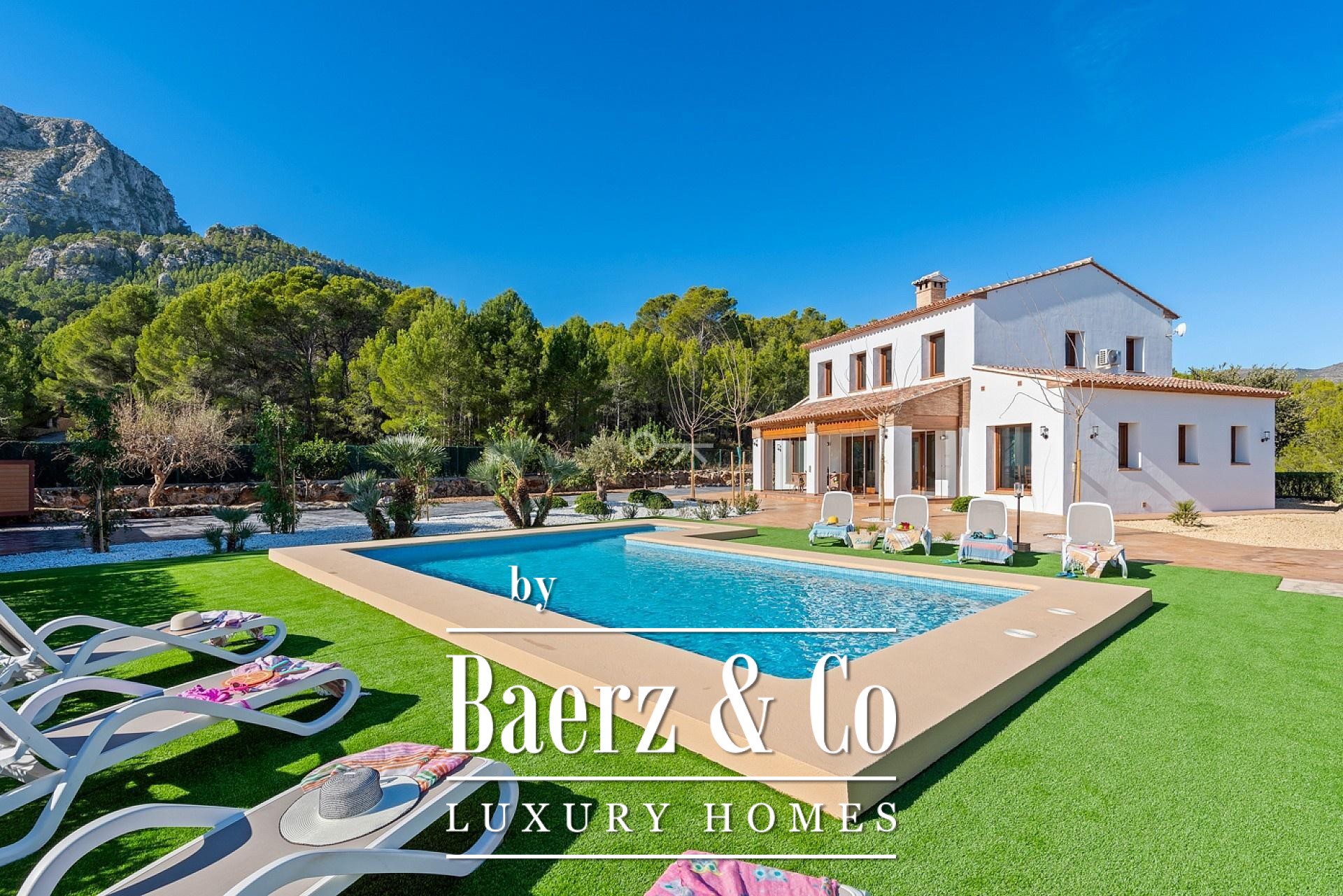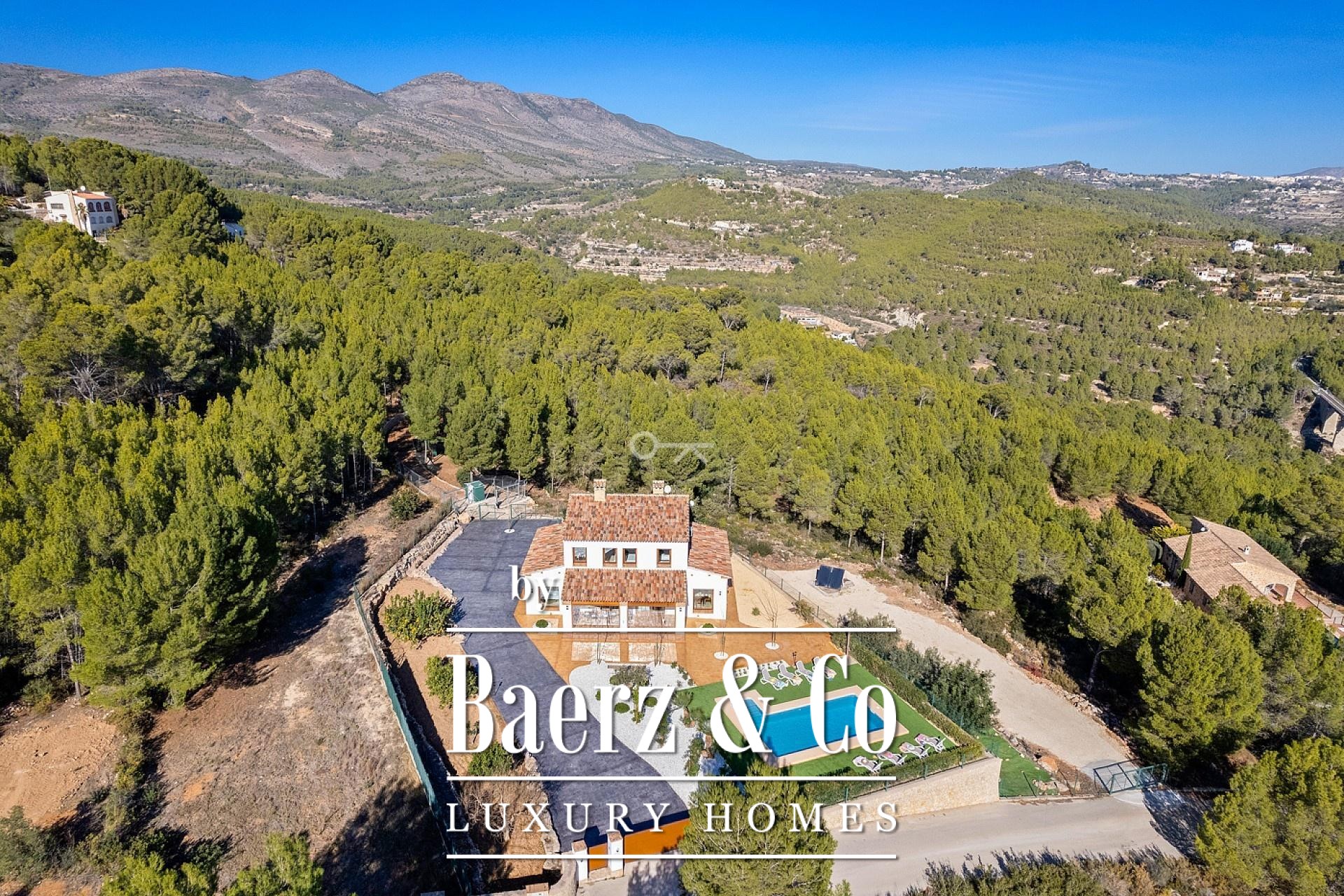 Villa Benissa with panoramic sea and mountain views is set within the Olta region, balancing exceptional privacy and expansive horizons. This villa occupies a 10,030 m² plot, with 1,300 m² of flat, fenced grounds, while the remaining terraces invite the cultivation of fruit trees or equestrian pursuits. Forests and hiking trails surround the estate, celebrating a quiet pace of Mediterranean life within easy reach of Calpe and Playa de Arenal.