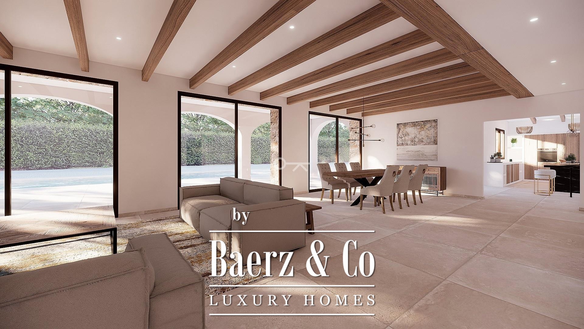 Villa Benissa presents Mediterranean architecture balanced between rustic tradition and a refined modern line. This villa in Benissa offers 425 m² of living space across four bedrooms and four bathrooms, each room oriented to natural flow and light. The property is anchored in a 10,000 m² plot curated with native palms, olive trees and vineyards, reflecting a deep sense of place in Costa Blanca. Outside, a swimming pool is framed by established gardens, designed for both privacy and serenity. The atmosphere is quietly luxurious, the interior materials grounded in authentic textures that echo the surrounding landscape. Here, daily life unfolds at an unhurried rhythm, shaped by the climate and the cultivated grounds. Villa Benissa allows one to experience the essence of Mediterranean living, with space designed for connection and retreat. This villa for sale in Benissa is suited to those who appreciate architectural integrity and the interplay of landscape and home.