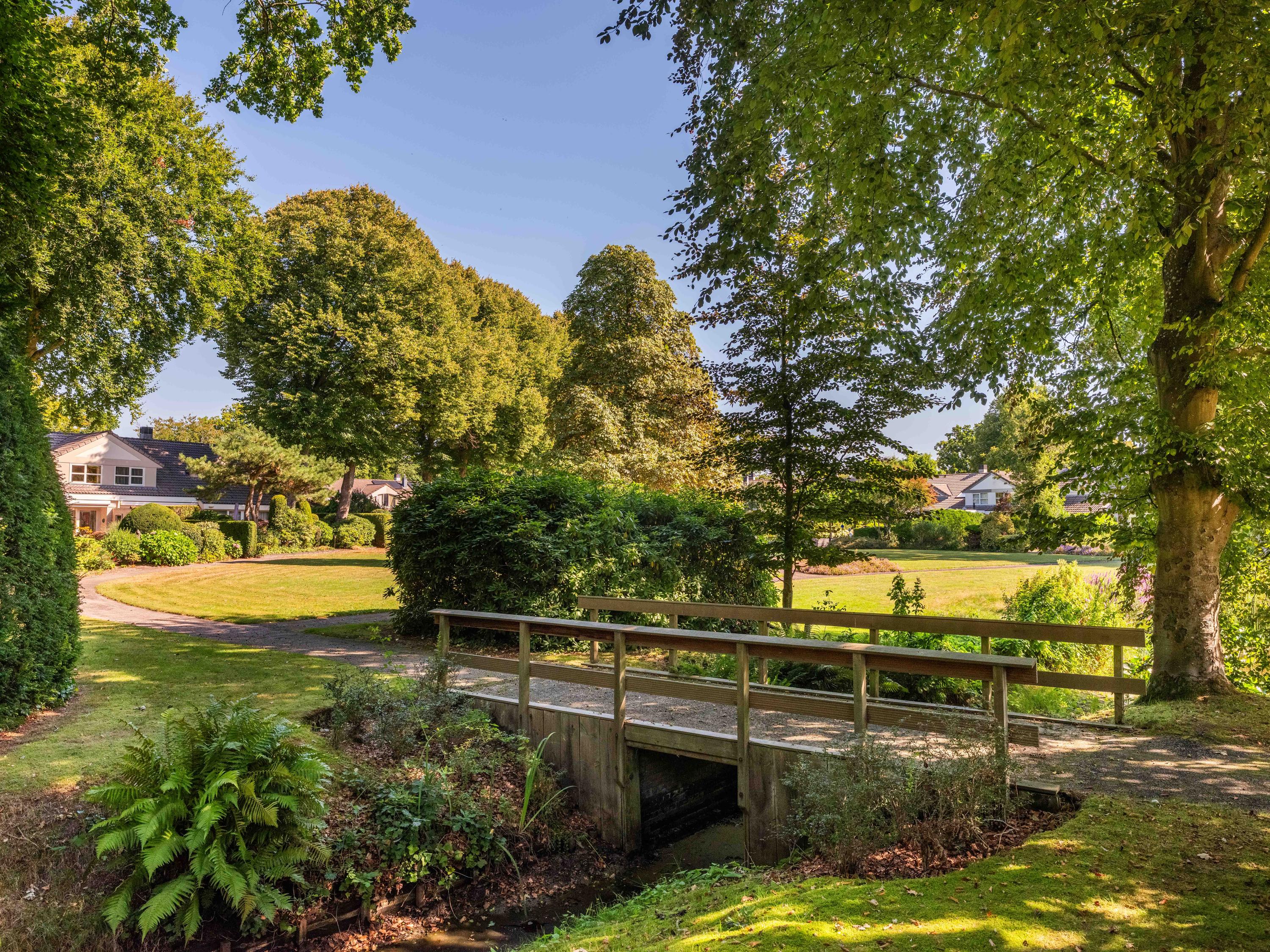 Through the large sliding doors, you step into the sunny, sheltered backyard, a wonderful place to enjoy peace and privacy, with a terrace and a view of the pond. The beautifully landscaped, sunny garden is an oasis of peace and privacy. The terrace borders the exclusive, communal park with ponds – a unique place where you can enjoy nature to the fullest. The park is exclusively accessible to local residents.