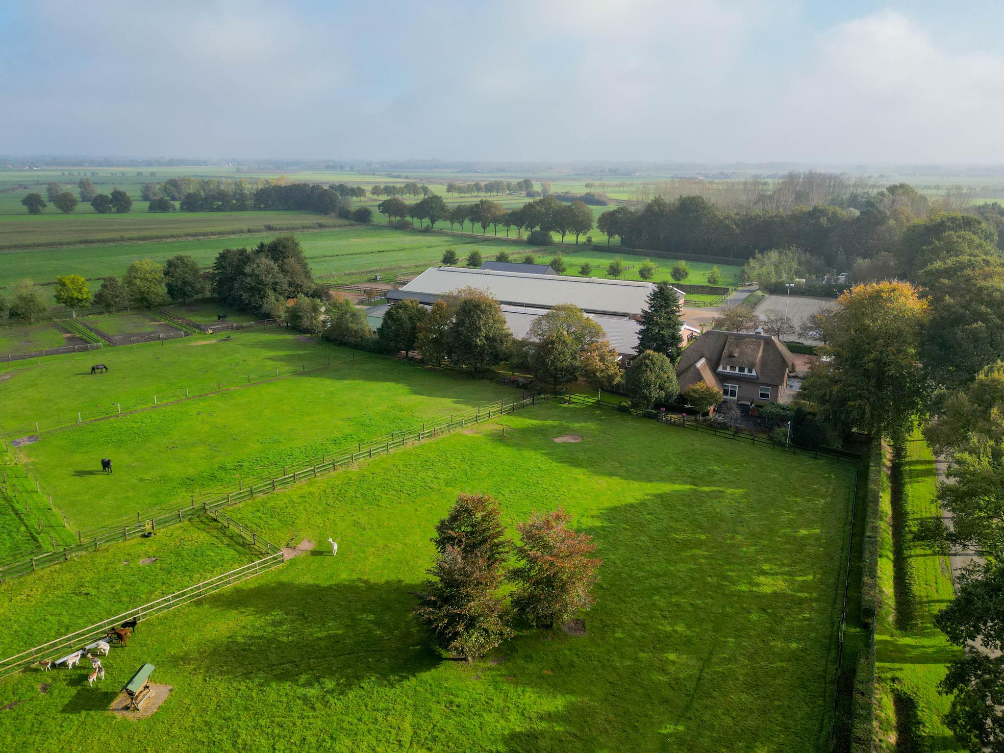 The stable section on the left side is equipped with 16 horse boxes. These stalls have partly hardwood / partly powder-coated and partly galvanised front walls. The partitions are of masonry and partly occupied. The doors the front walls are hinged. 2 stalls are equipped with partly plastic / partly galvanised front and partition walls and sliding doors. There is also 1 pony stall. There are 2 washing areas and a solarium. The washing areas are equipped with hot and cold water supply. From the stable area, there is access to a hall where the 2 saddle rooms are located. From this hall, there is also access to the reception area and indoor arena. The spacious reception area is finished with a tiled floor, part masonry/part stucco walls and a system ceiling. There is a toilet block consisting of a toilet room, disabled toilet and a portal with 2 washbasins. There is also a complete kitchen. The kitchen is equipped with an oven, combination microwave oven, dishwasher, built-in coffee maker, sink and hob. n the reception area, the meter cupboard is located. This is where the central heating combi boiler is located. The room also has an alarm system. From the reception area, there are lovely views of the indoor arena. French doors provide access to the yard. The adjoining indoor arena (approx. 20mtr. x 60mtr.) is equipped with an ebb and flow floor and a hardwood arena surround (Horsmans). A skylight in the ridge and windows in the end wall provide natural light and ventilation. Furthermore, the arena is equipped with a mirror wall. A rolling door at the rear wall provides access to the yard. From the indoor arena, there is access to the stable area on the right. This stable area has 13 horse stalls. These stalls (approx. 4mtr. x 3mtr.) are fitted with partly powder-coated / partly galvanised and hinged doors. The stalls are also equipped with an exterior hatch. There is also a tack room, washing area and solarium here. From this stable area, there is access to a canteen. This canteen is finished with laminate flooring and a system ceiling. The canteen has a separate central heating boiler. French doors on the rear elevation provide access to the yard.