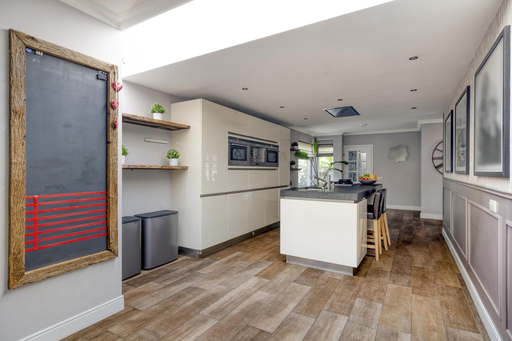 This modernized, detached home with driveway, carport, and garage is situated on a generous 445 m² plot. The ground floor has been extended across the entire rear of the property and features a bonus: a covered veranda of approx. 17 m² with a fireplace – the perfect spot to enjoy a drink by the fire, sheltered yet still outdoors. This house is tastefully finished and meticulously maintained!