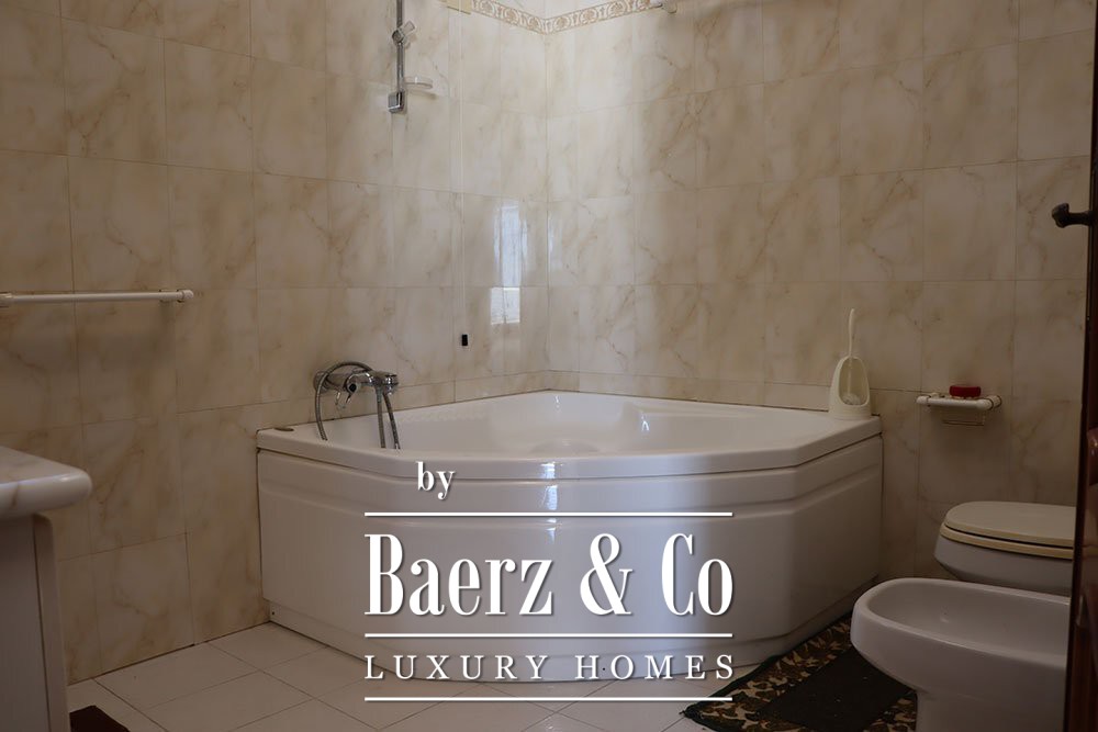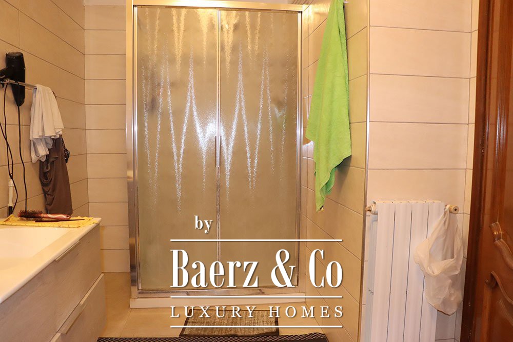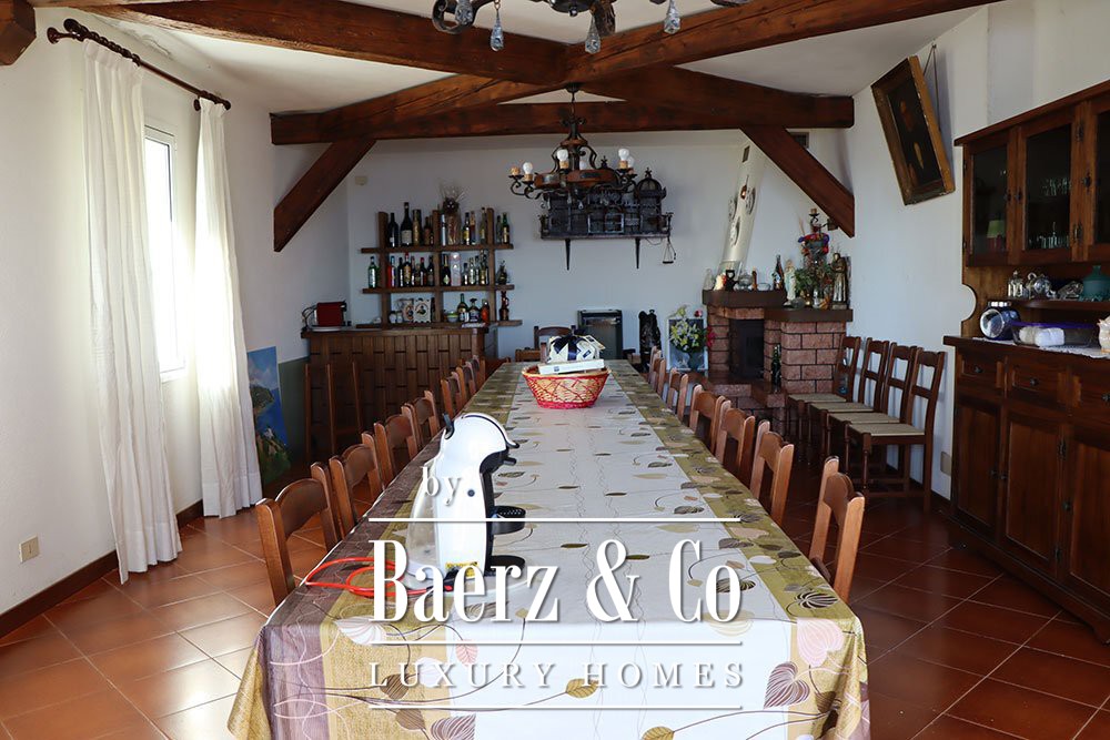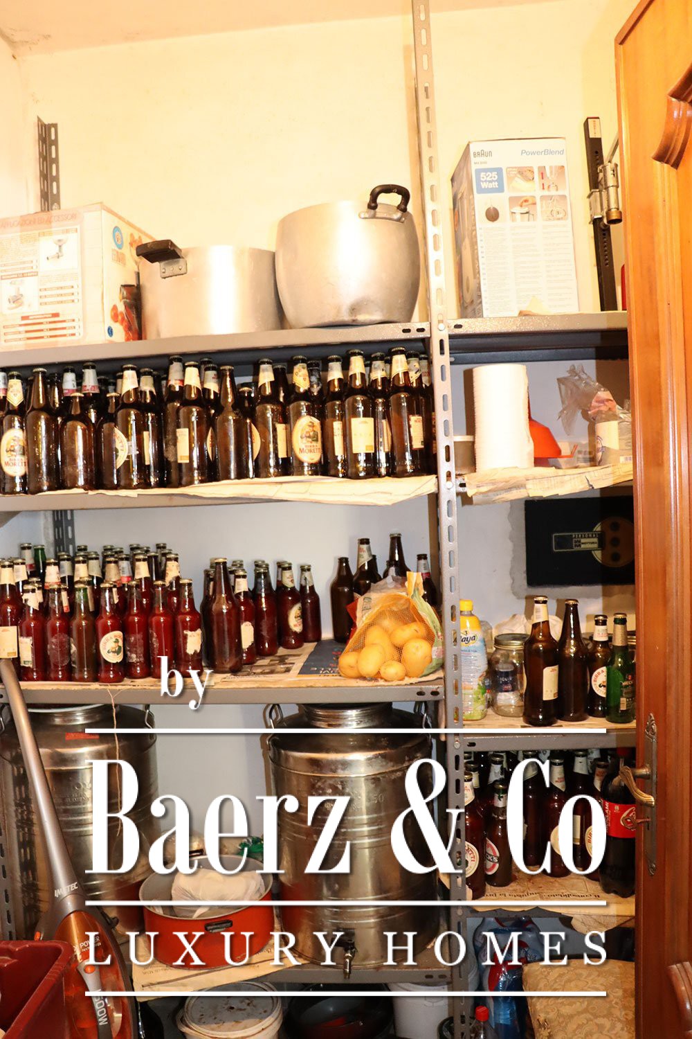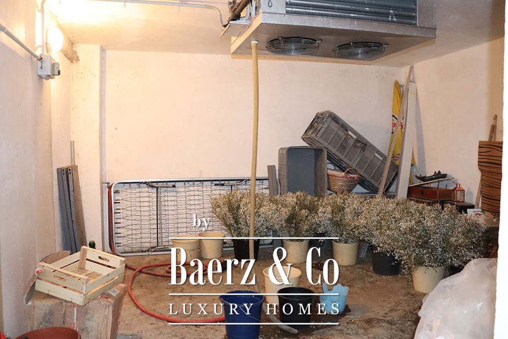 At the ground floor is a “tavern” with oven and BBQ, a “magazino”, a bedroom and a bathroom. Form this level there is access to the enormous terrace and the 5.000 m² garden, an ideal location to create an infinity pool.